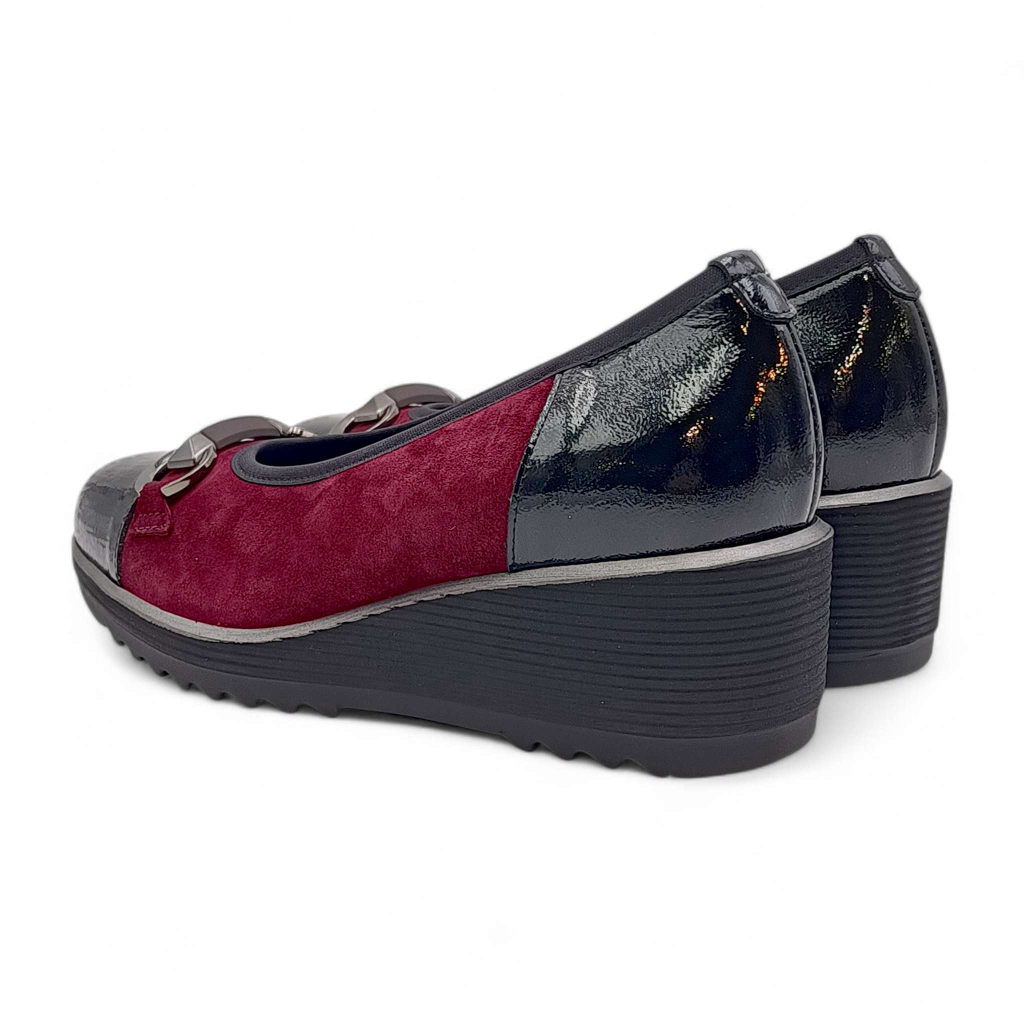 Mocassino donna realiazzato con un mix di materiali, camoscio e pelle di vernice che donano alla scarpa un tocco di novità!