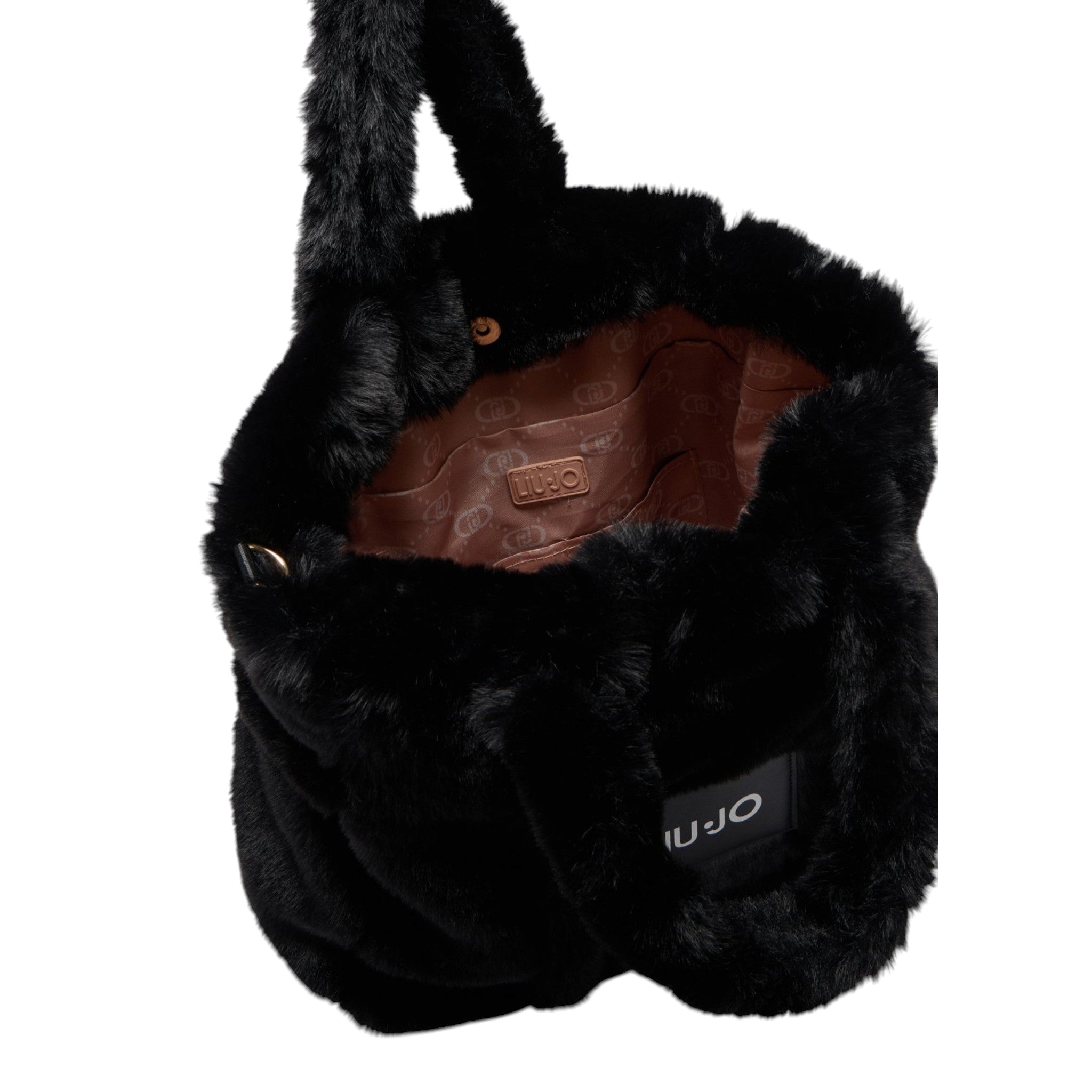 Borsa pelosa nera con logo Liu Jo Donna TF5270E0374