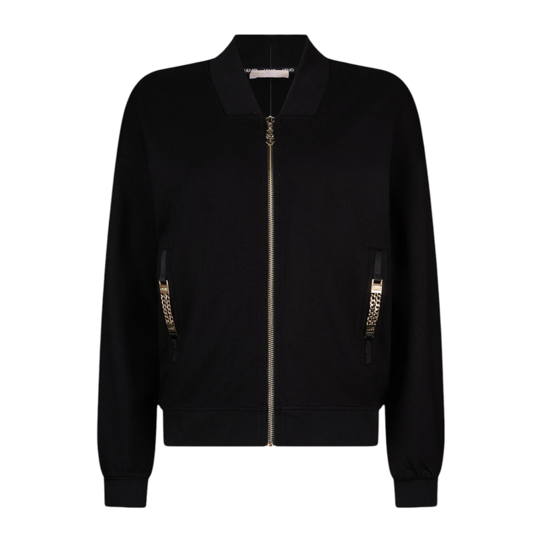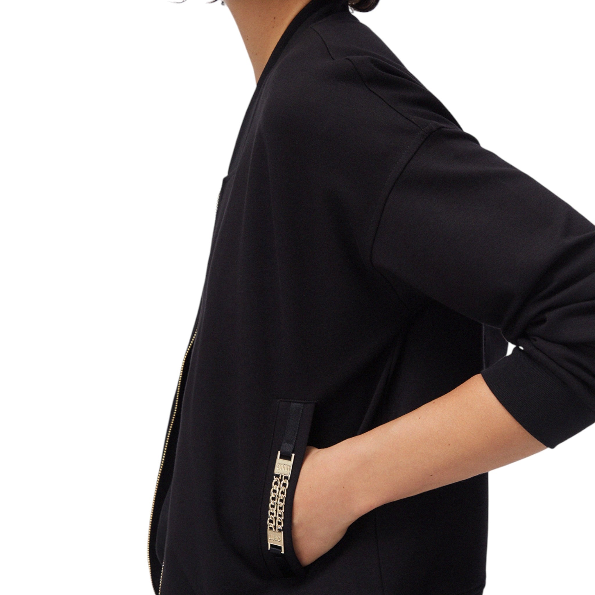 Dettaglio super particolare, le tasche! Arrichite da una catena dorata logata LIUJO.