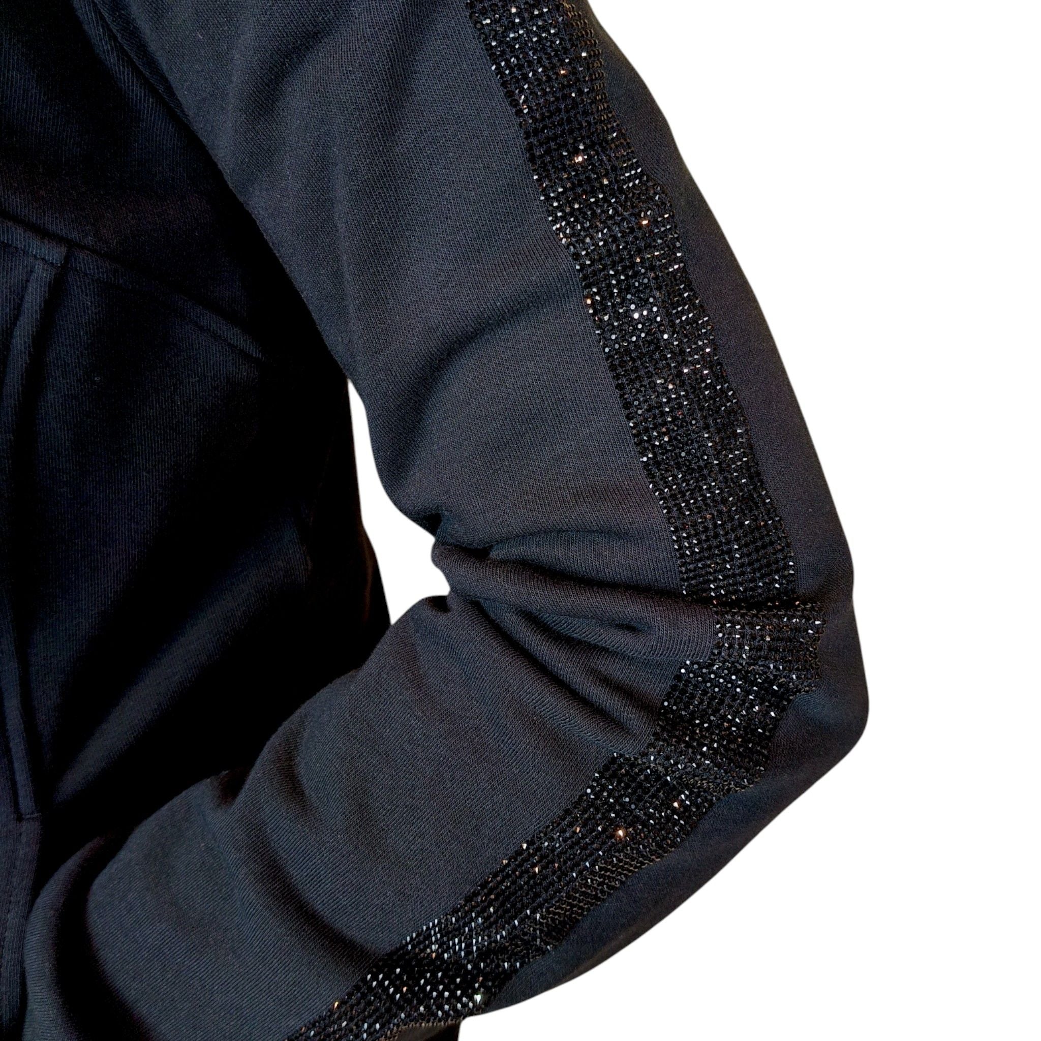 Gli strass sulle maniche aggiungono luminosità e femminilità.