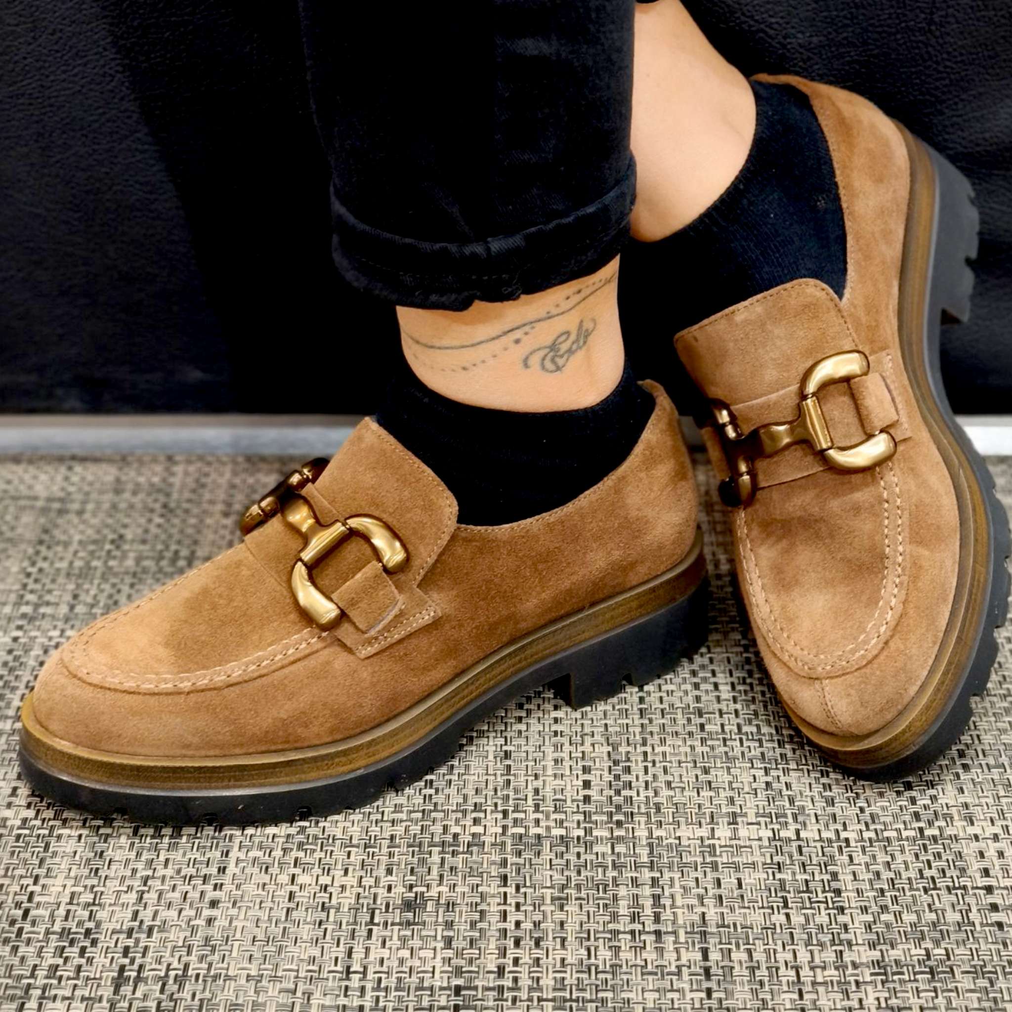 Mocassino donna in pelle scamosciata.