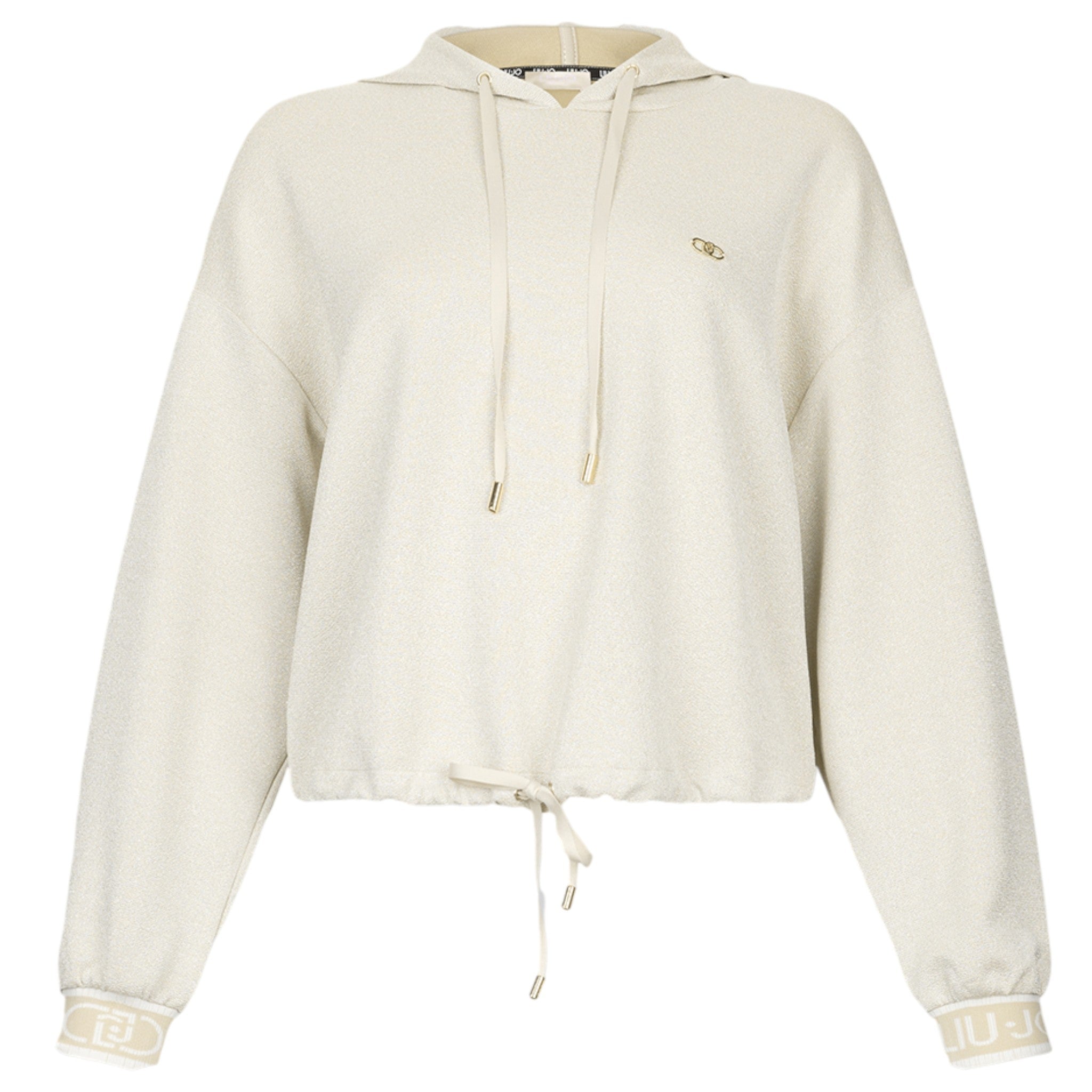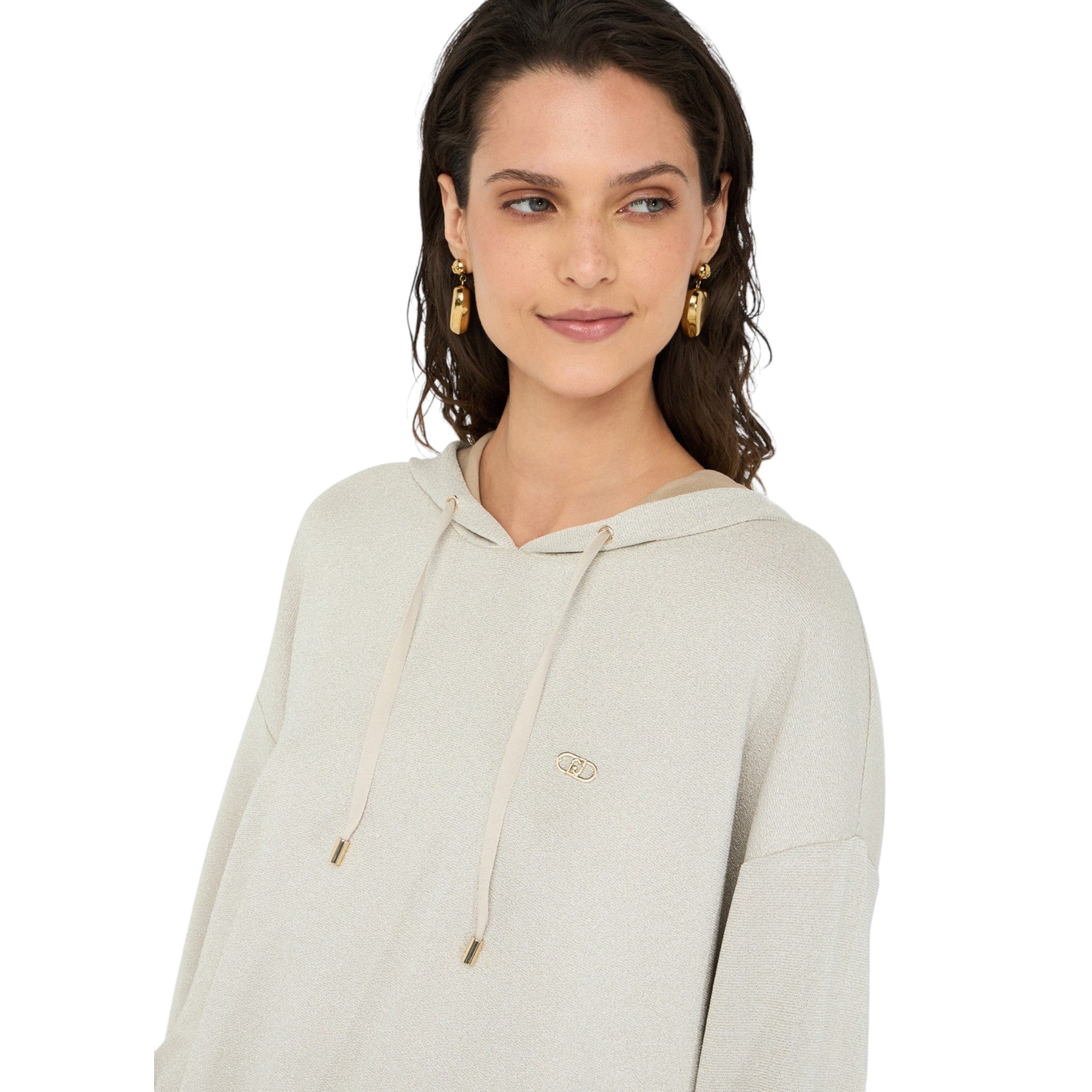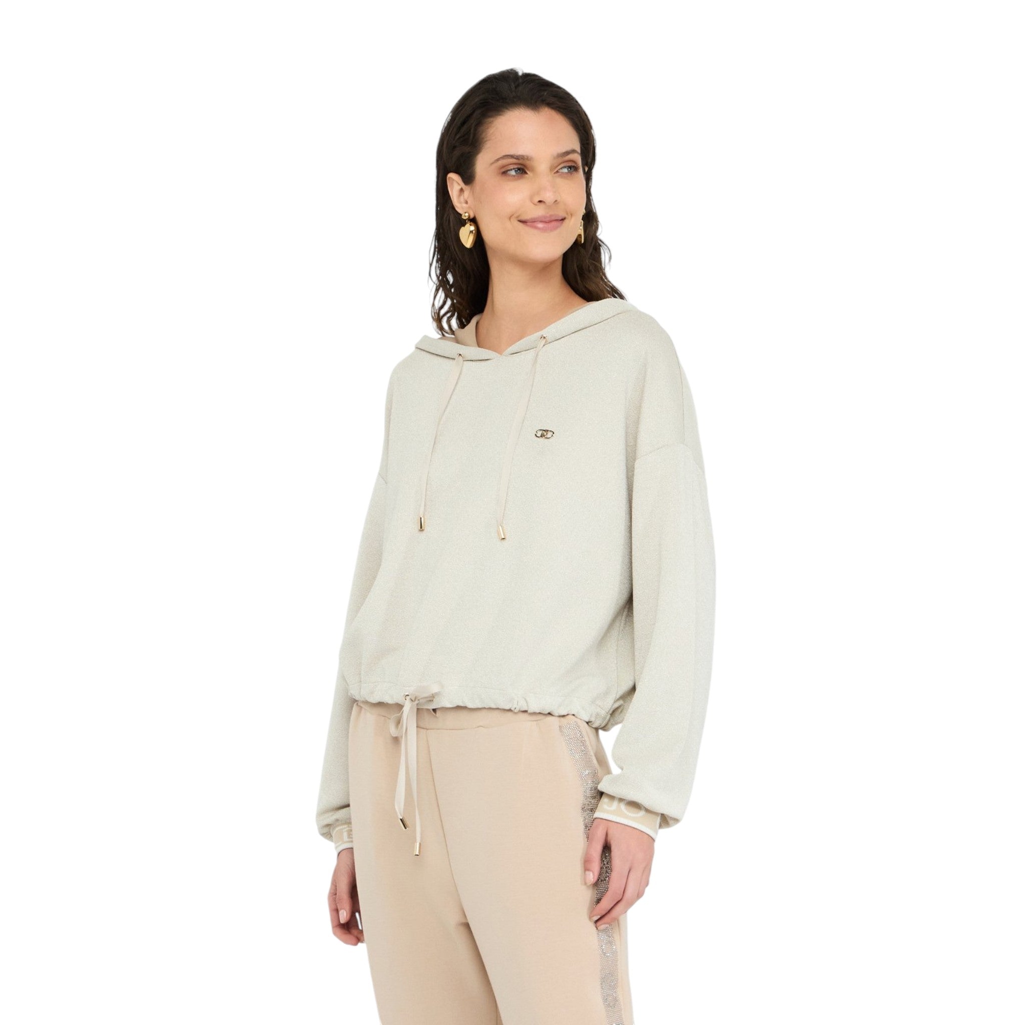 Cappuccio con coulisse e logo liu jo in metallo sul petto.