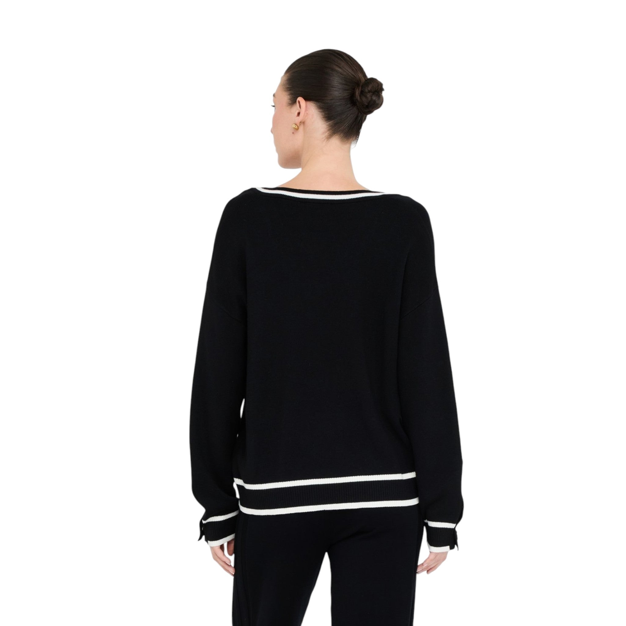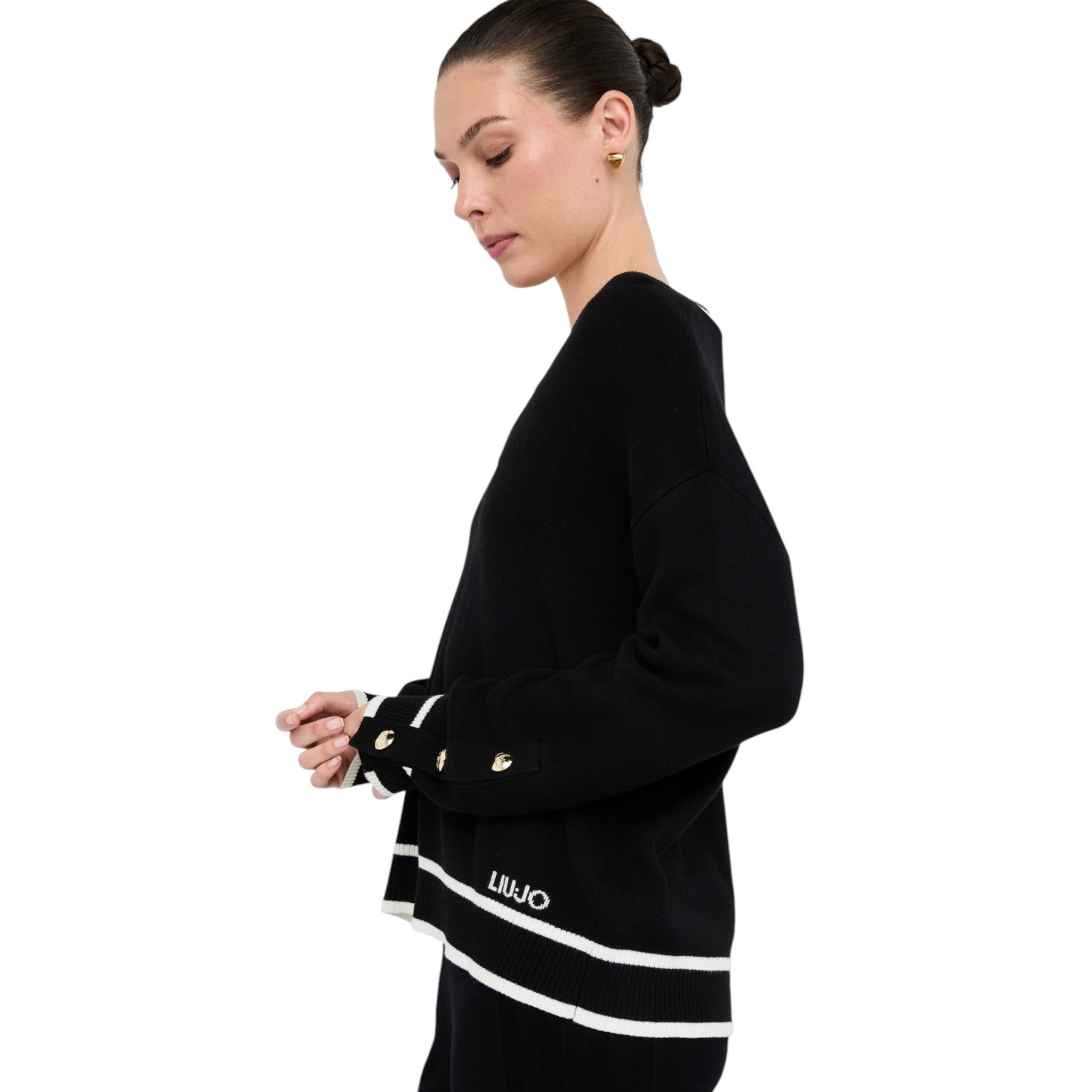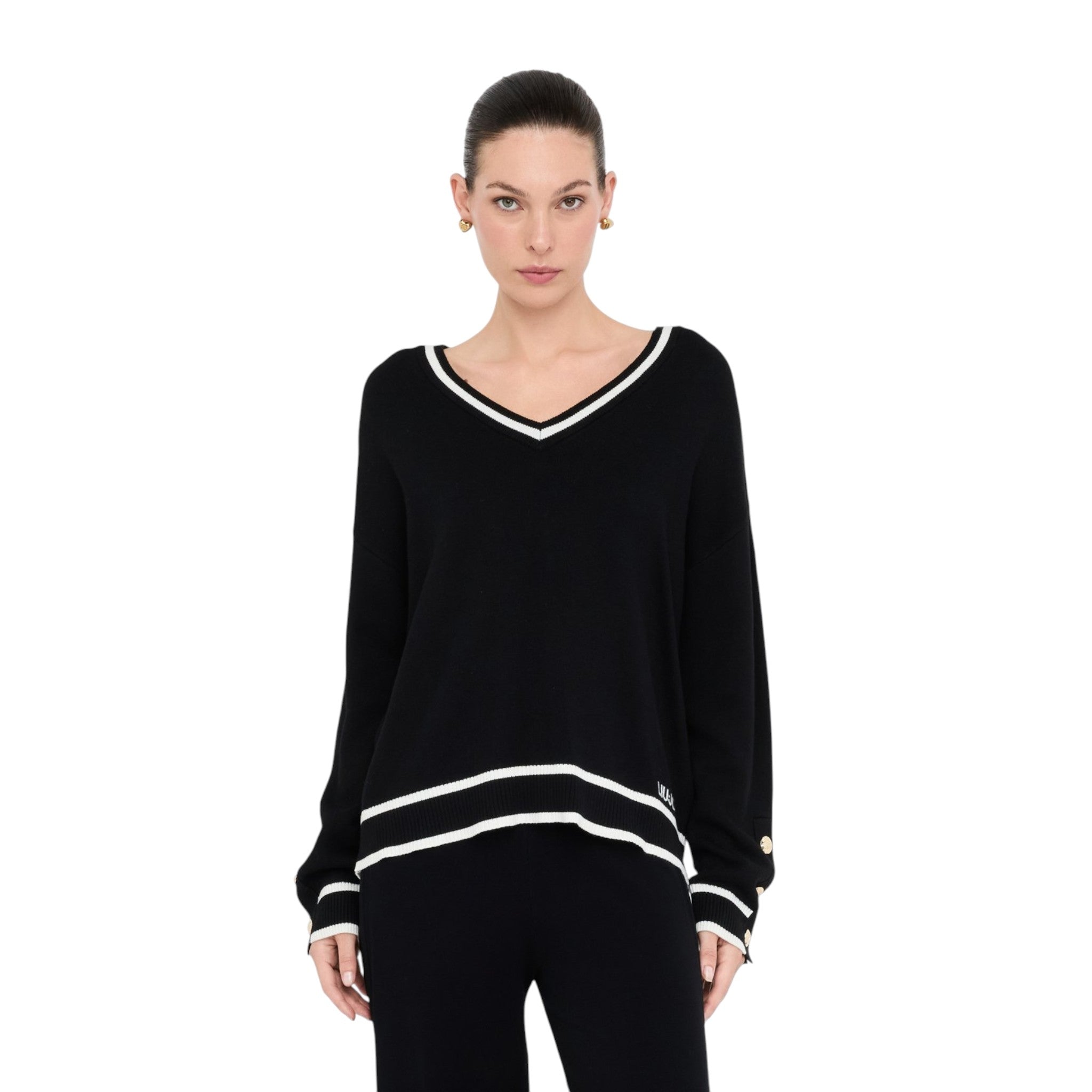 Maglioncino donna Liu jo in tessuto nero con bordi bianchi TF5229MS59L