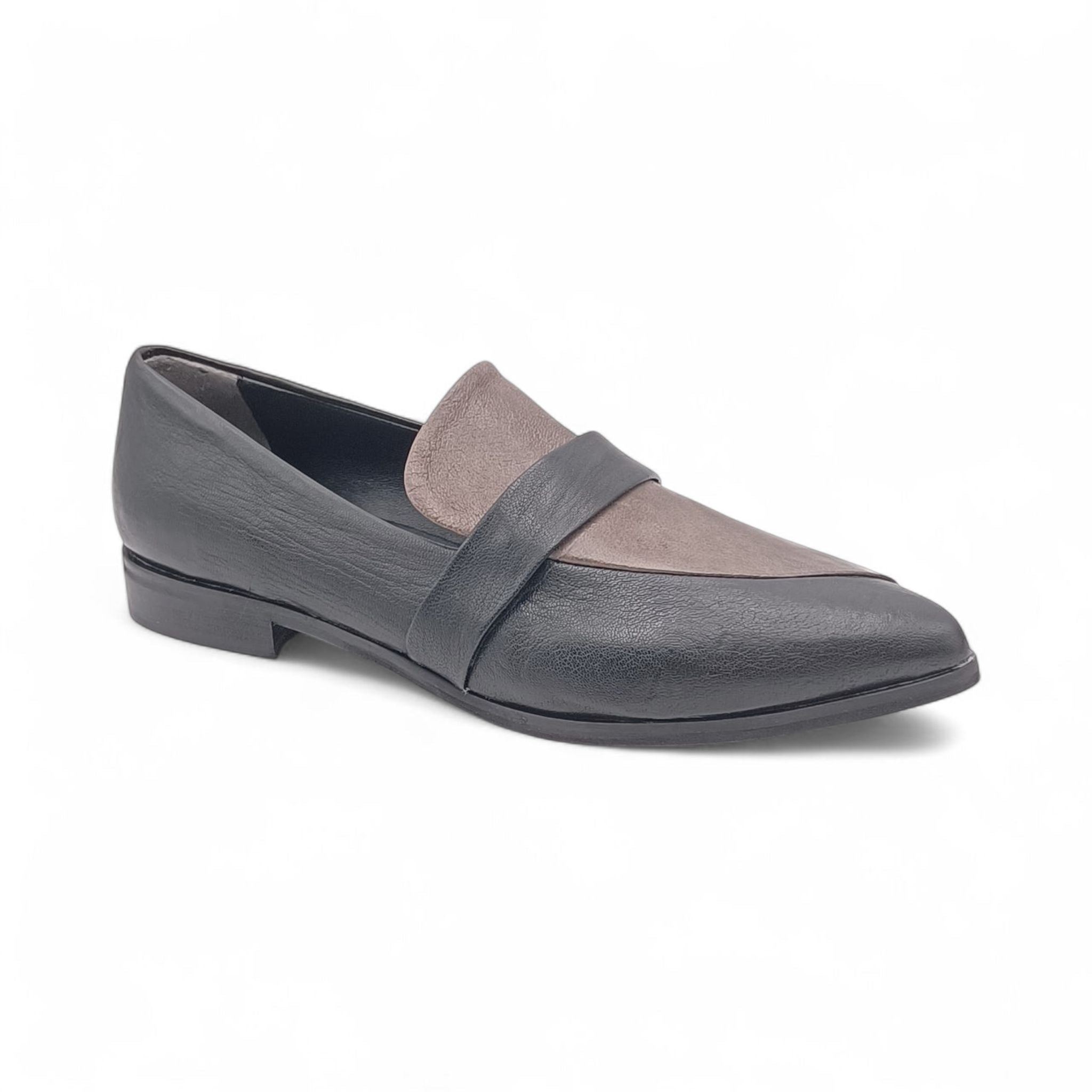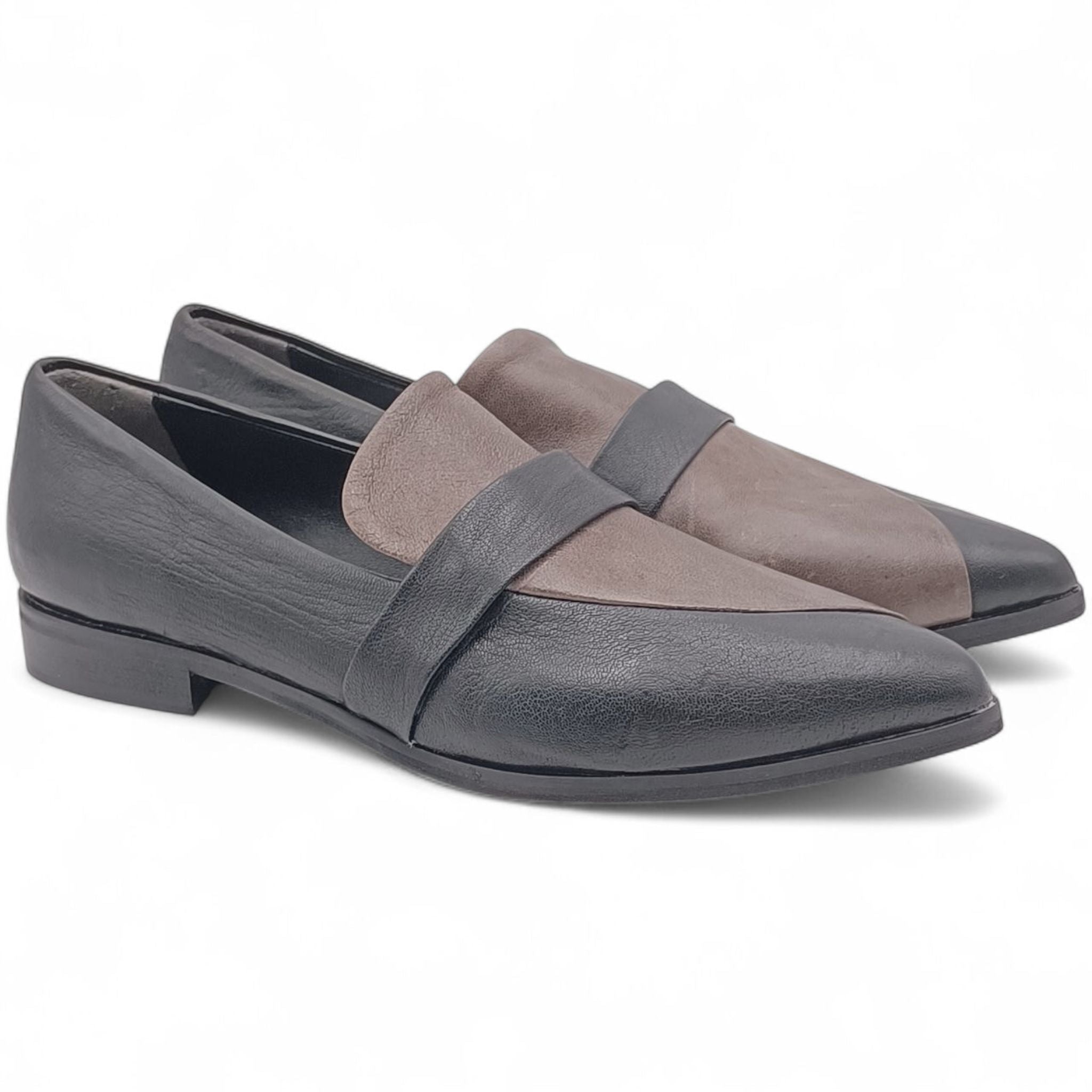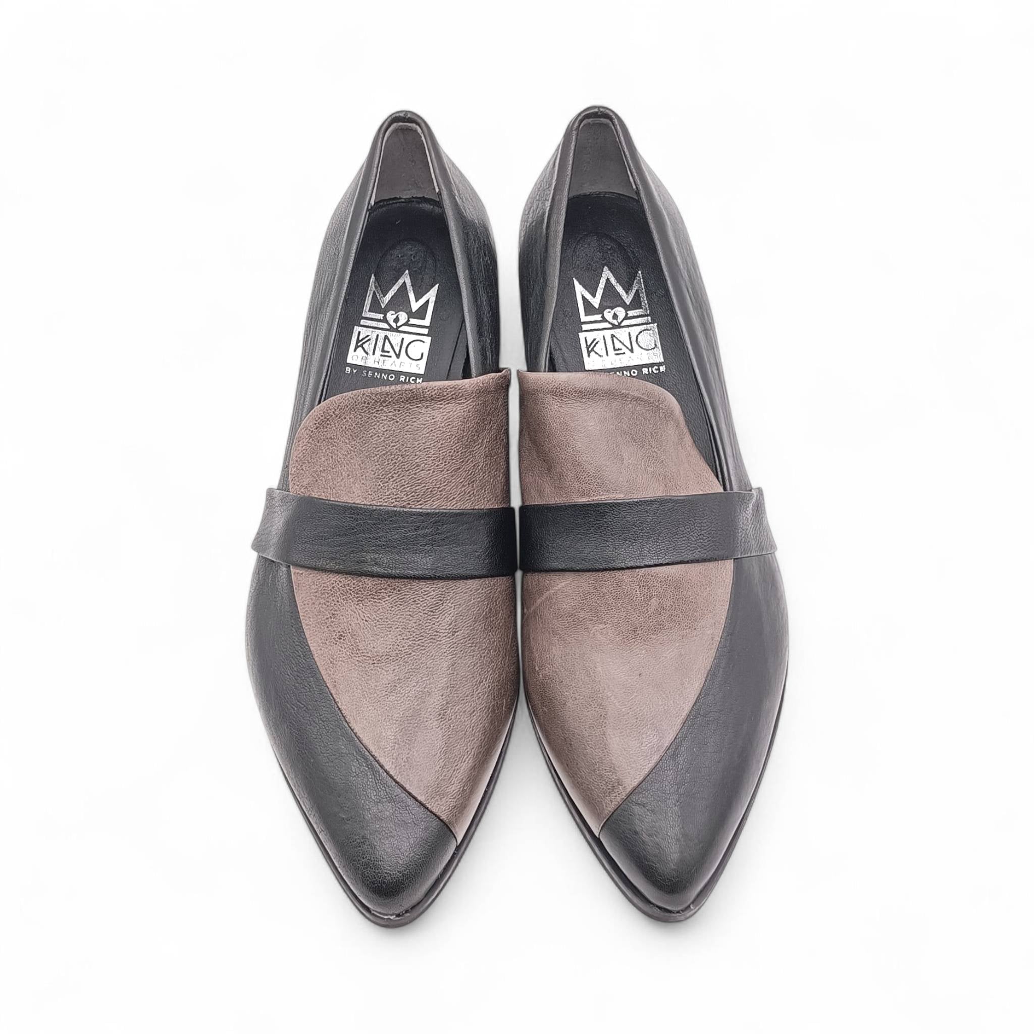 Mocassino Donna in pelle bicolore nero/grigio King of Hearts 3803