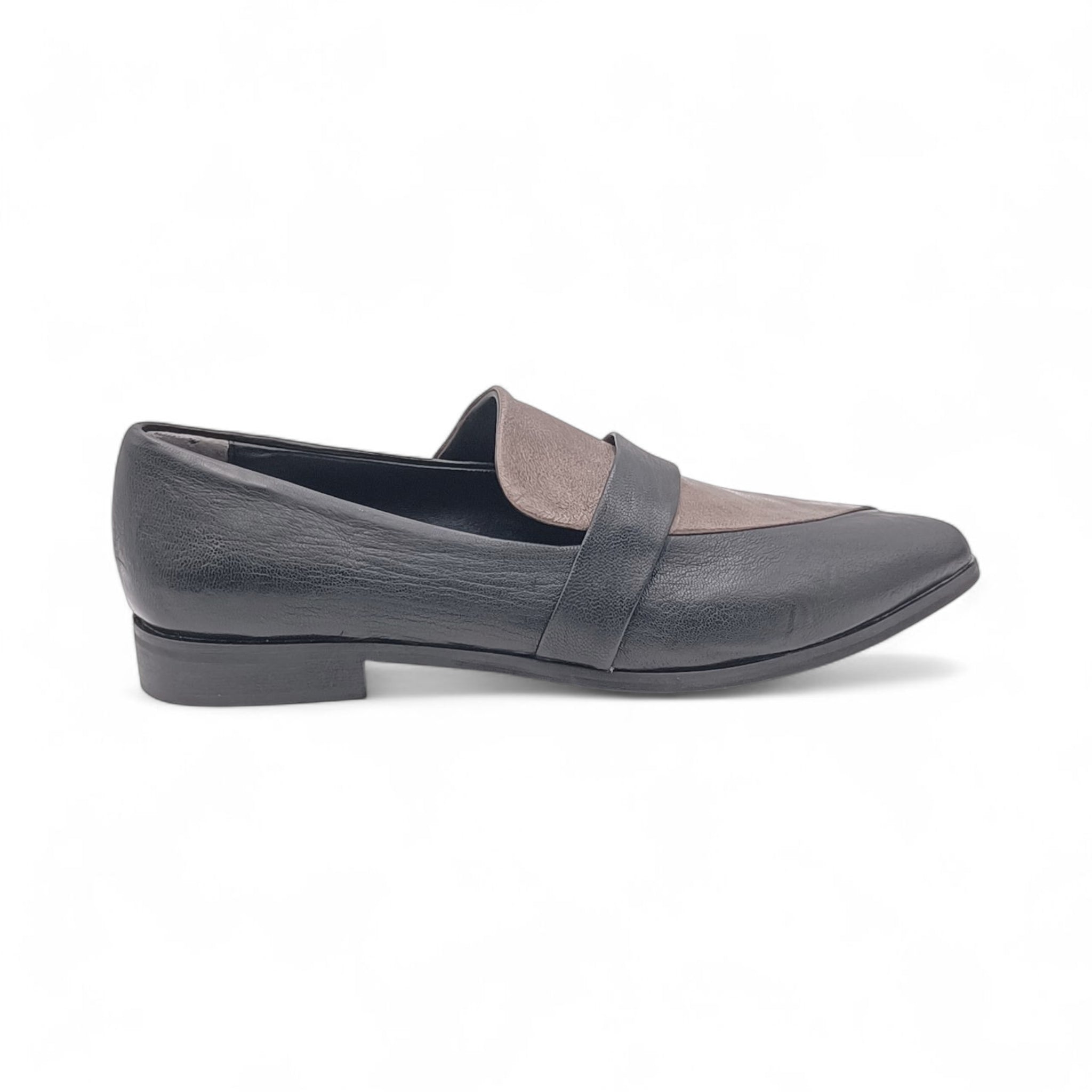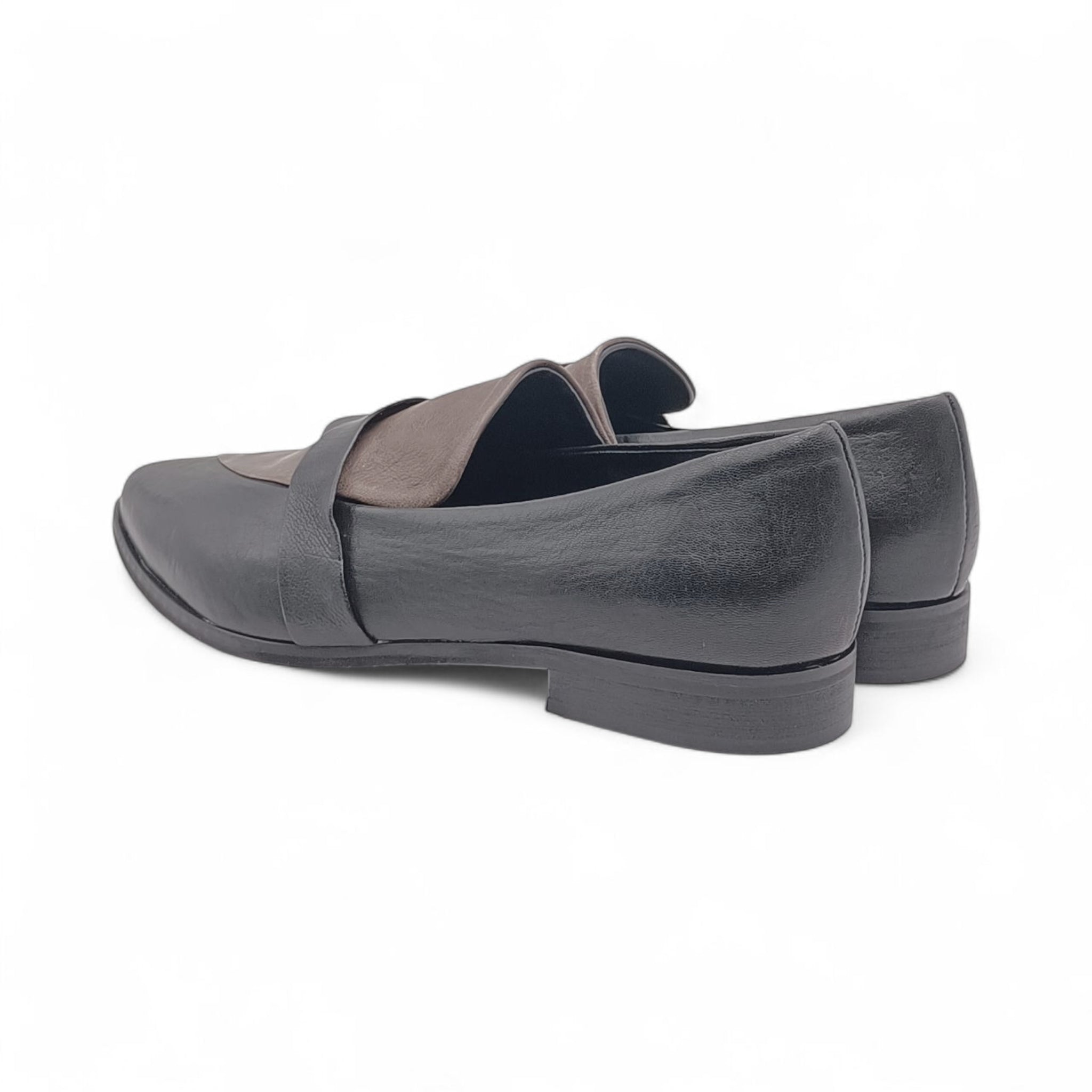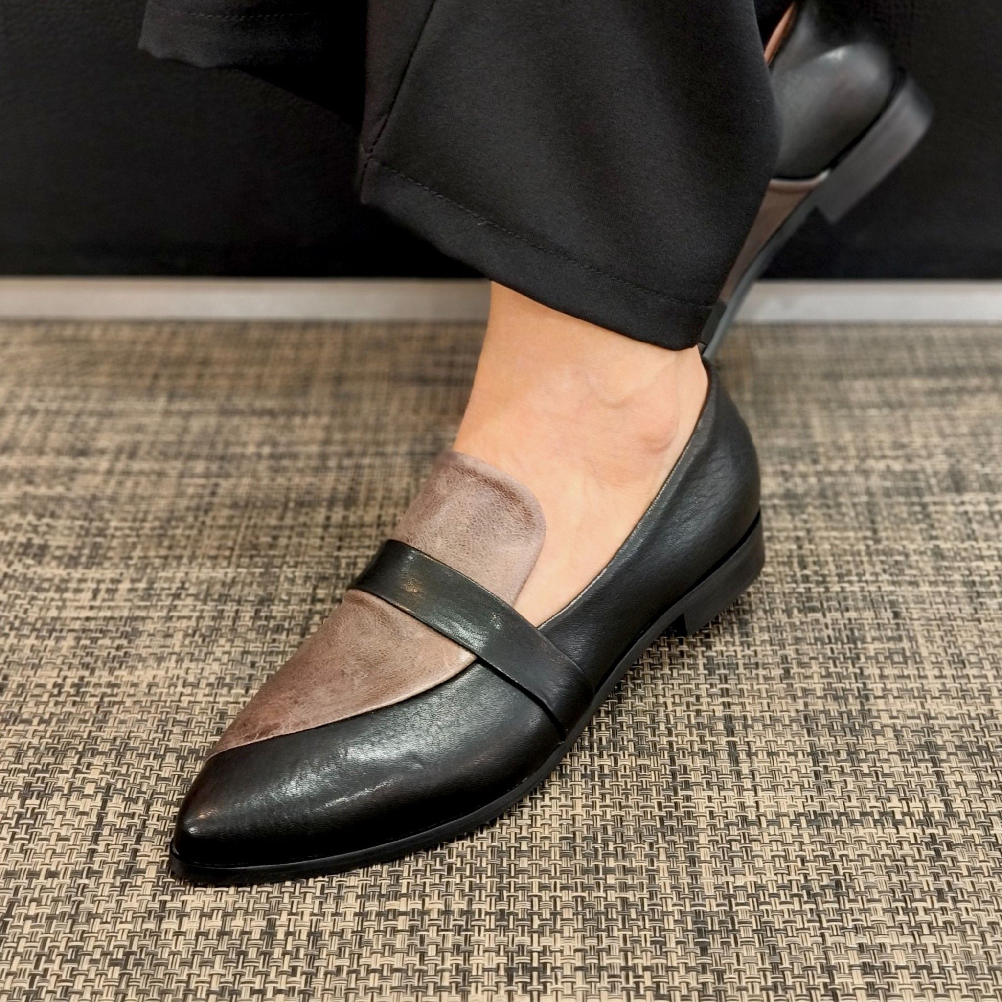 Mocassino Donna in pelle bicolore nero/grigio King of Hearts 3803