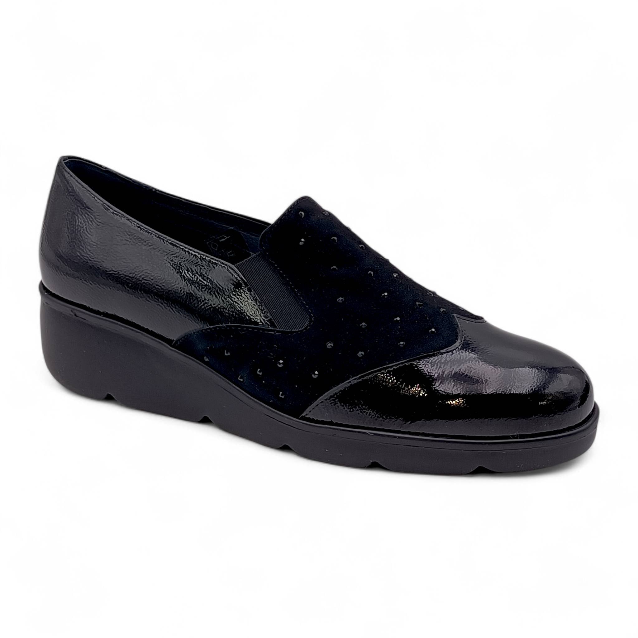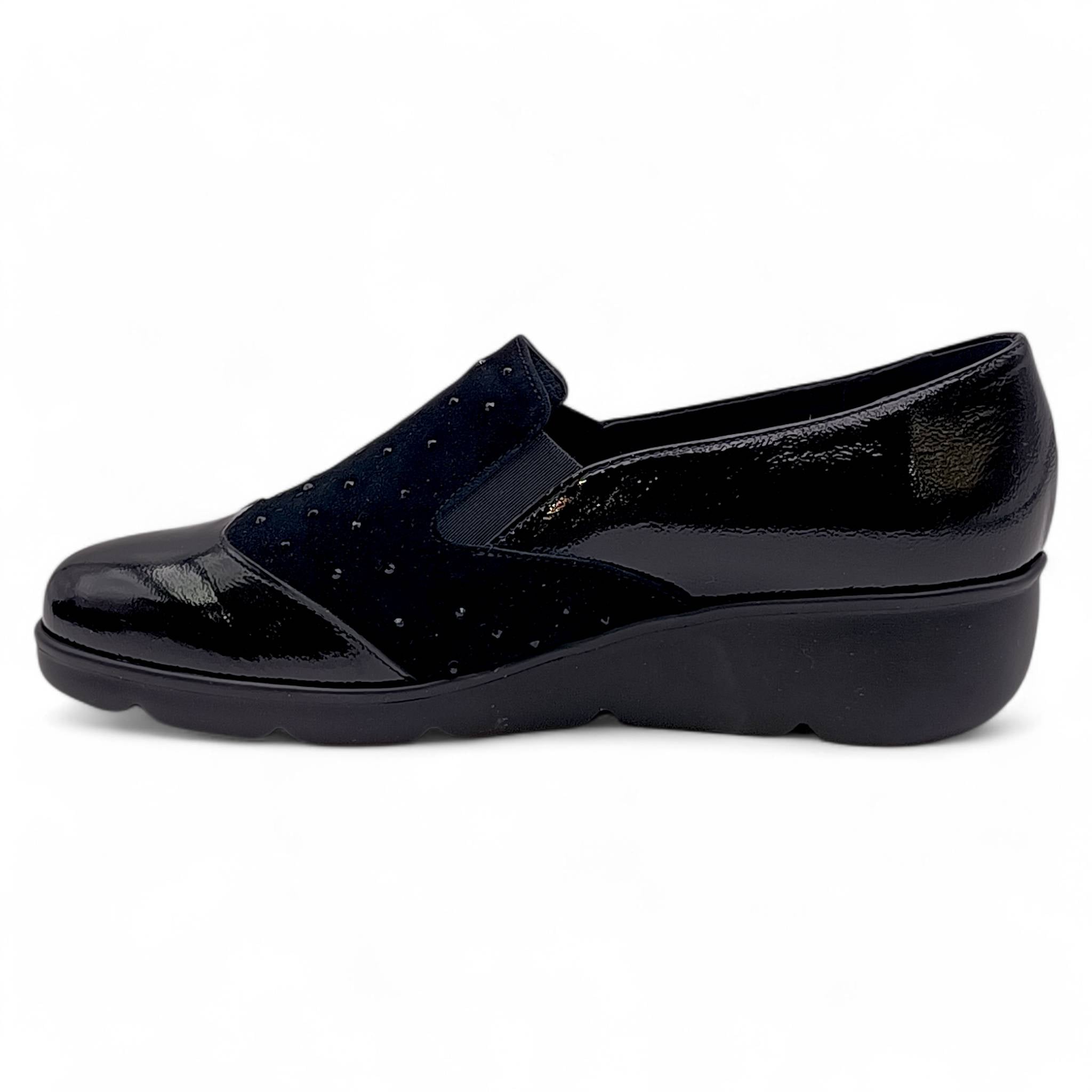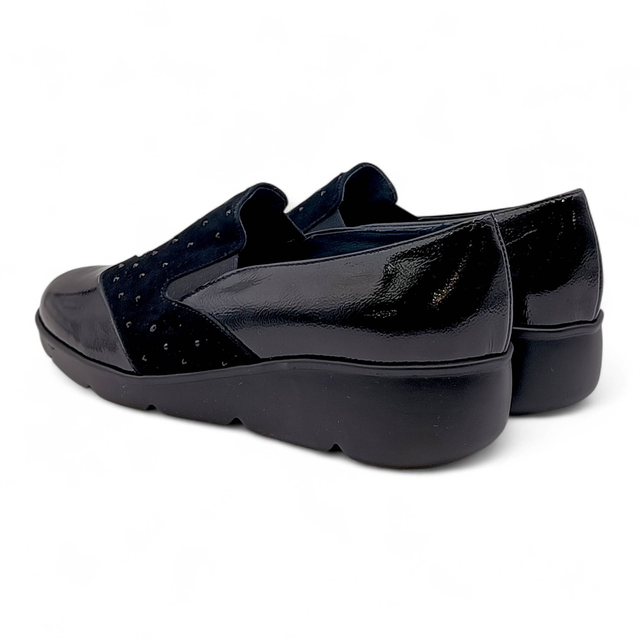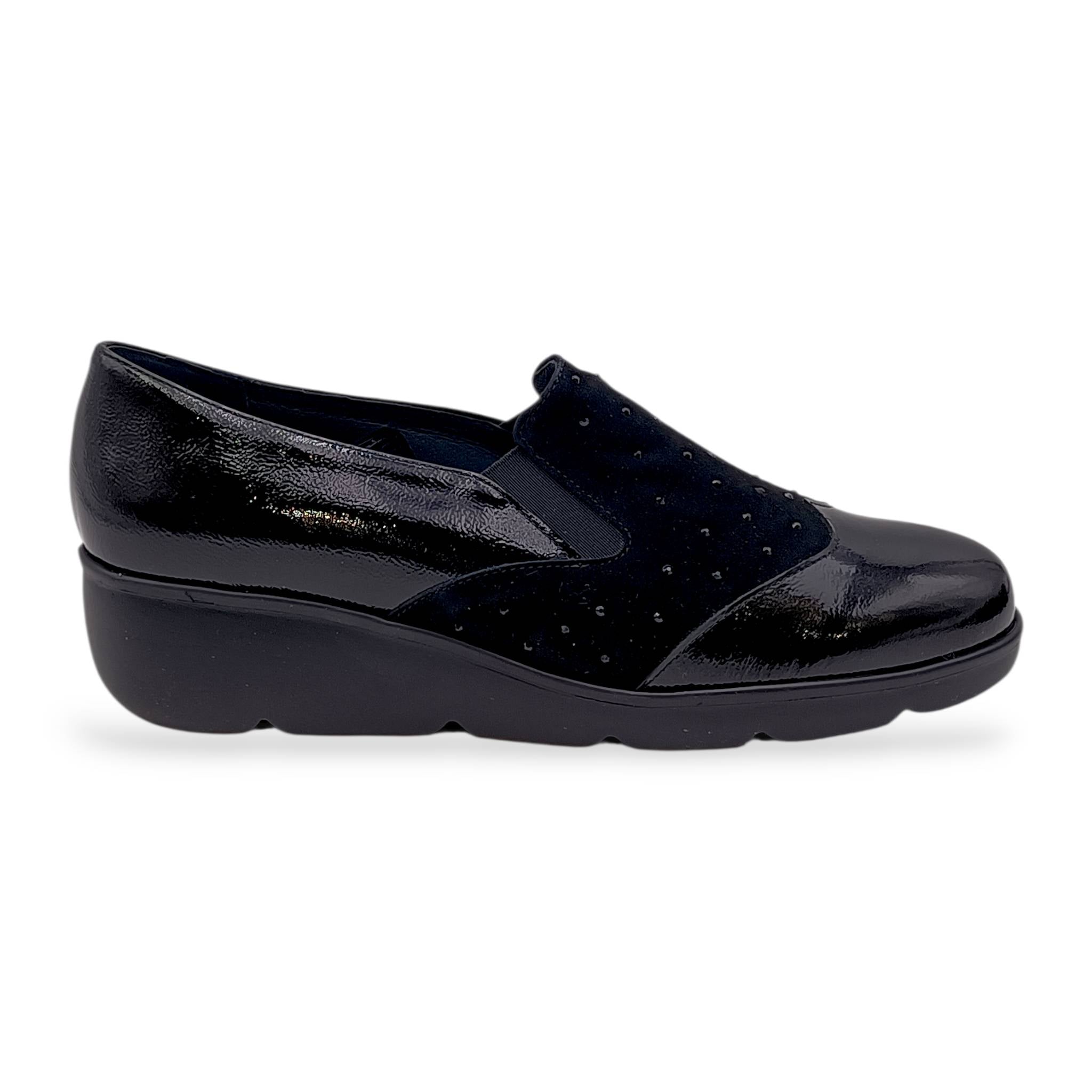 Mocassino da donna realiazzato con un mix di materiali, camoscio e naplak che donano alla scarpa un tocco di novità!