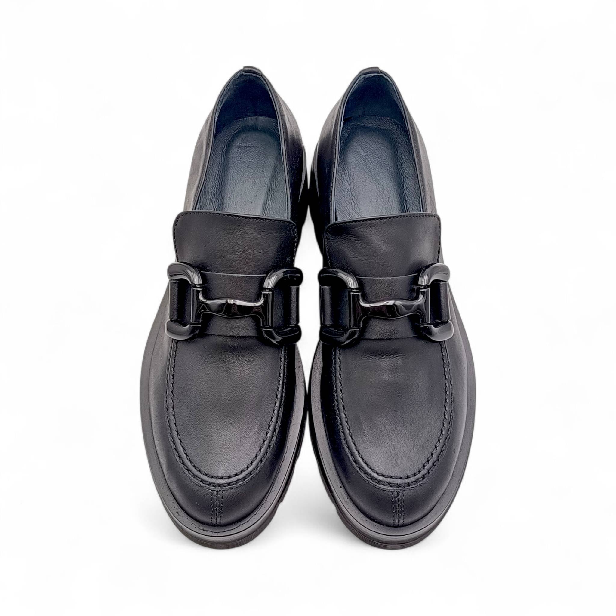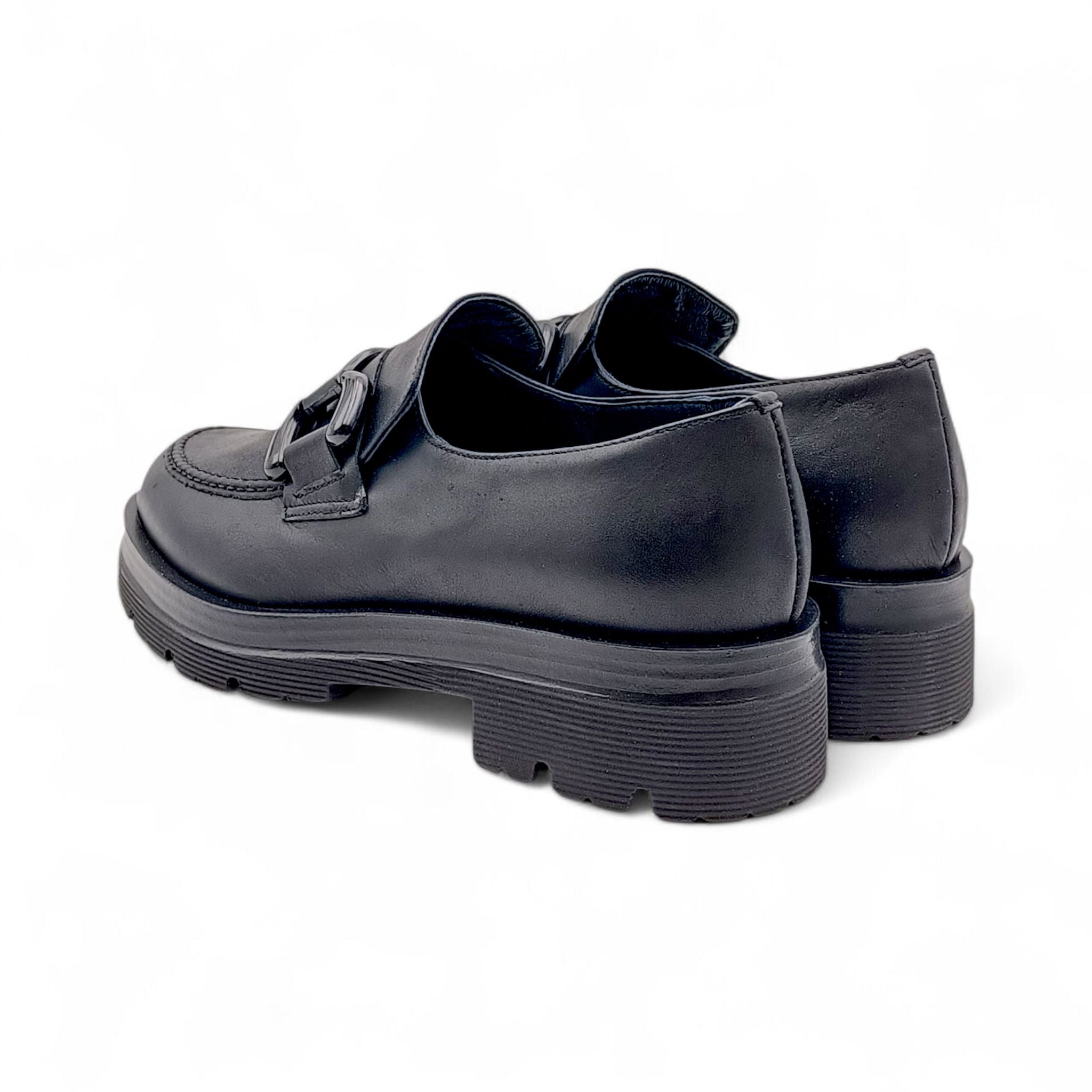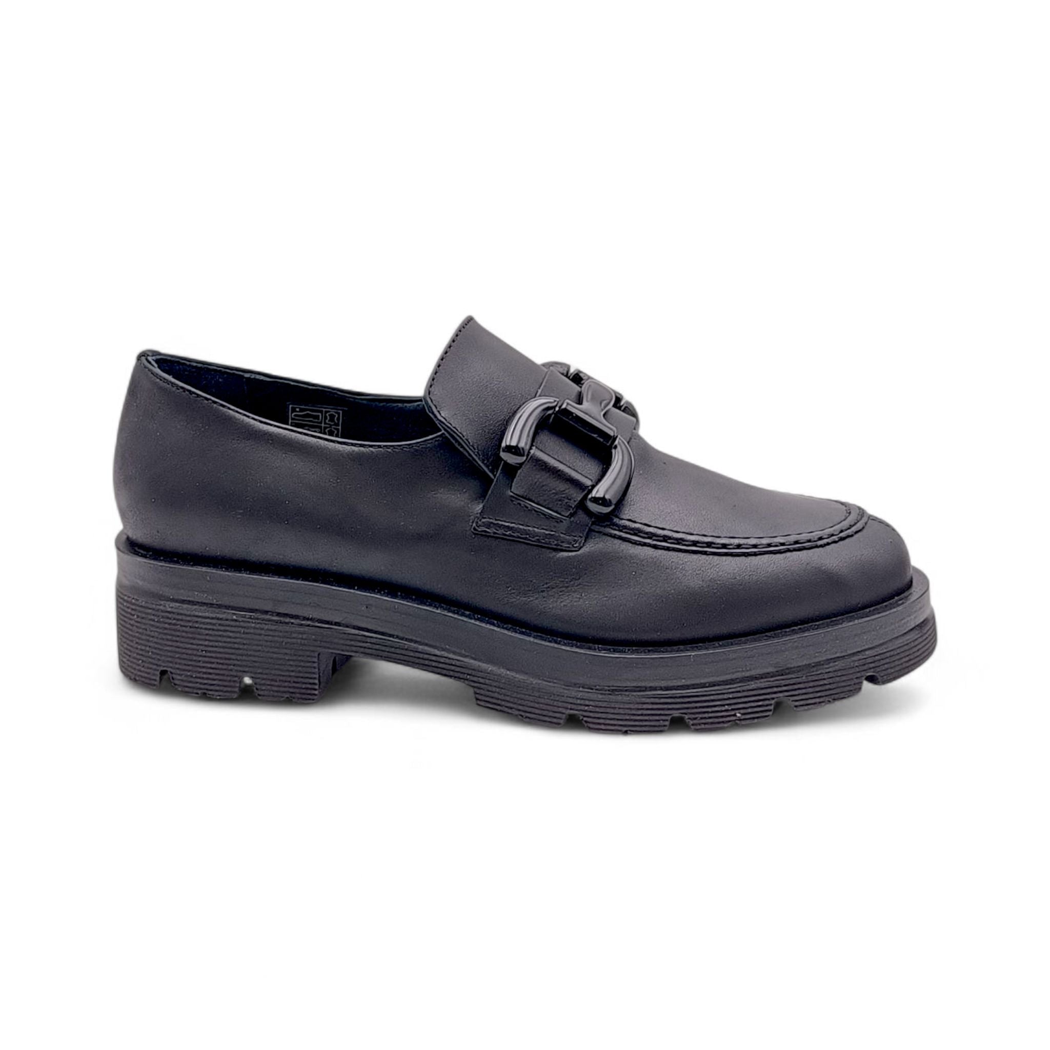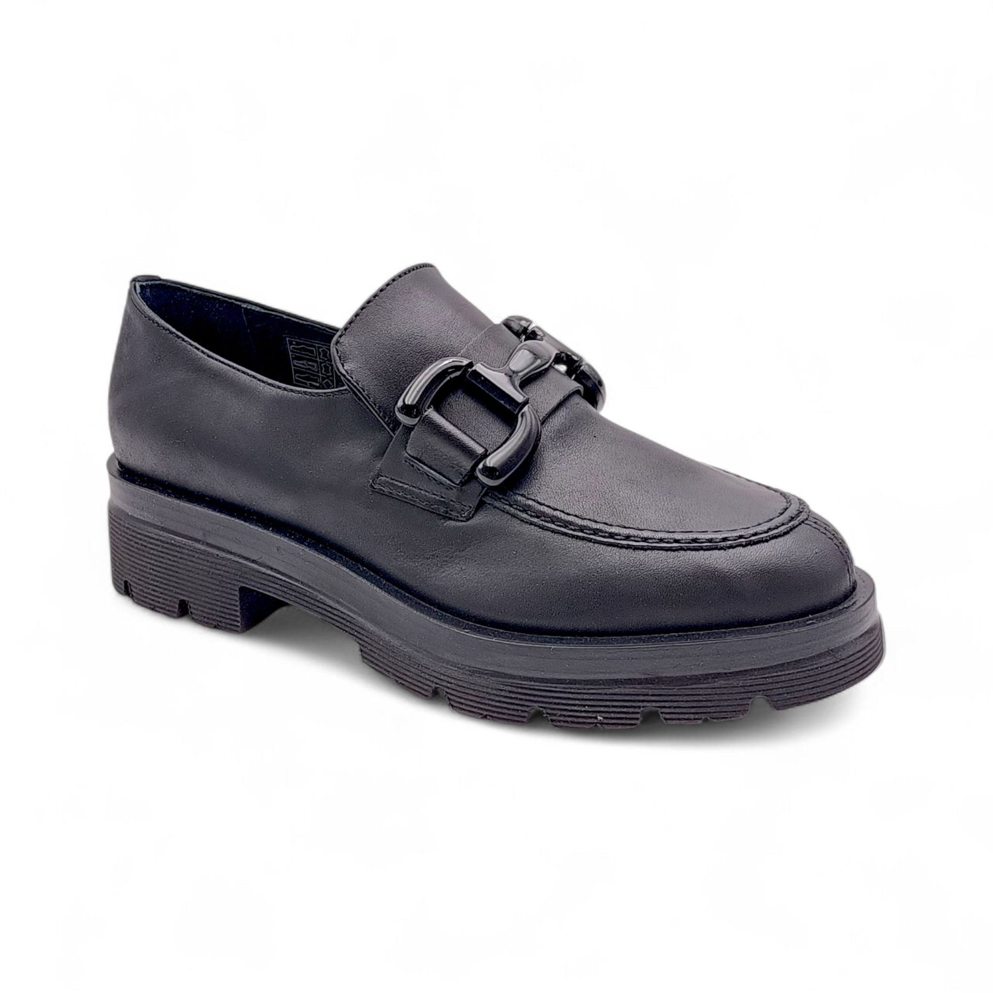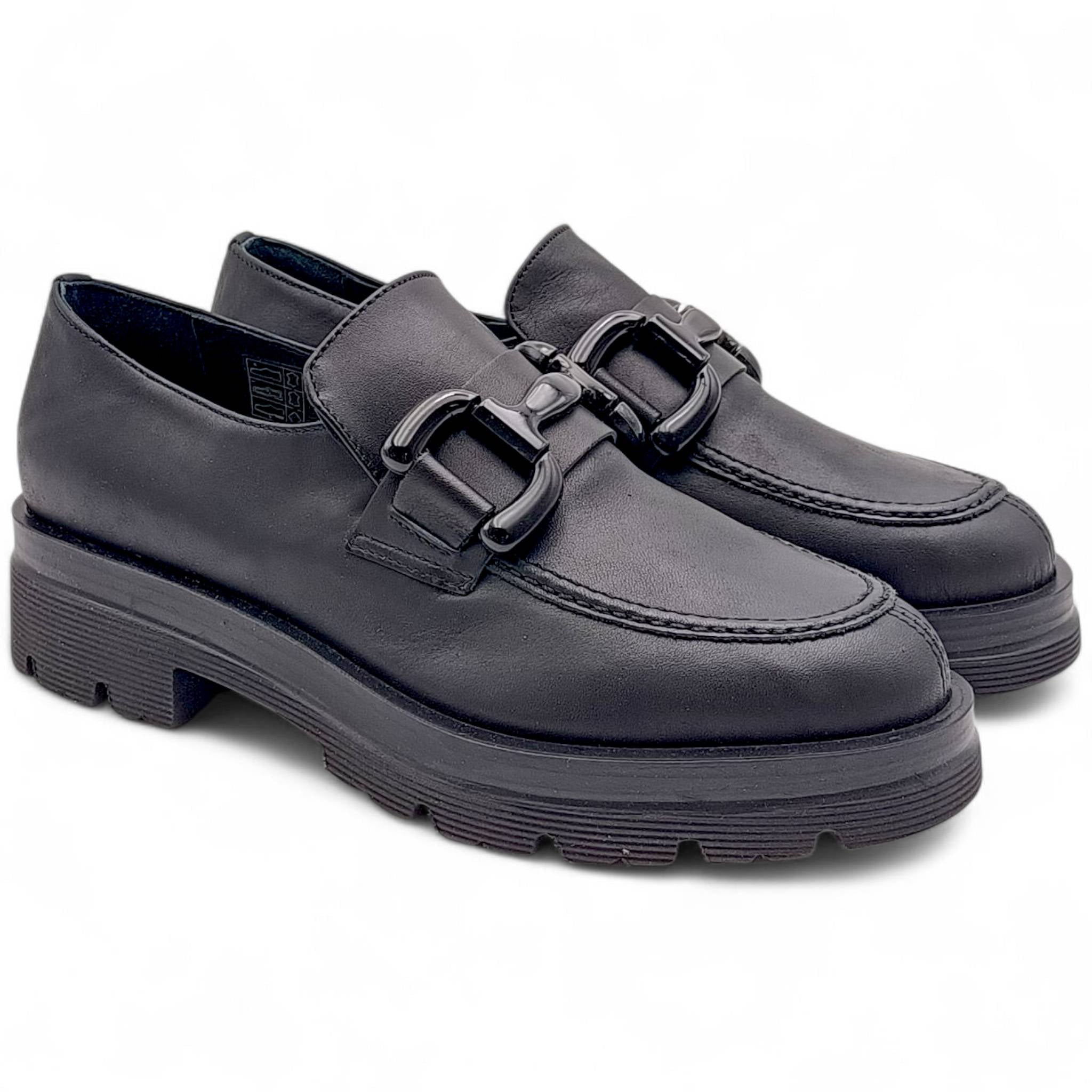 Mocassino donna con platform in Pelle Nera con catena King of Hearts I4RZ40