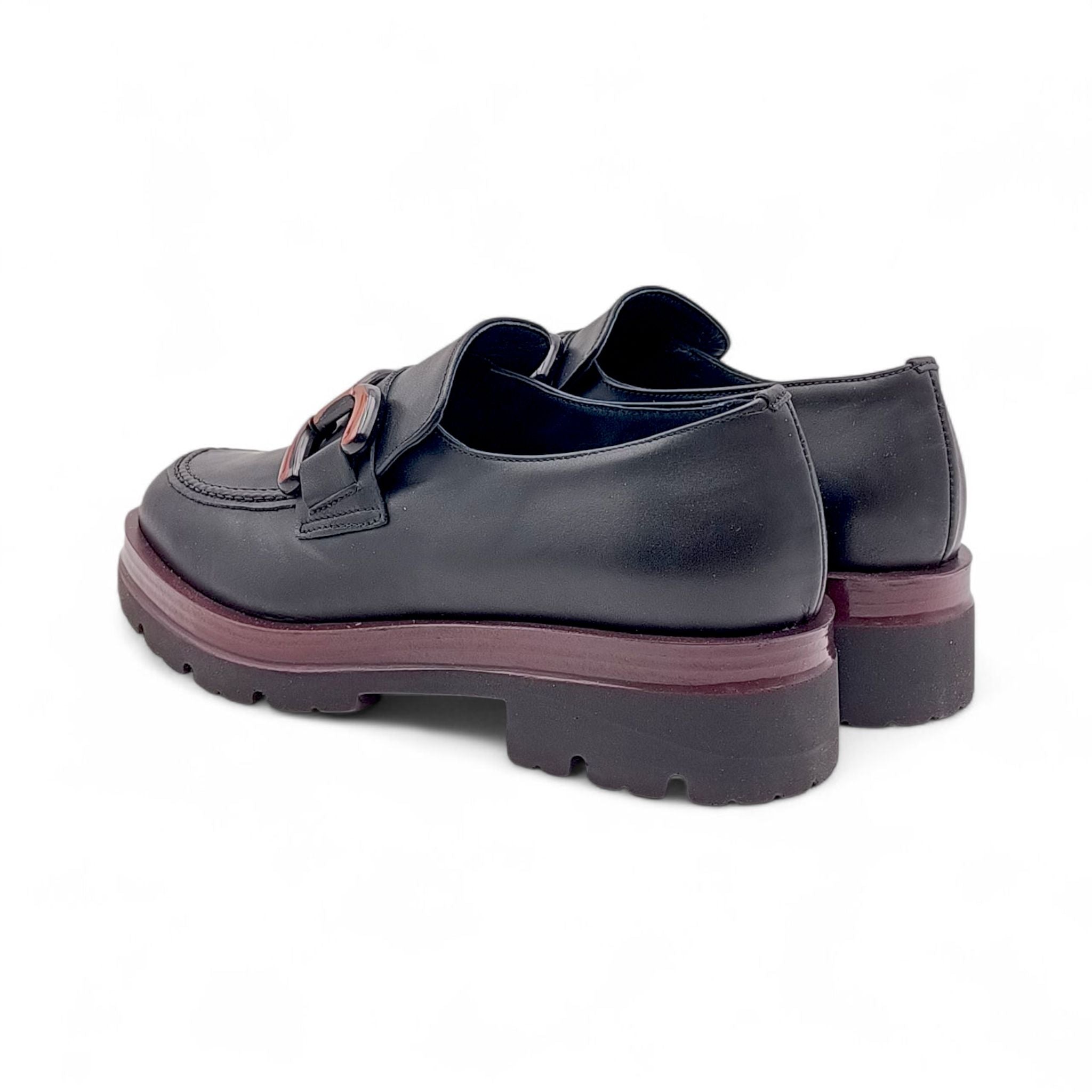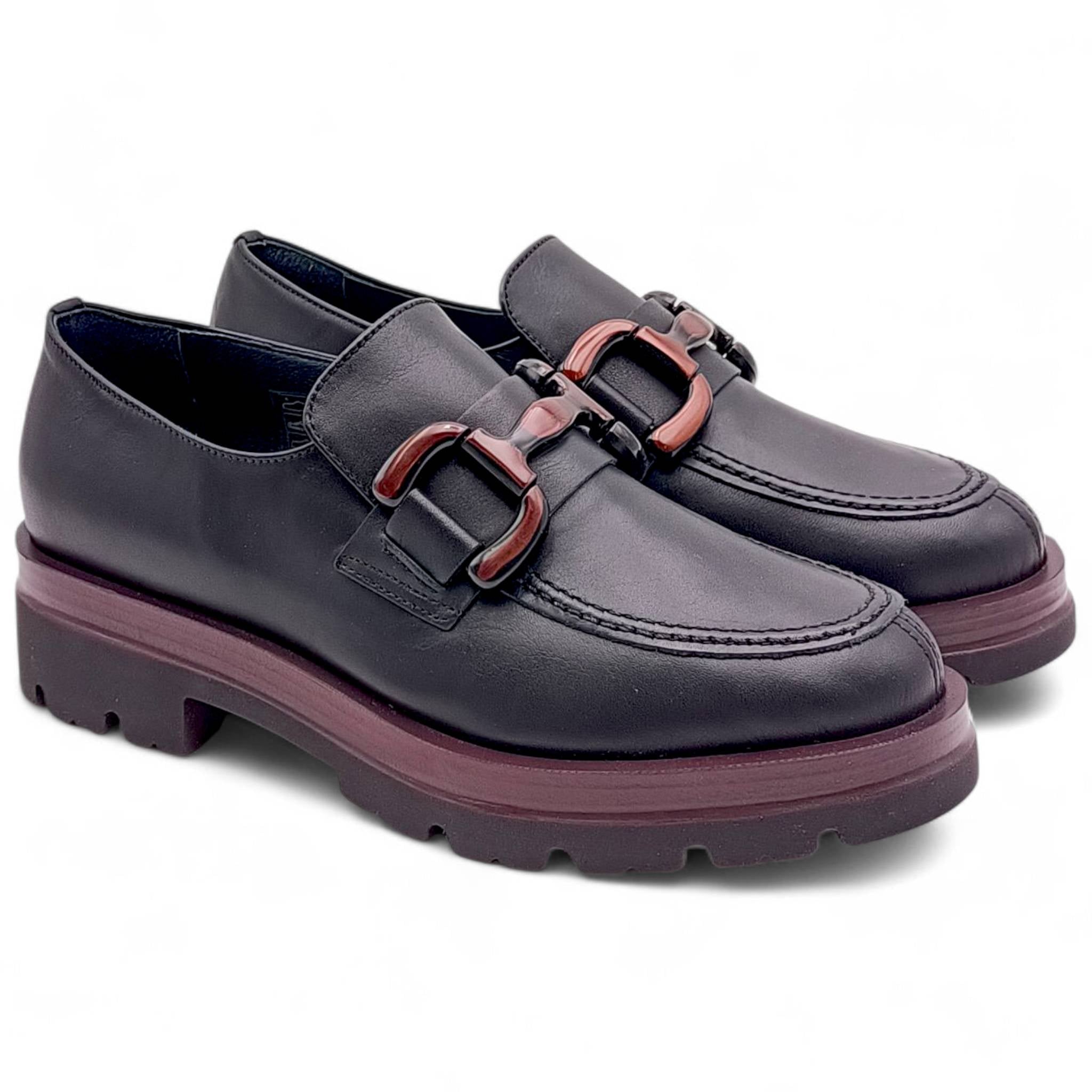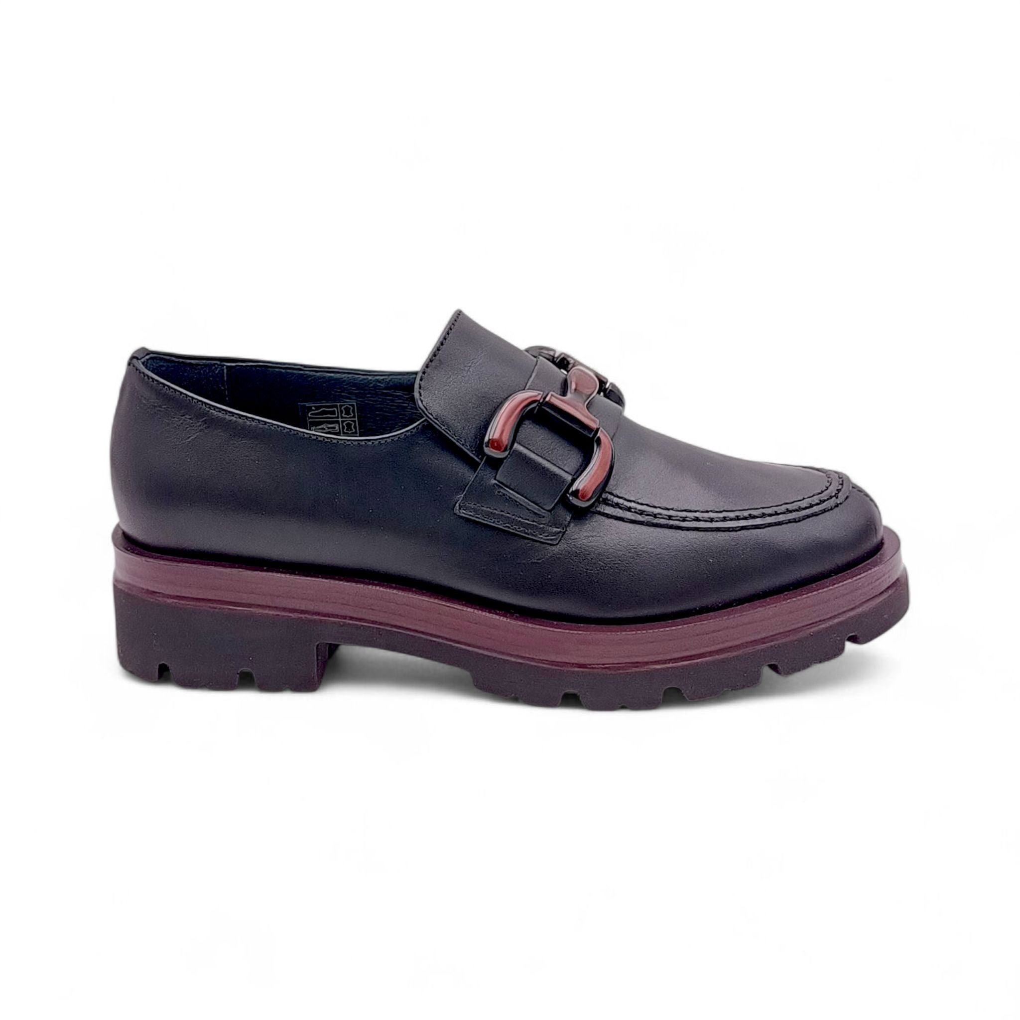 Mocassino Donna in Pelle Nera con dettagli bordò King of hearts I4RZ40