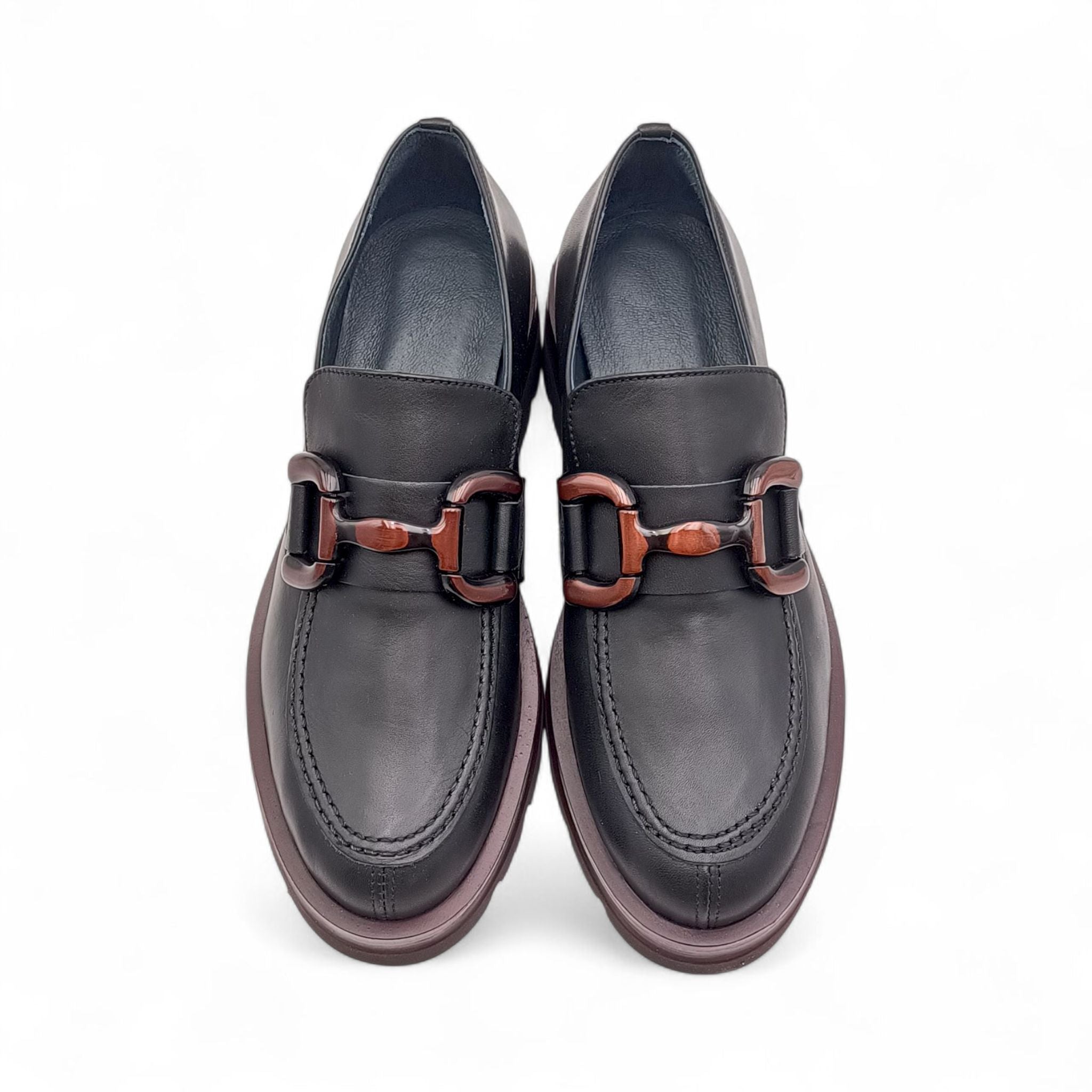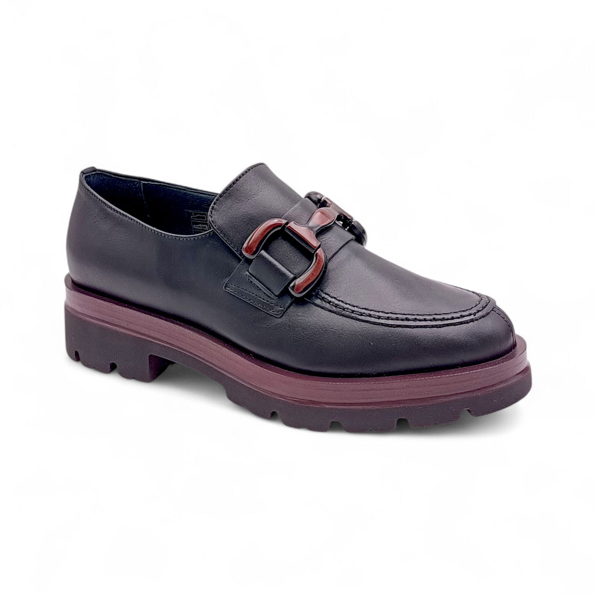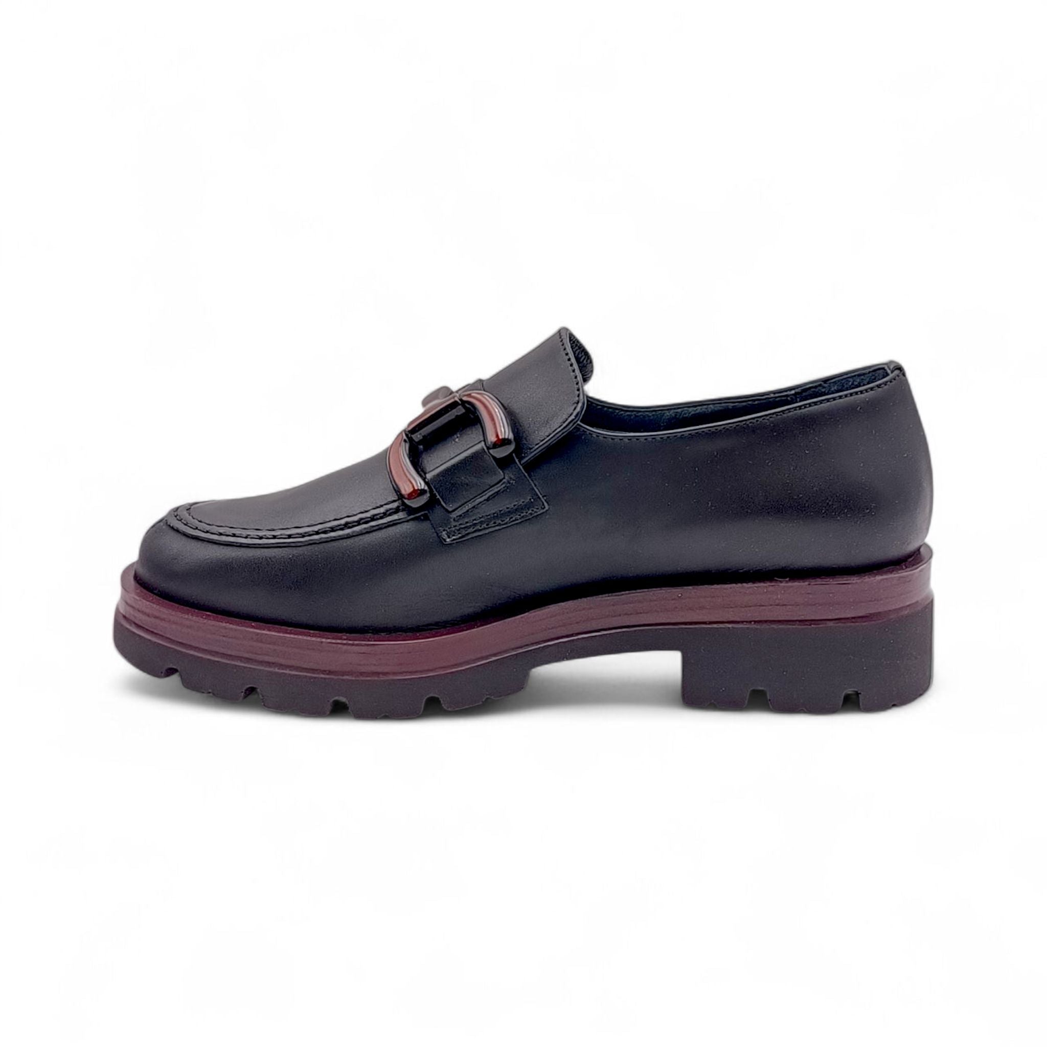 Mocassino Donna in Pelle Nera con dettagli bordò King of hearts I4RZ40