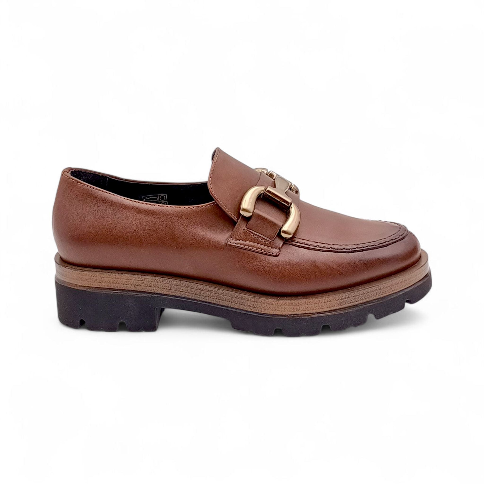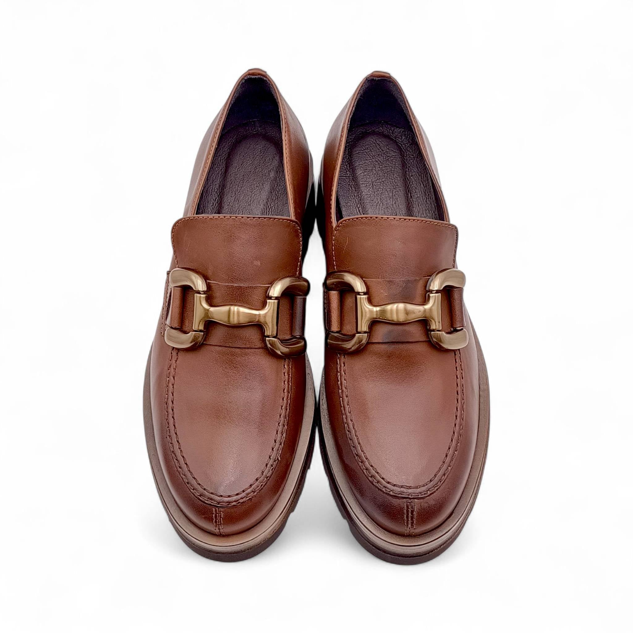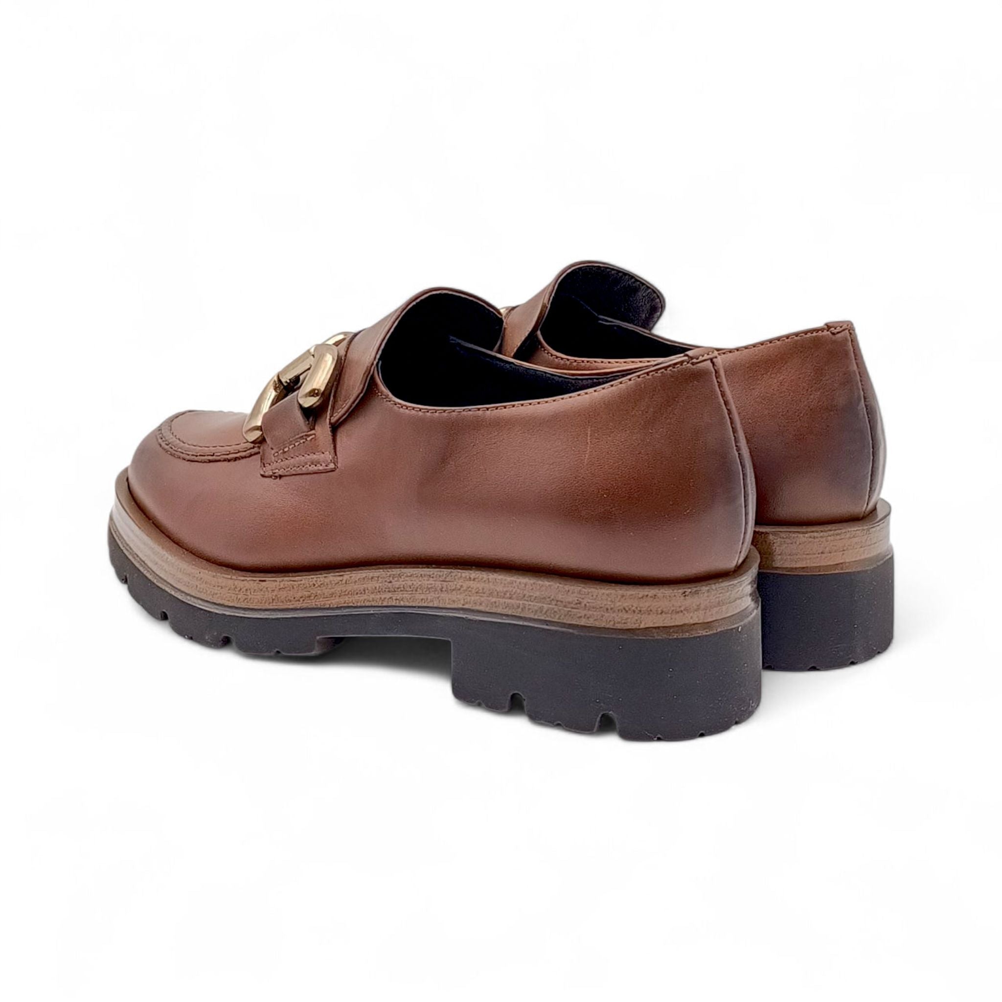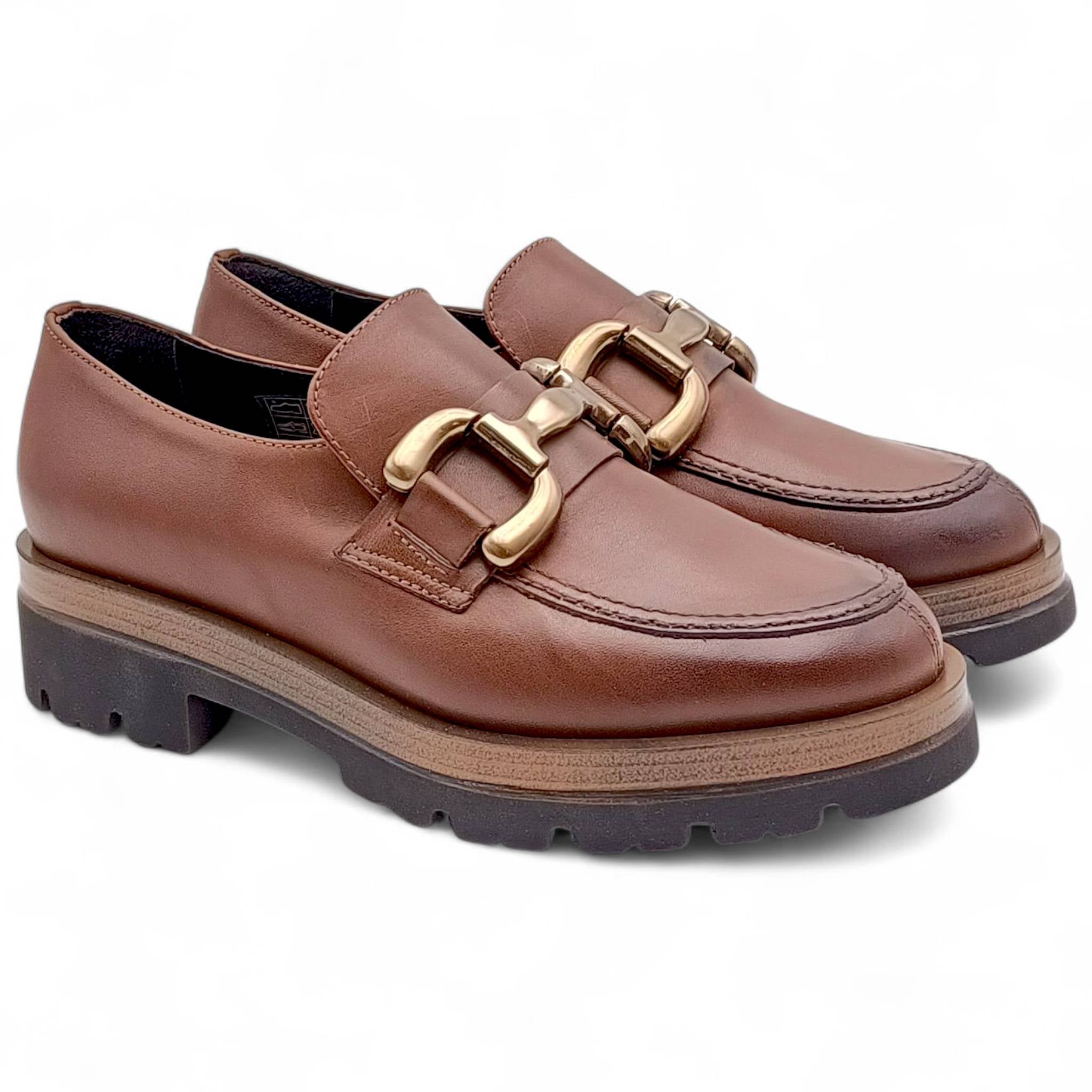 Mocassino Donna con platform in Pelle Tabacco con catena King Of Hearts I4RZ40