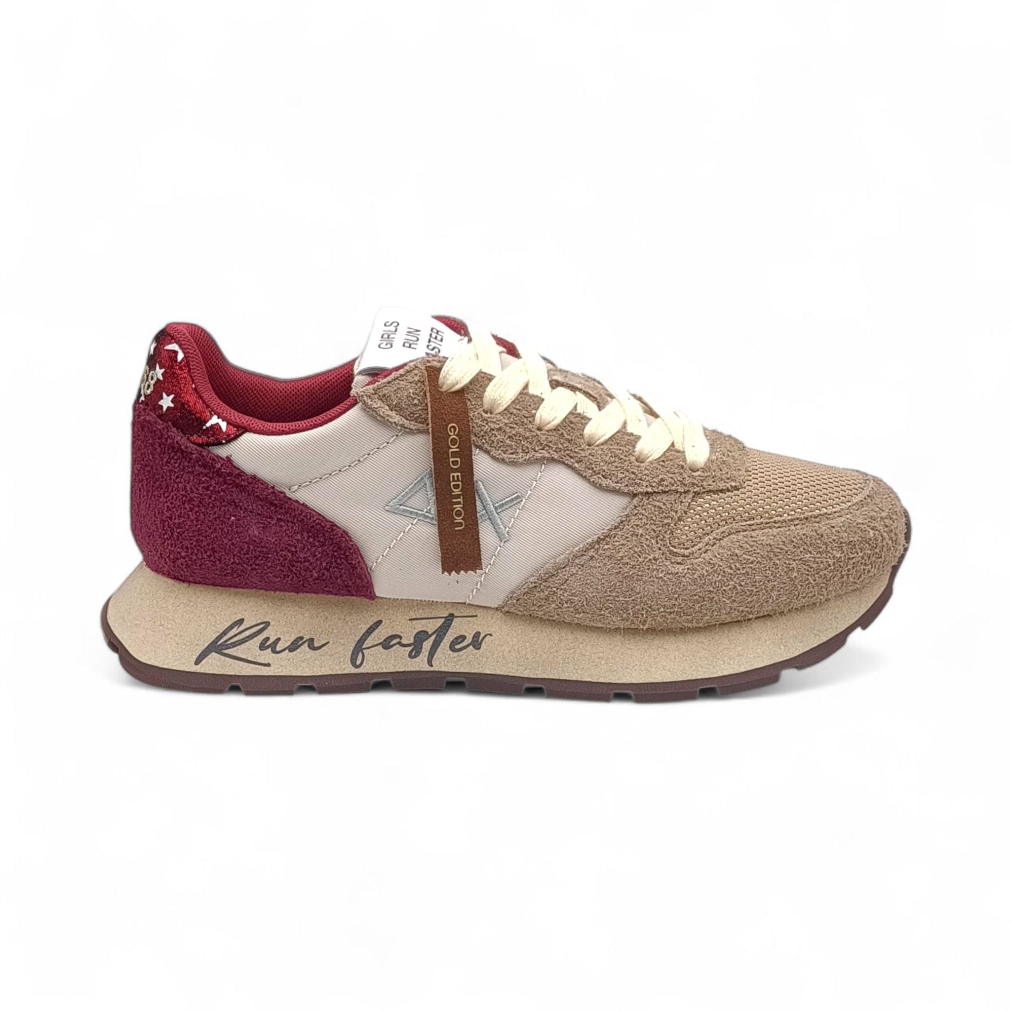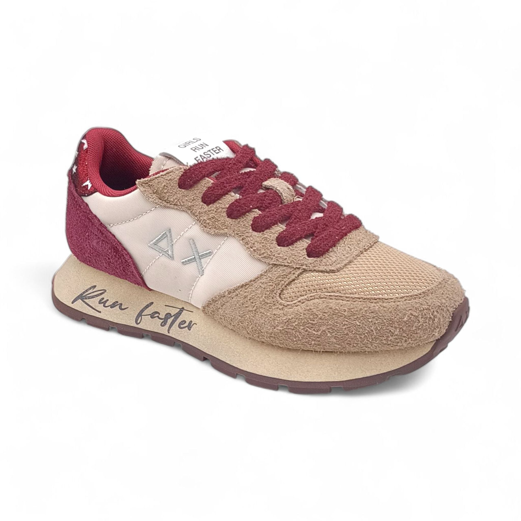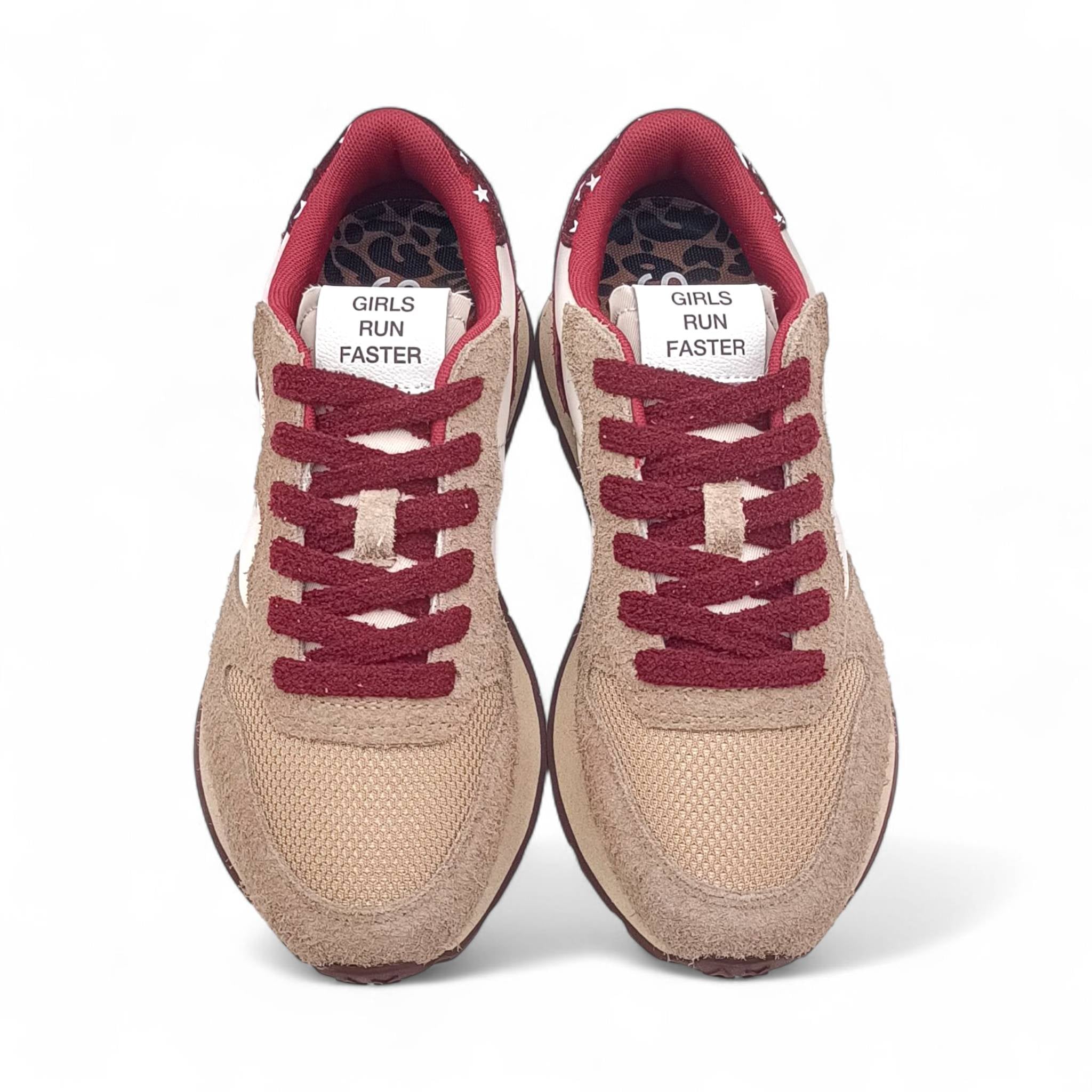 Sneaker donna misto camoscio e tessuto beige/bordeux sun68 Z45207 ally vintage