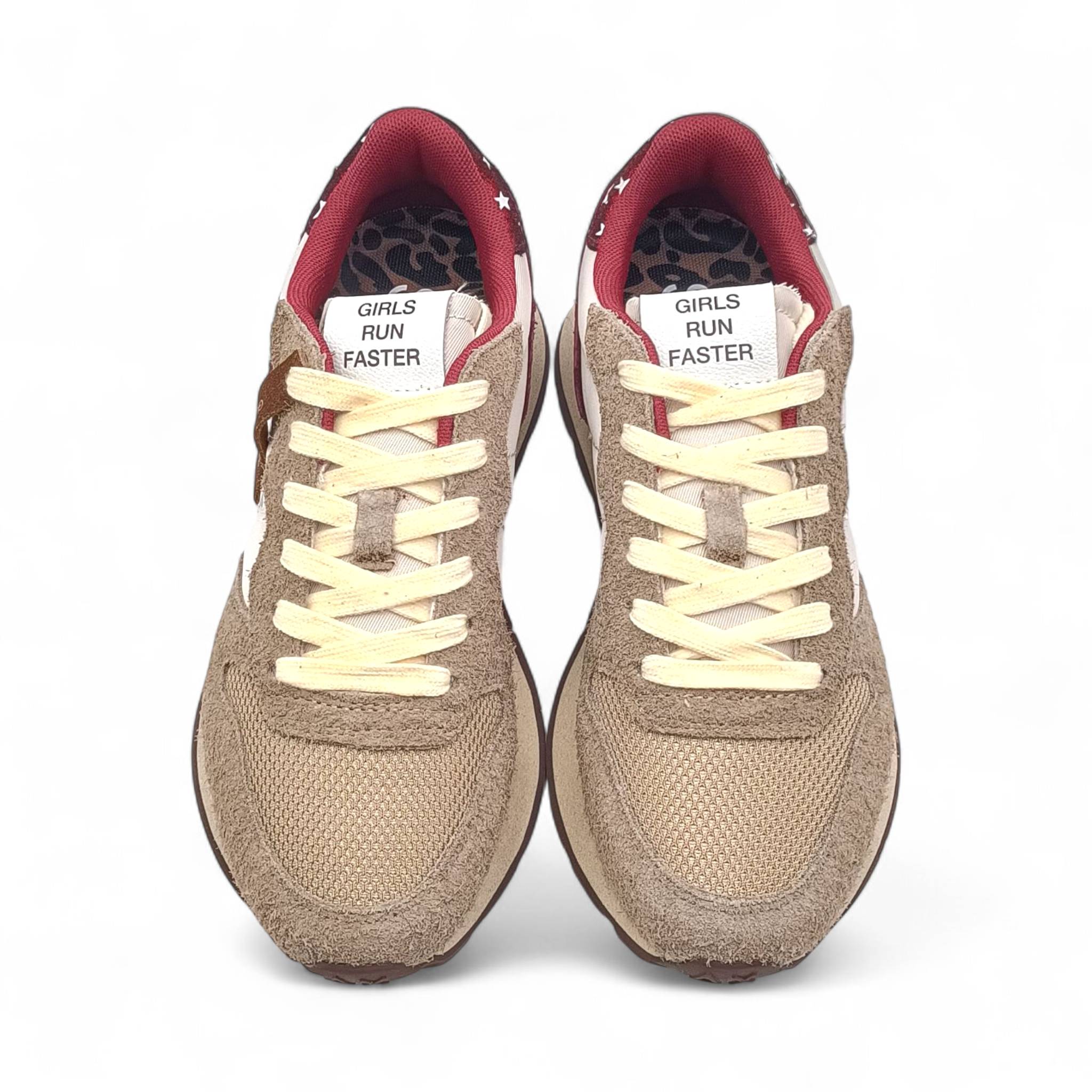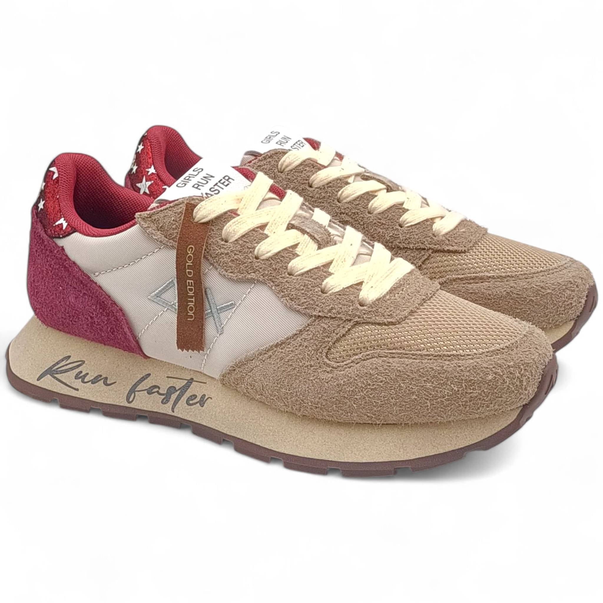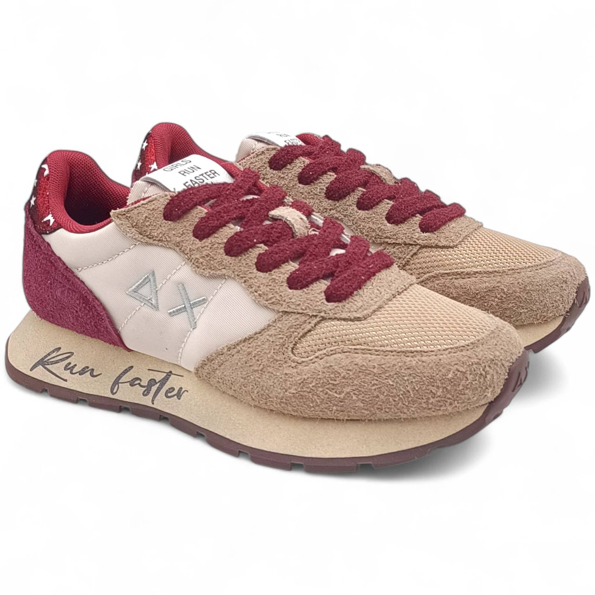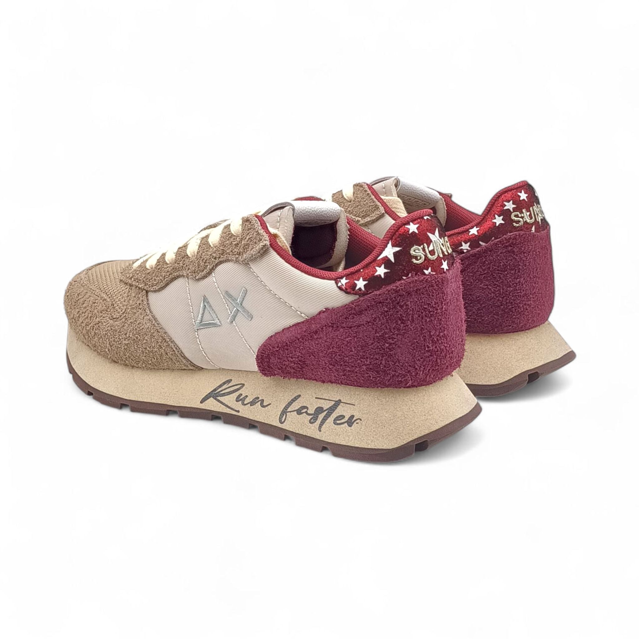 Sneaker donna misto camoscio e tessuto beige/bordeux sun68 Z45207 ally vintage