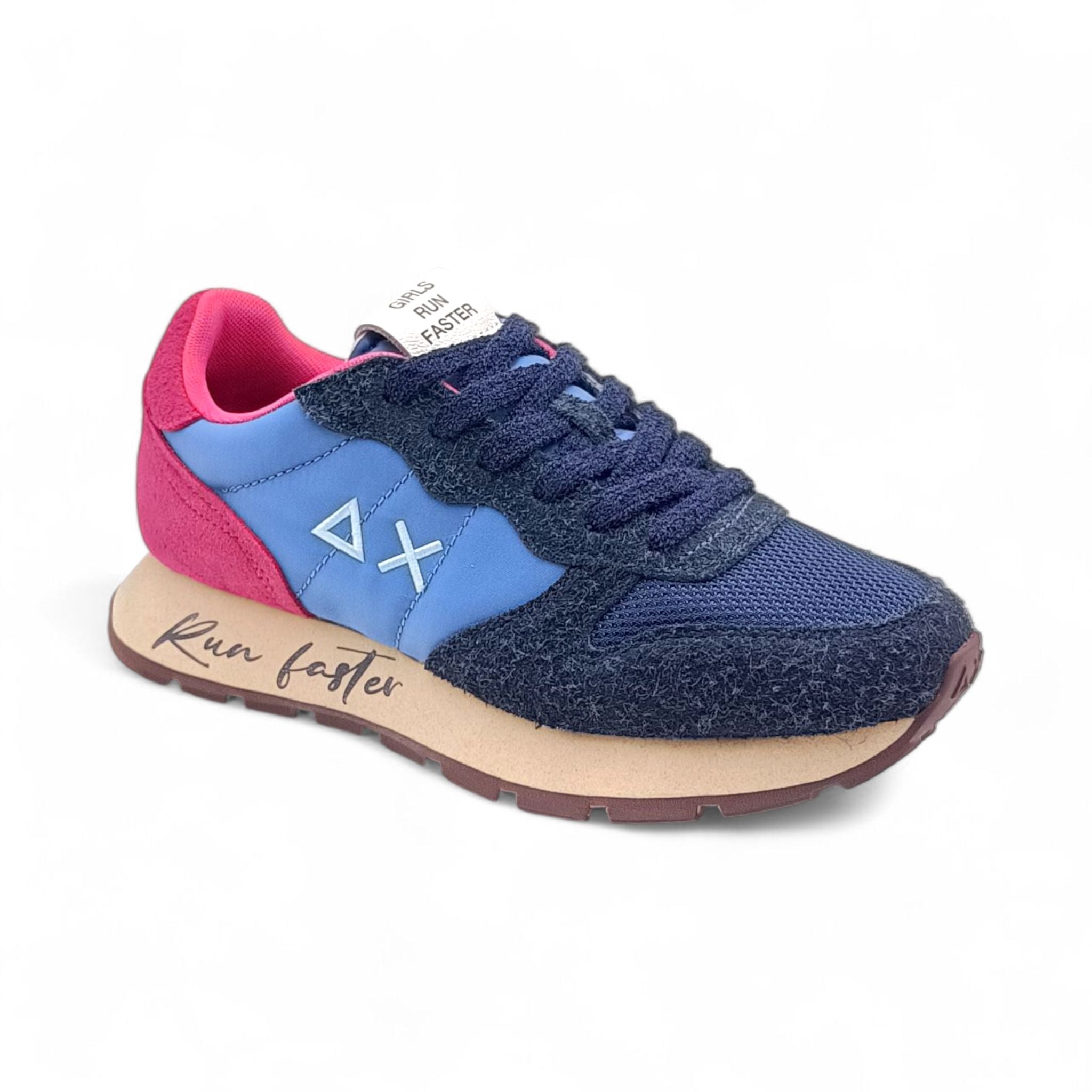 Sneaker donna misto tessuto e camoscio color blu sun68 Z45207 ally vintage