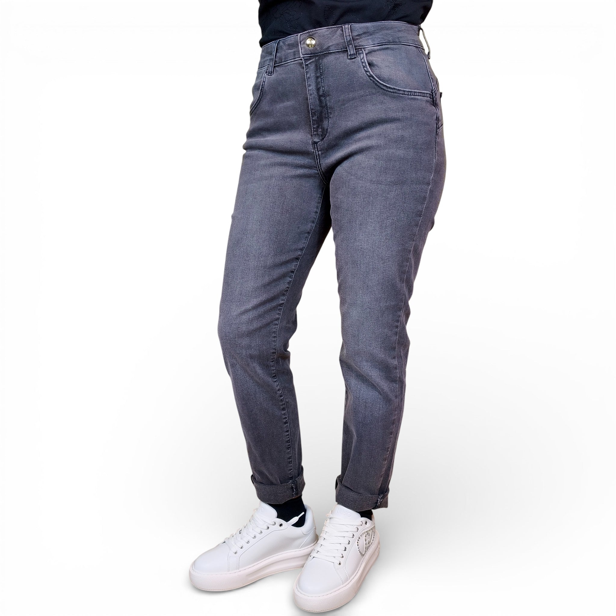 Il lavaggio grigio li rende versatili e facili da abbinare, perfetti per look casual e moderni.