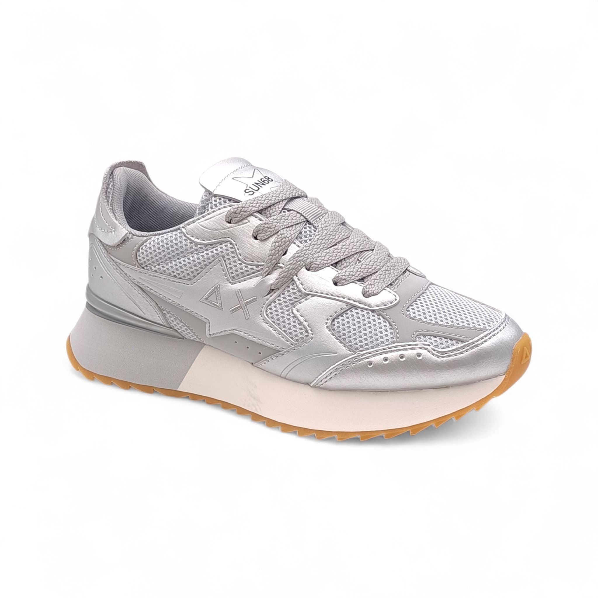 Sneaker donna sun68 pelle/tessuto argento Z36216