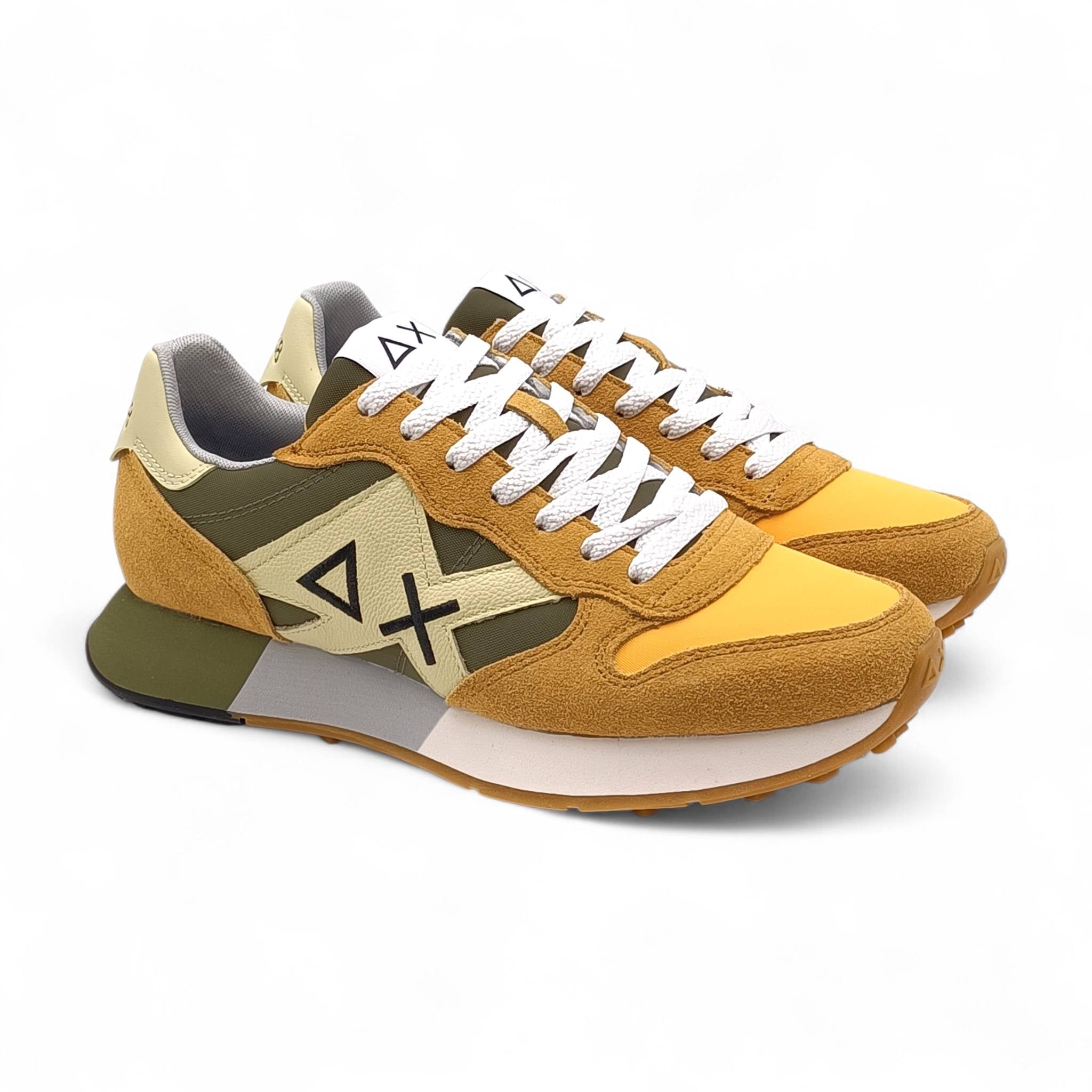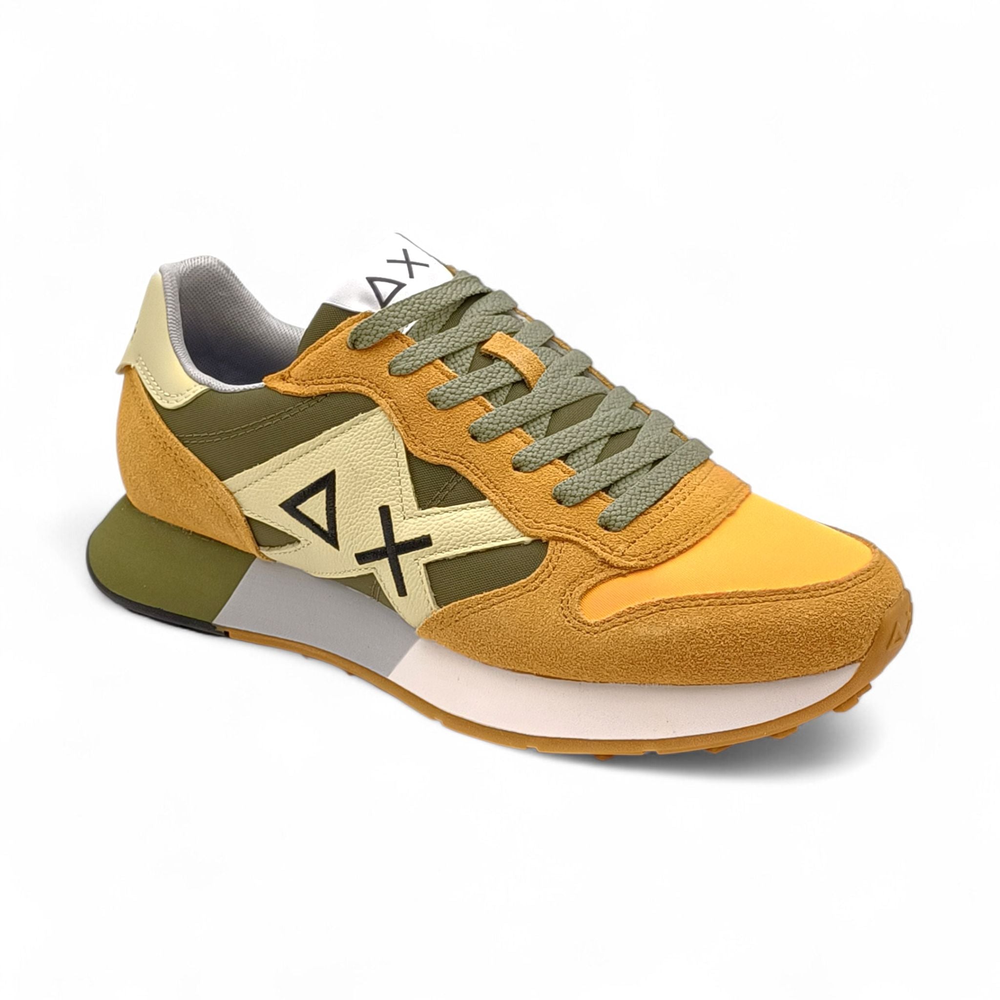 Sneaker uomo sun68 tessuto/camoscio giallo e verde militare Z36116