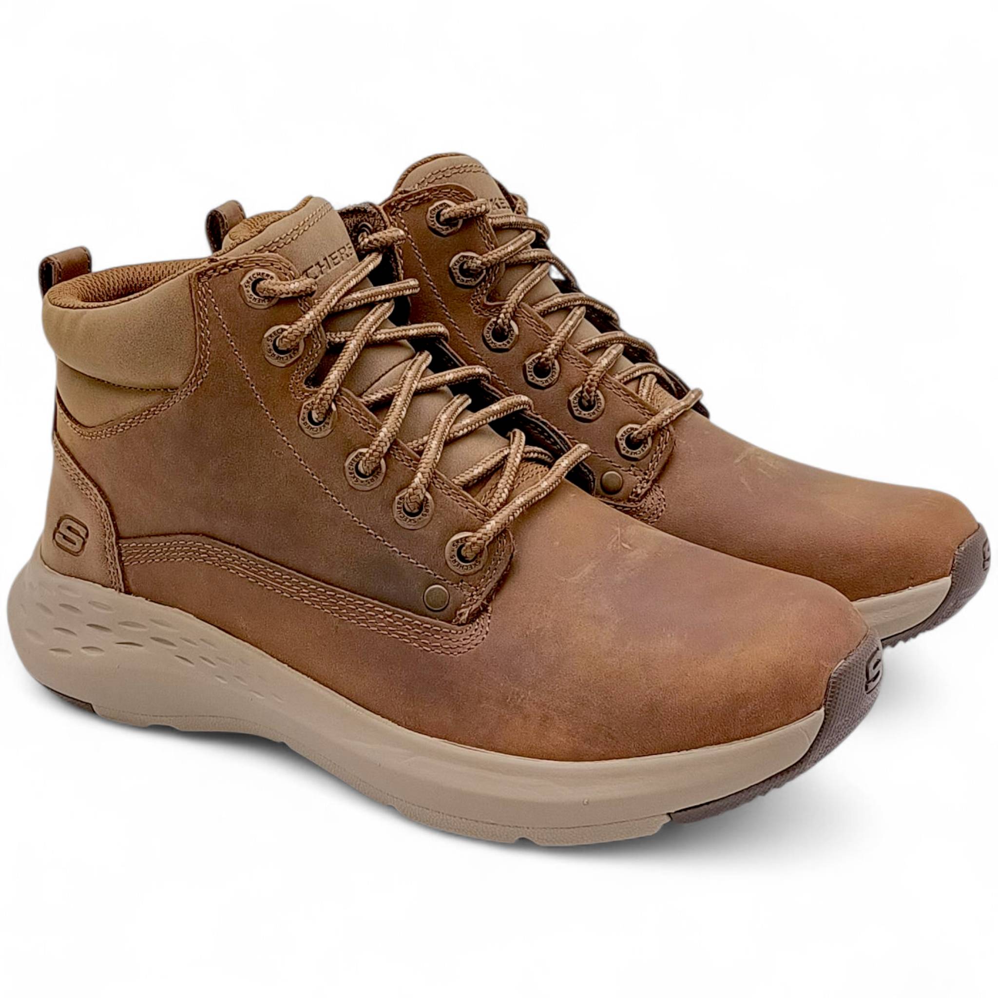 Scarponcino uomo in pelle marrone con memory foam Skechers 205175 DSRT