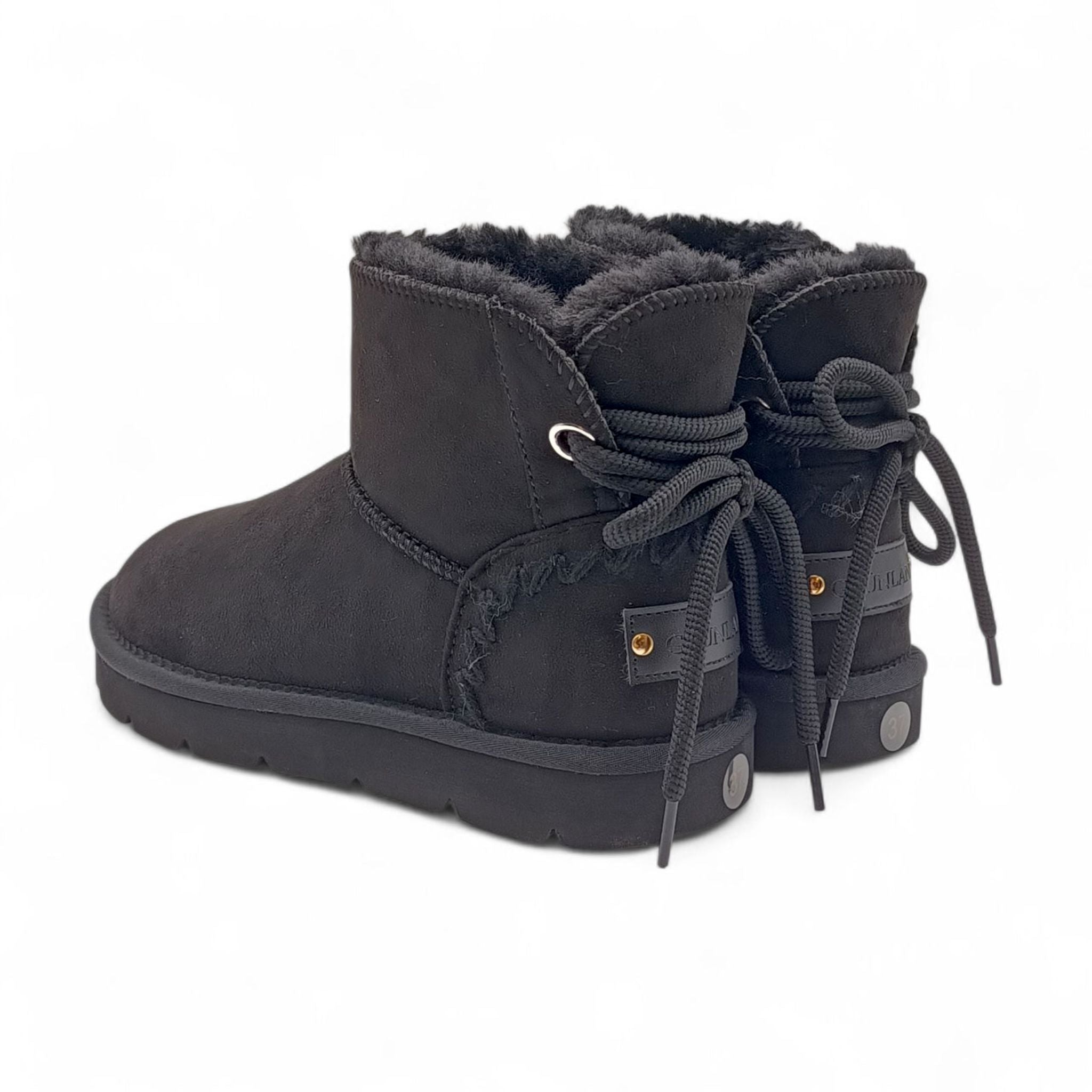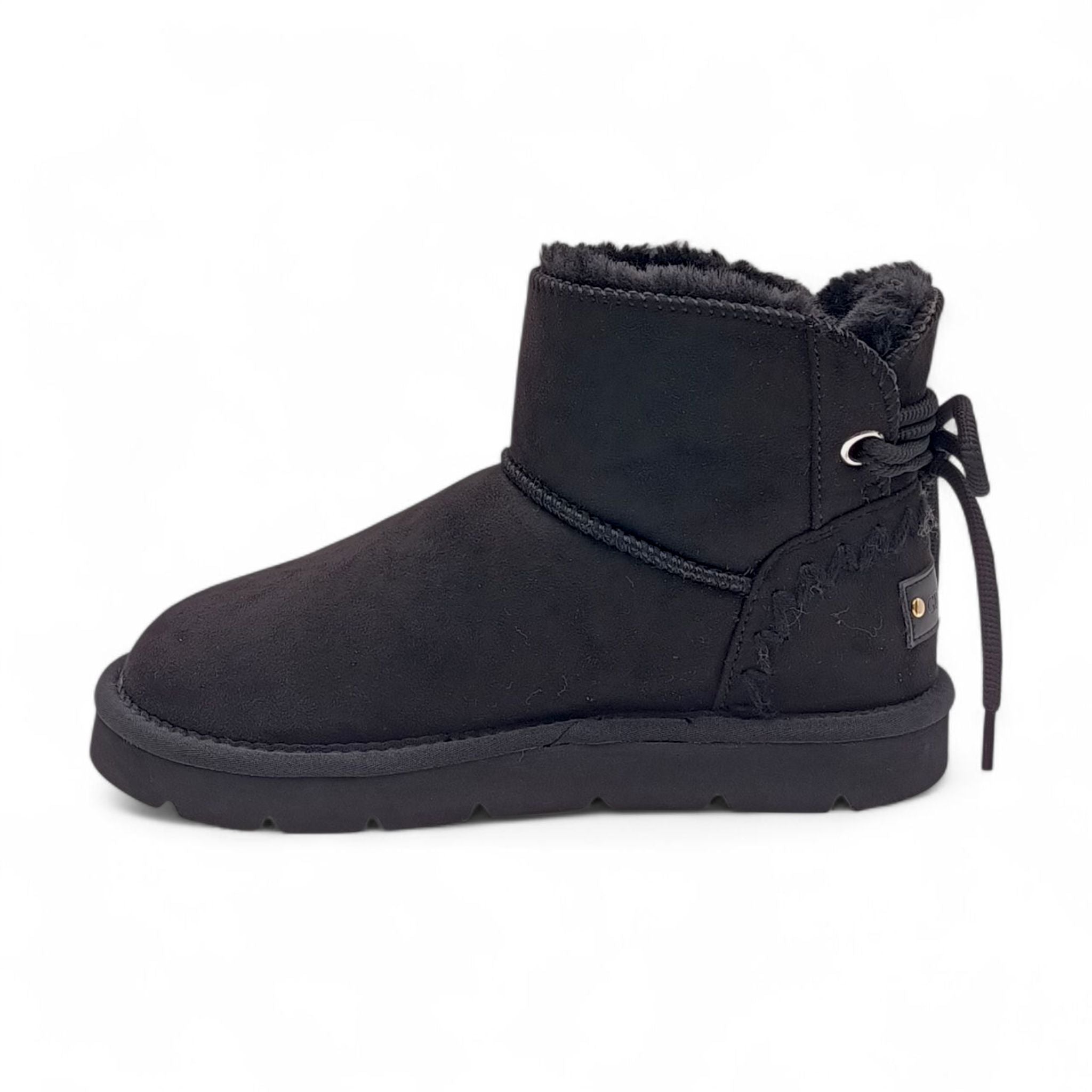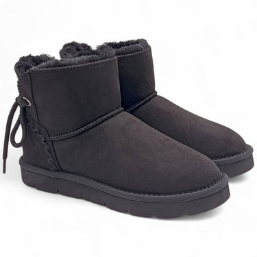 Le cuciture a contrasto e i laccetti decorativi arricchiscono questi stivaletti rendendoli ancora più cozy.