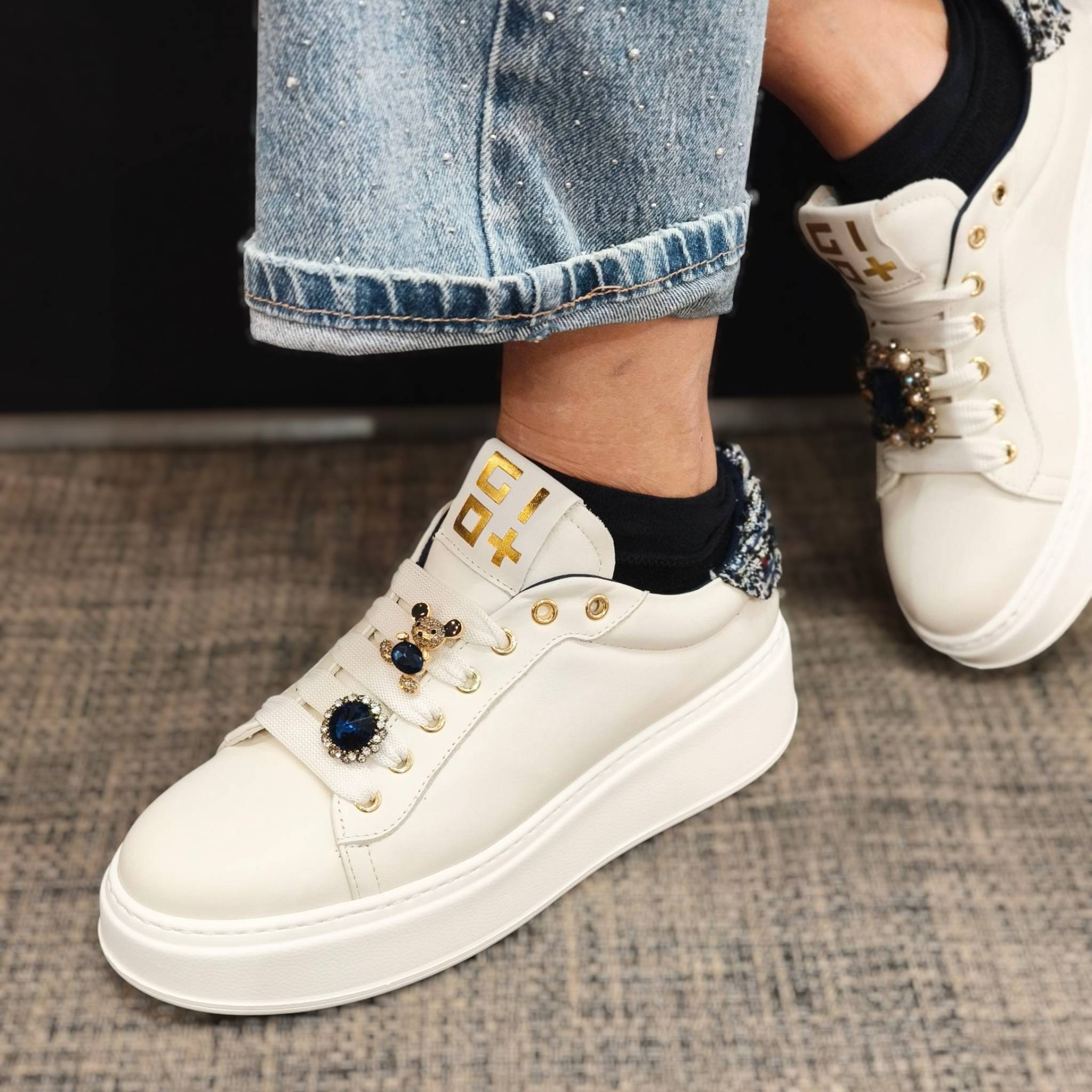 Sneaker donna in pelle color panna e accessori Gio+ PIA424A