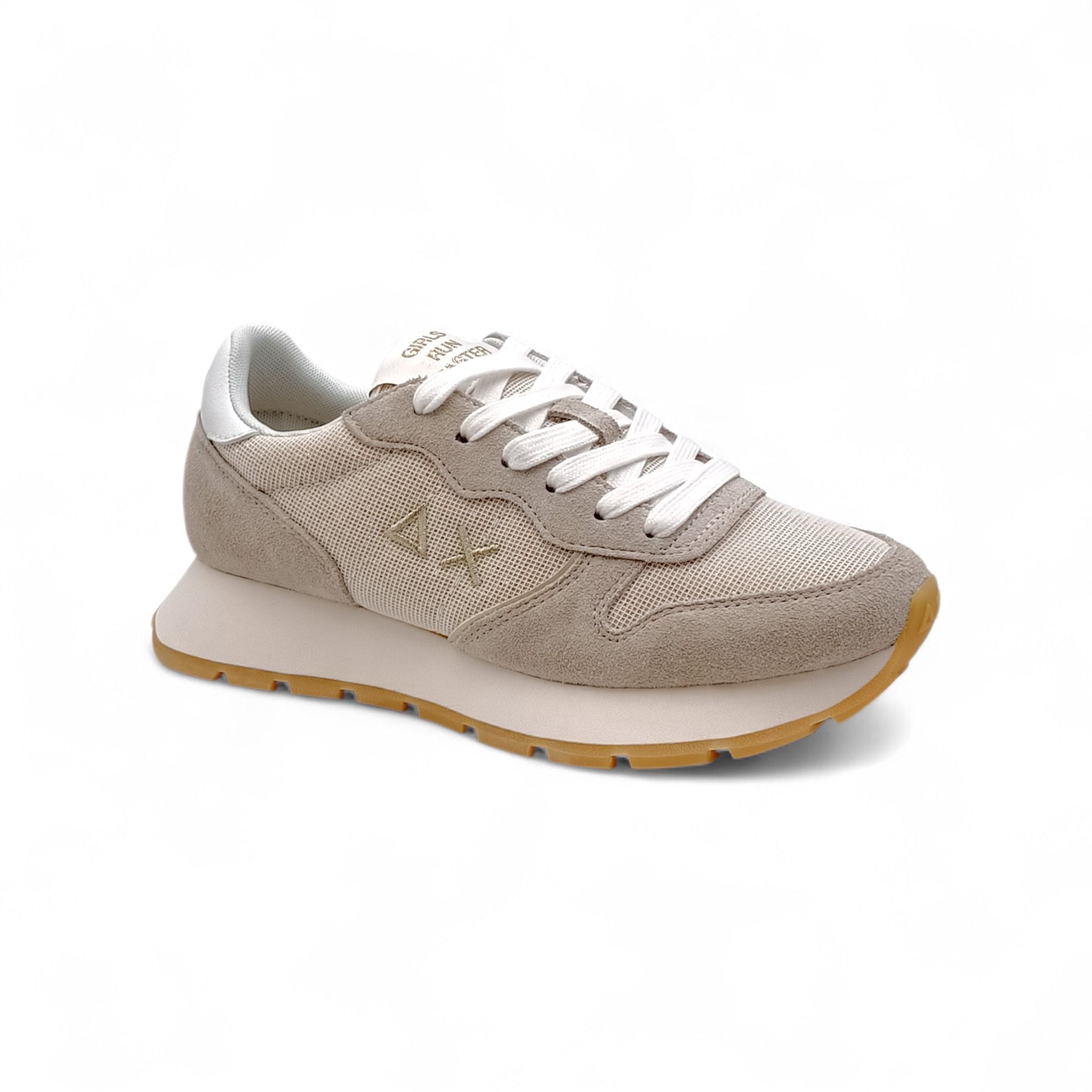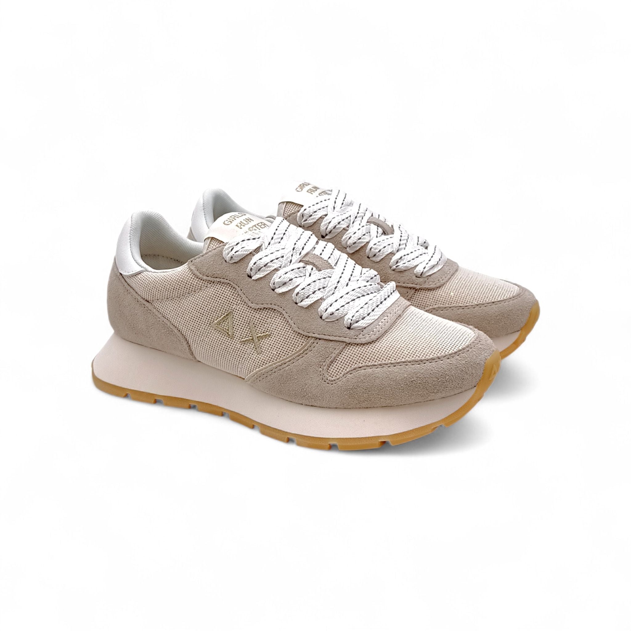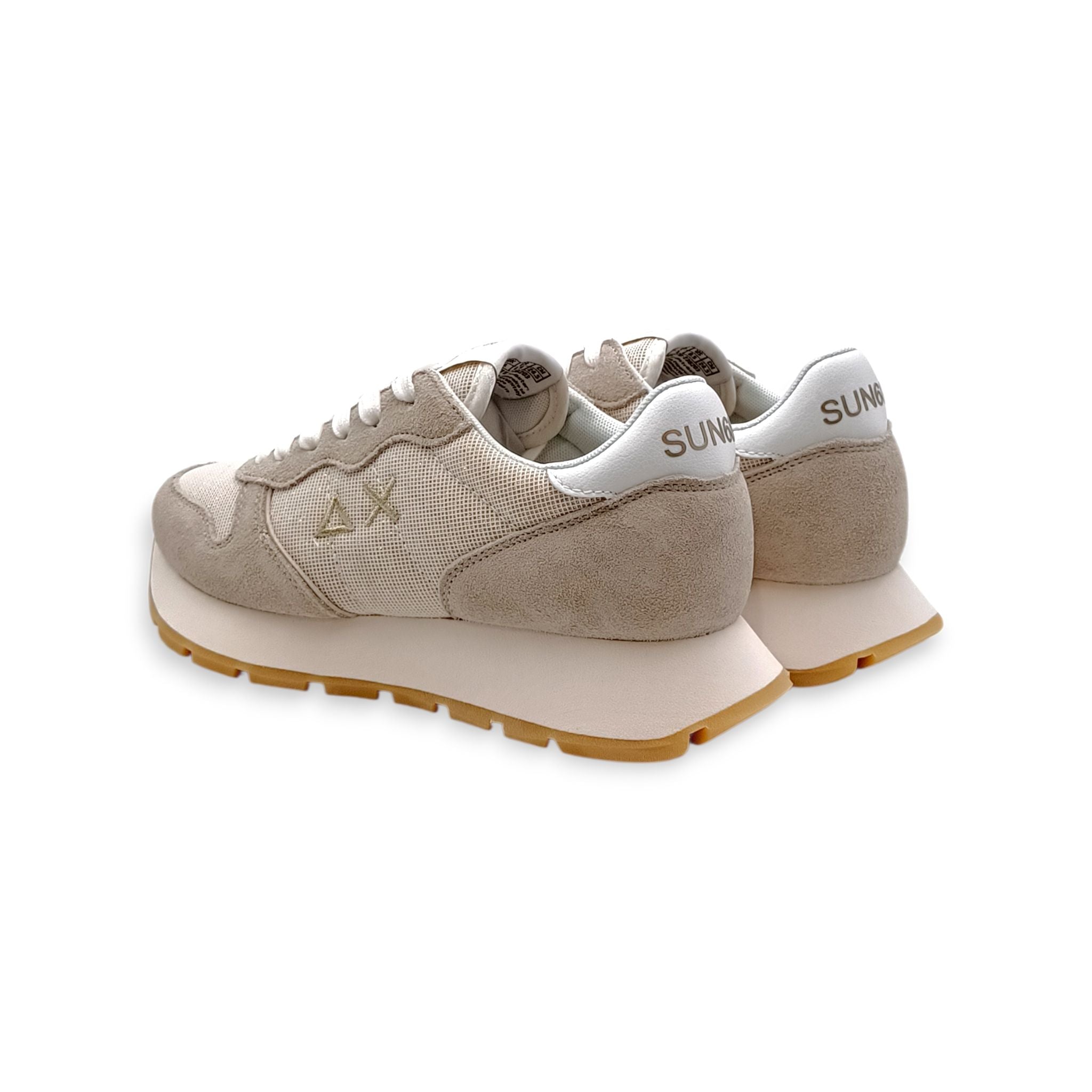 Sneaker donna sun68 tessuto/camoscio beige con glitter dorati Z36203