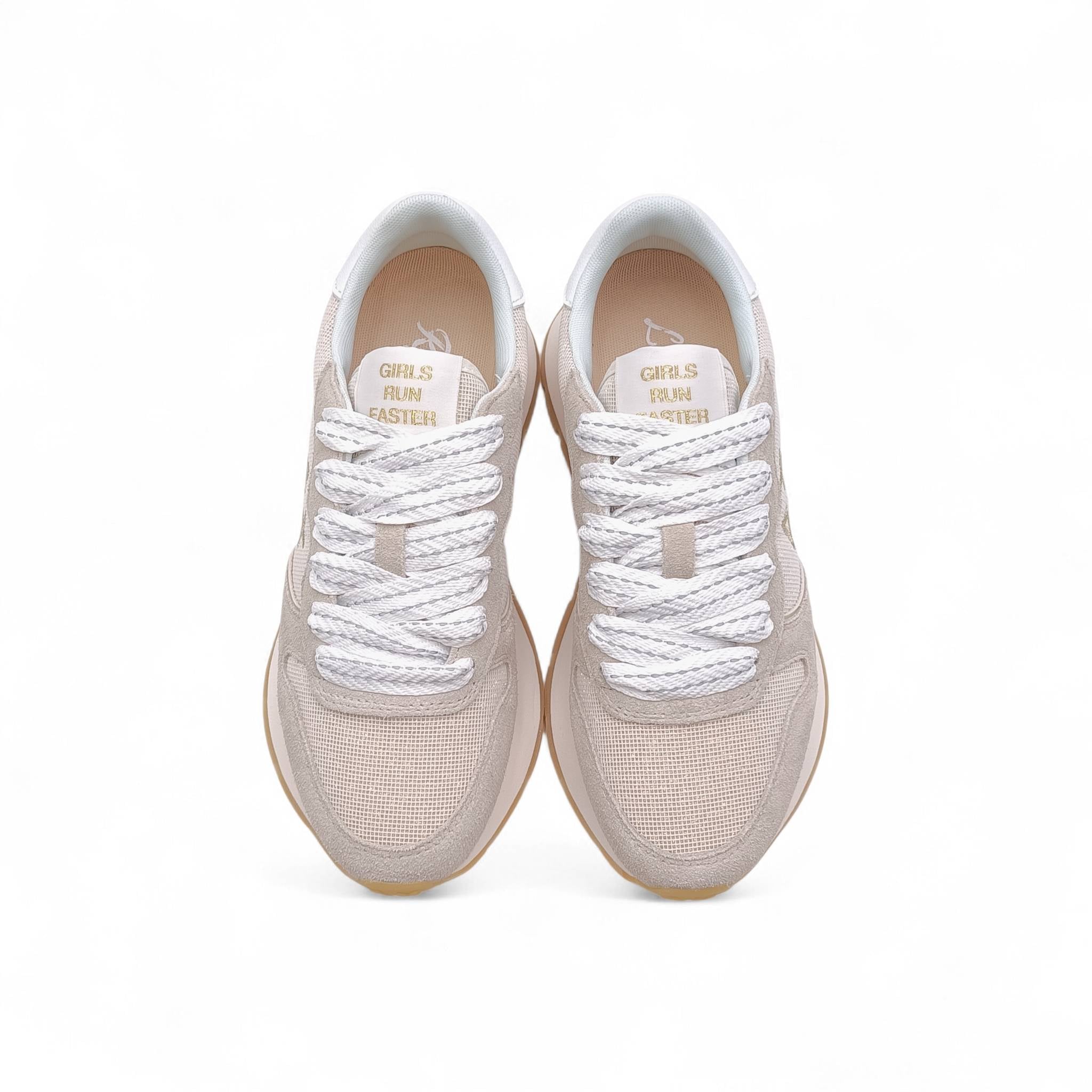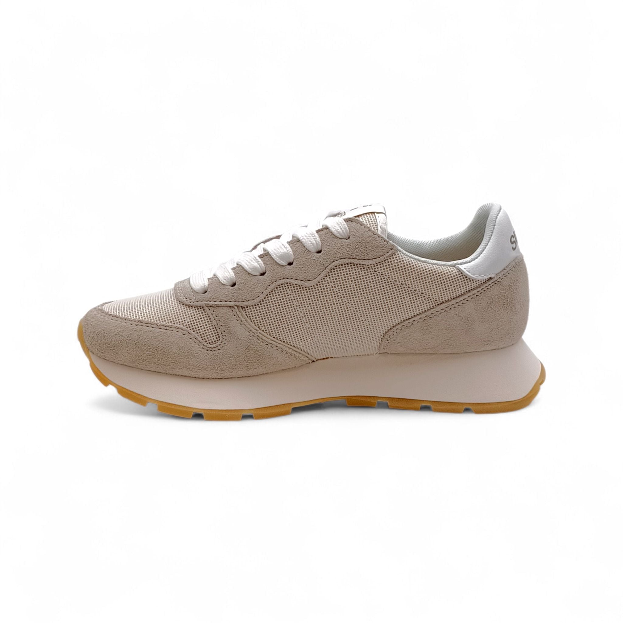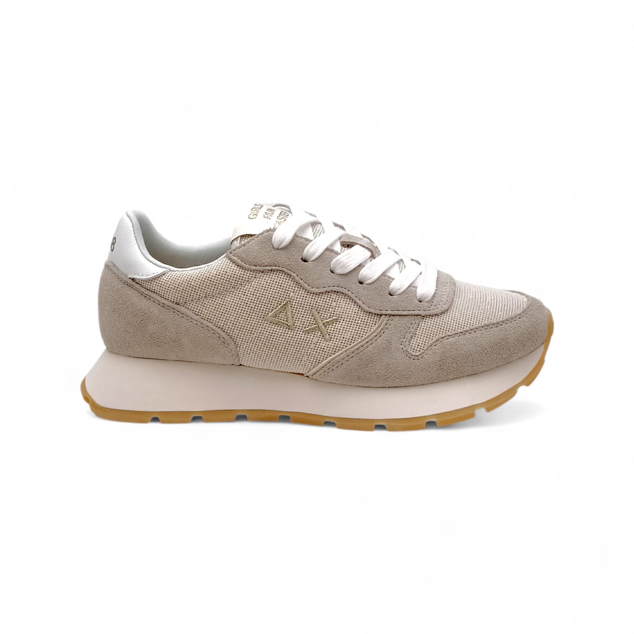 Sneaker donna sun68 tessuto/camoscio beige con glitter dorati Z36203
