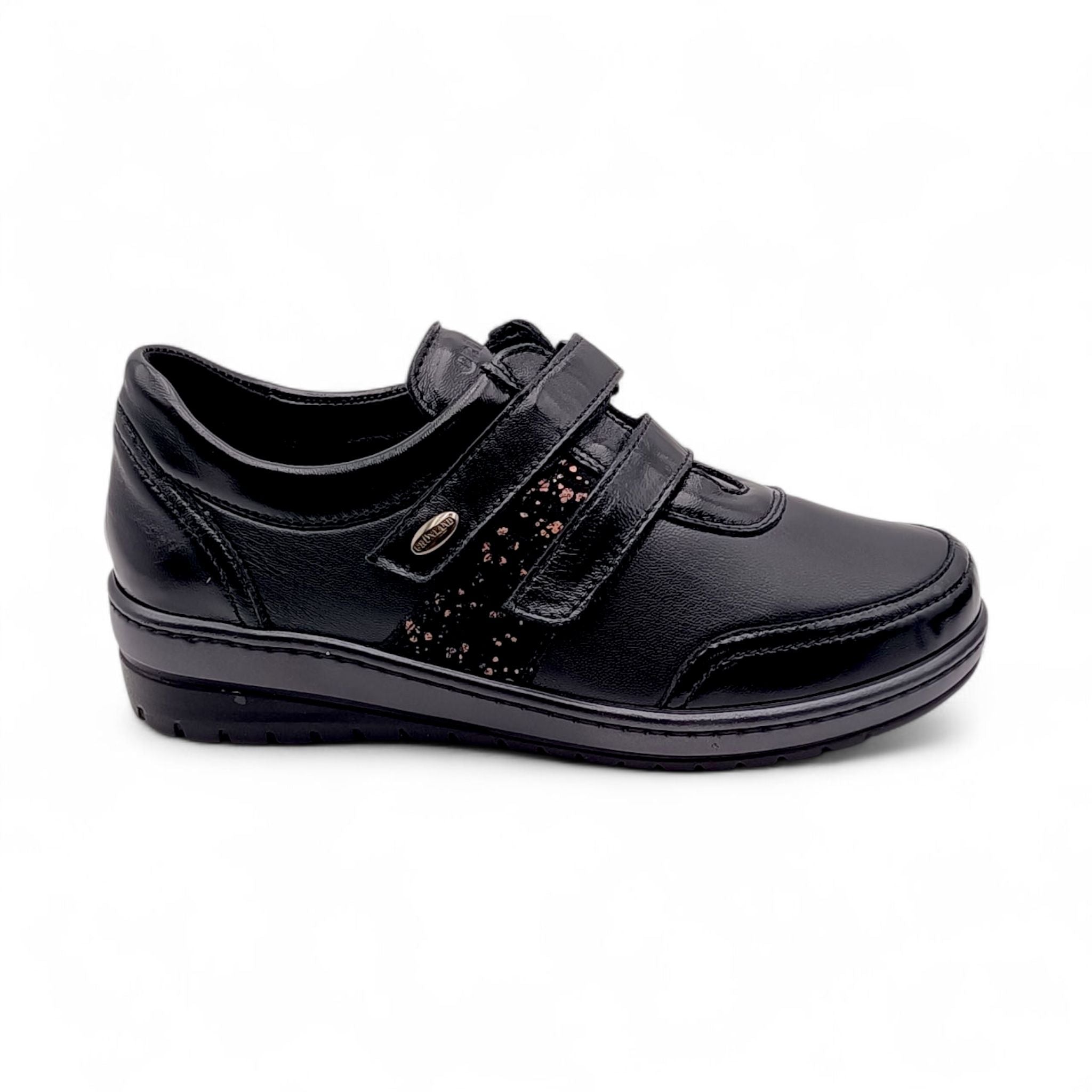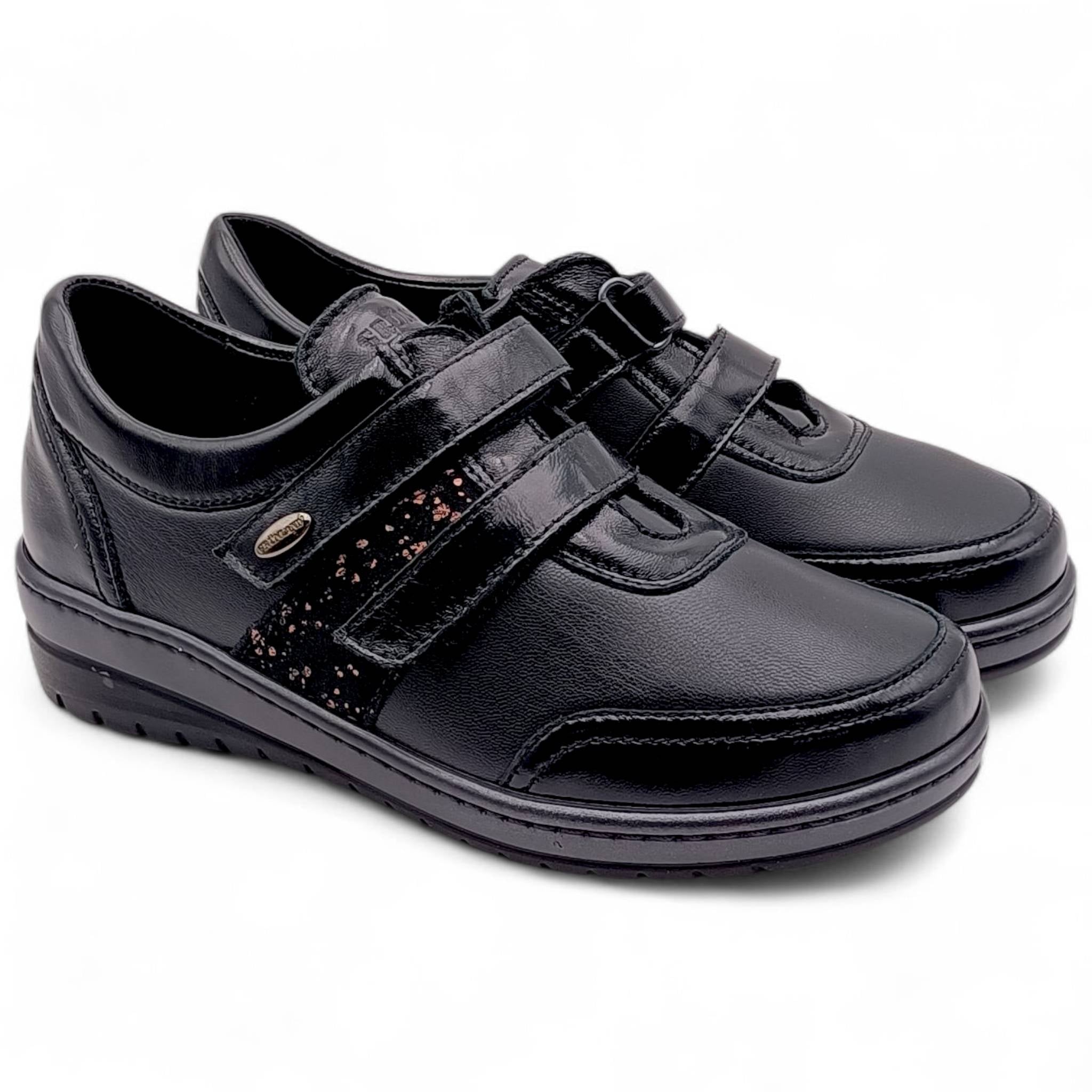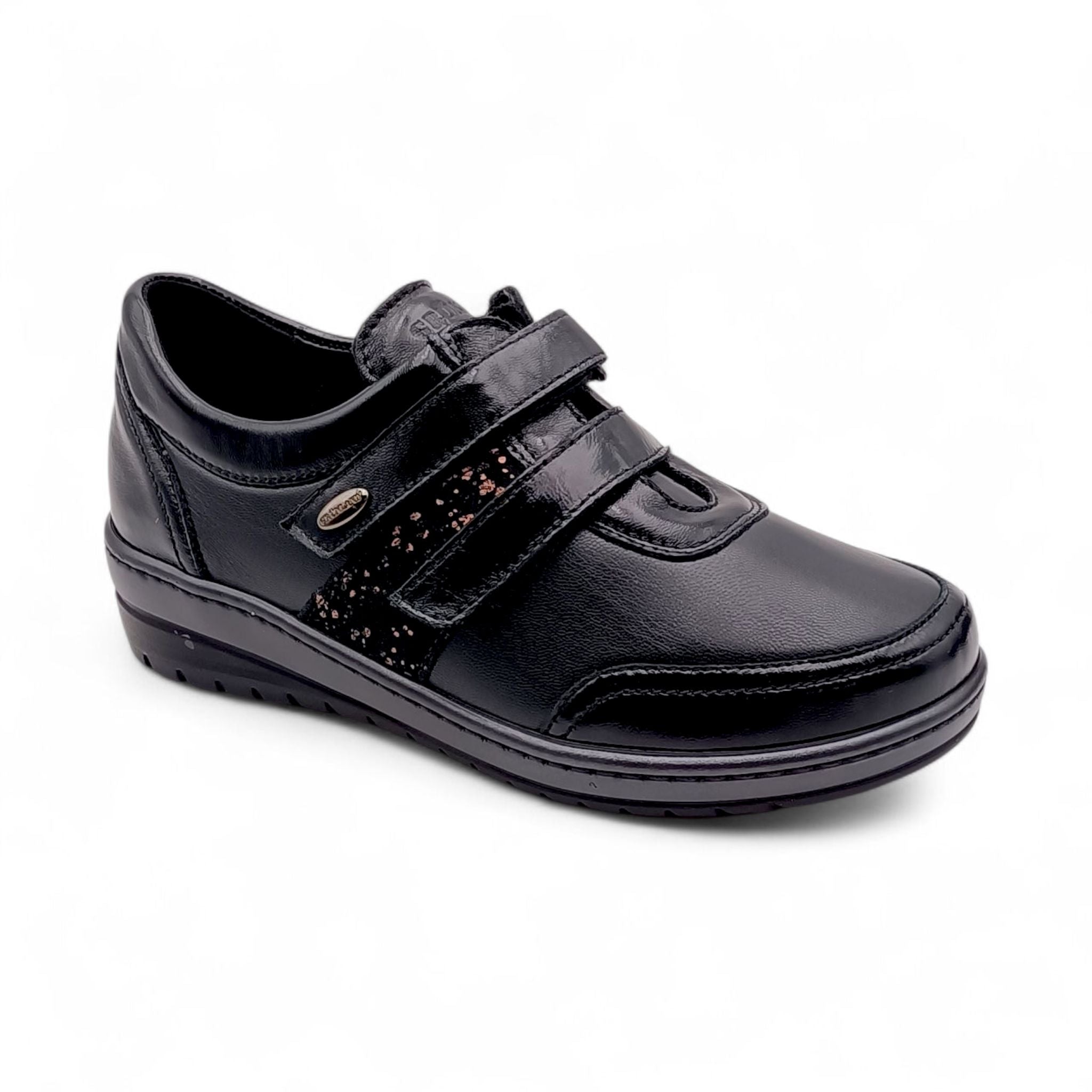 Ha una calzata di larghezza maggiorata e il sottopiede Re-soft è estraibile consentendo l'inserimento del plantare ortopedico.