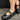 Tomaia in pelle impreziosita dalla fibbia con castoni in tinta.