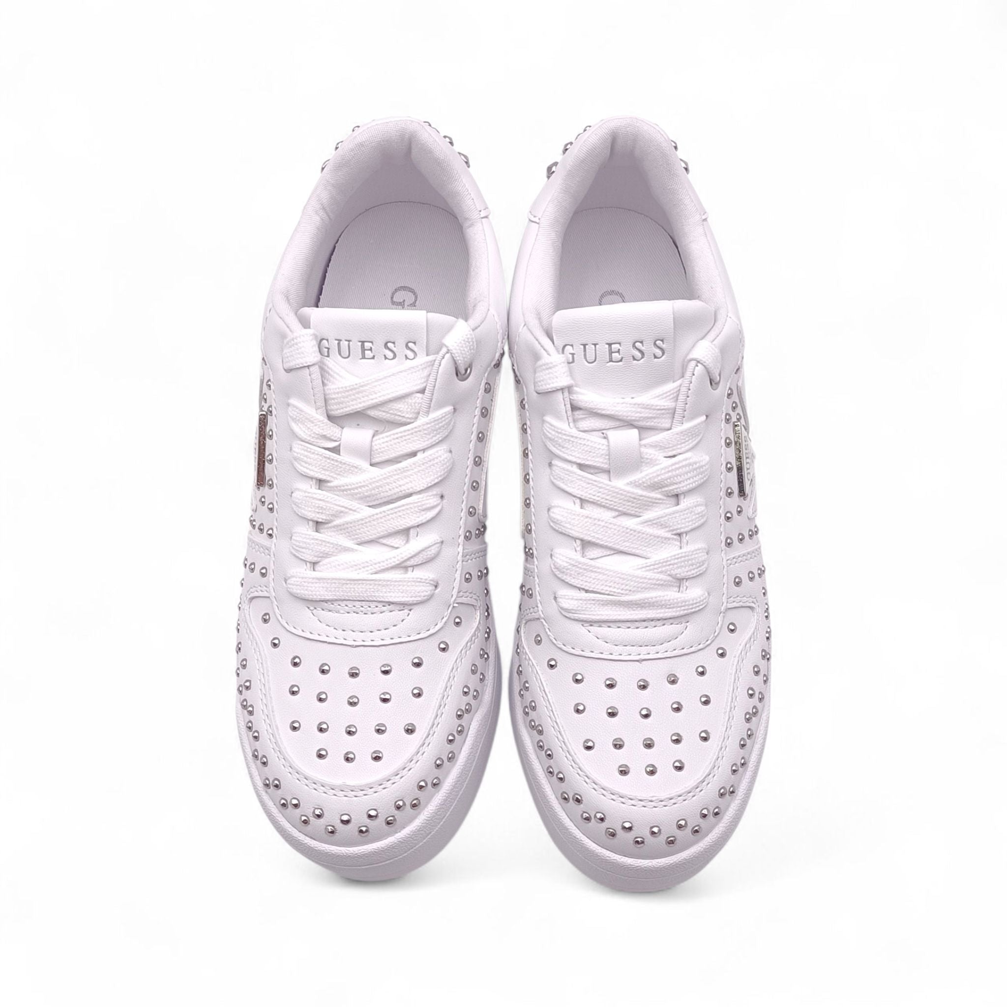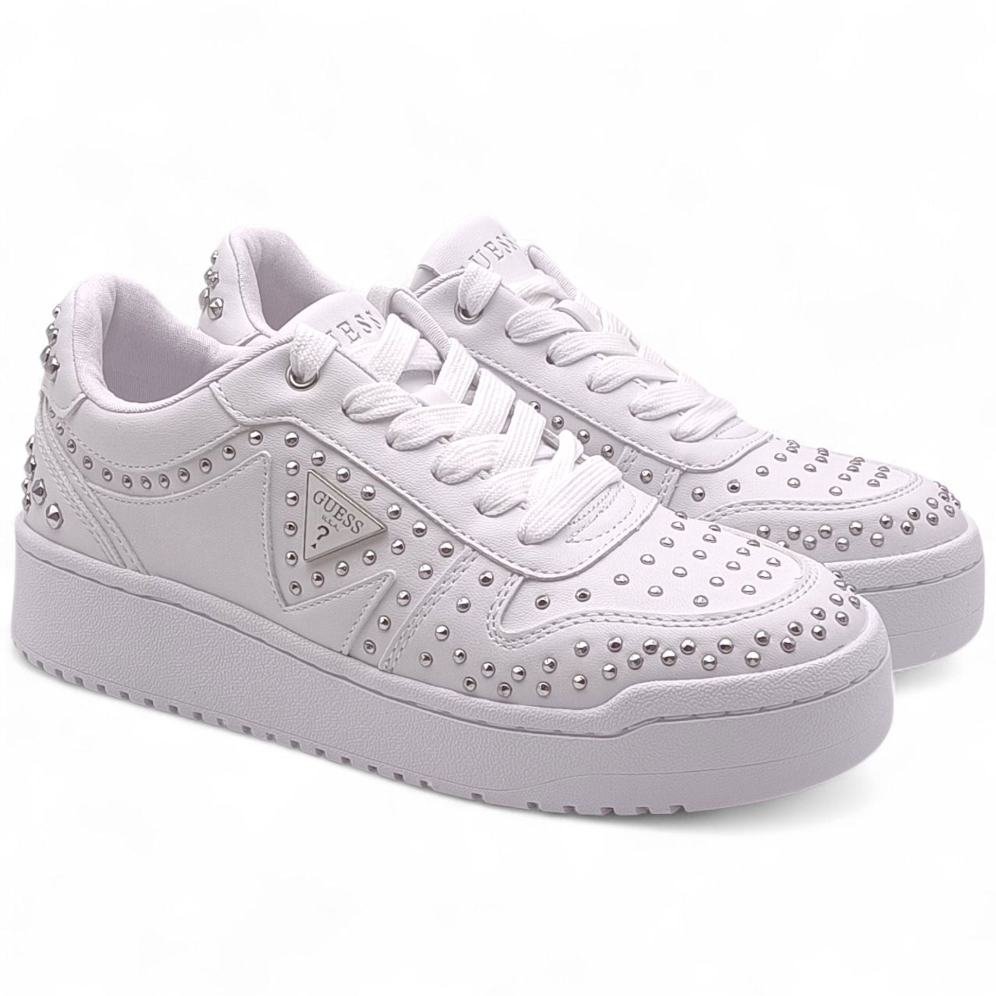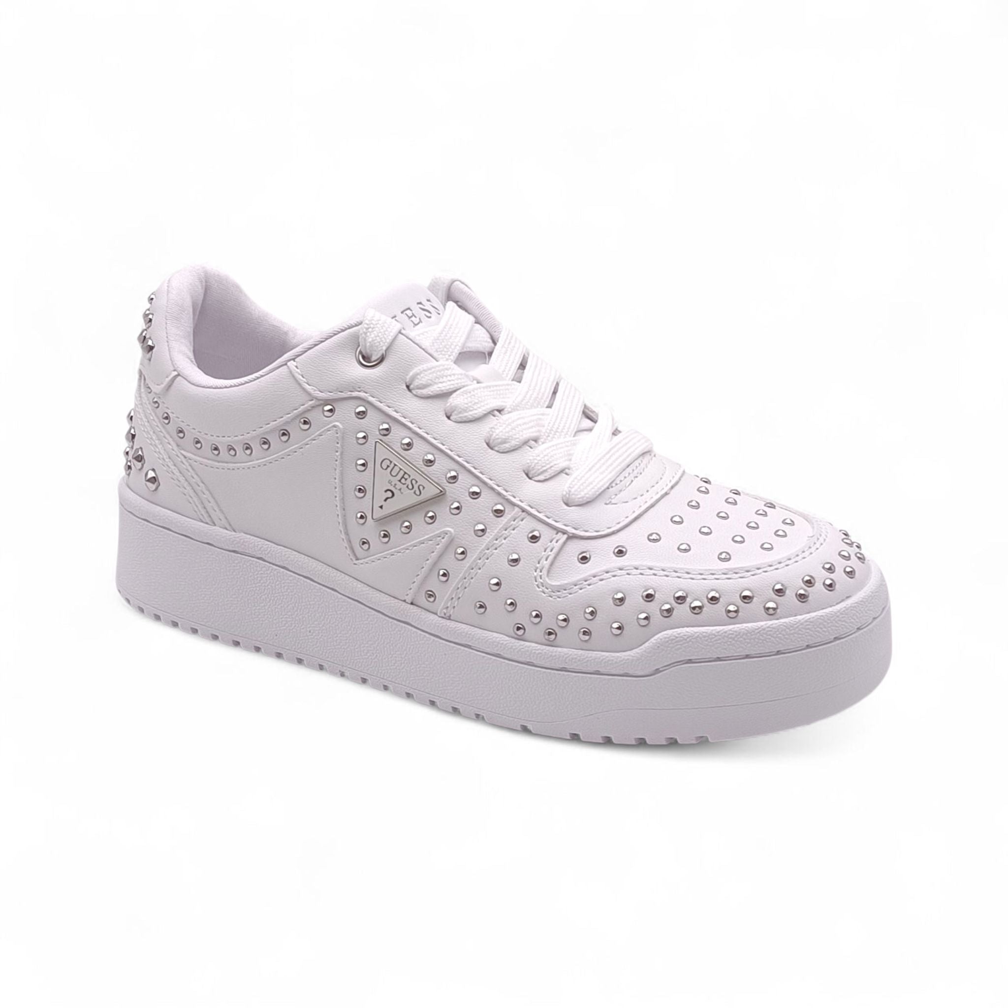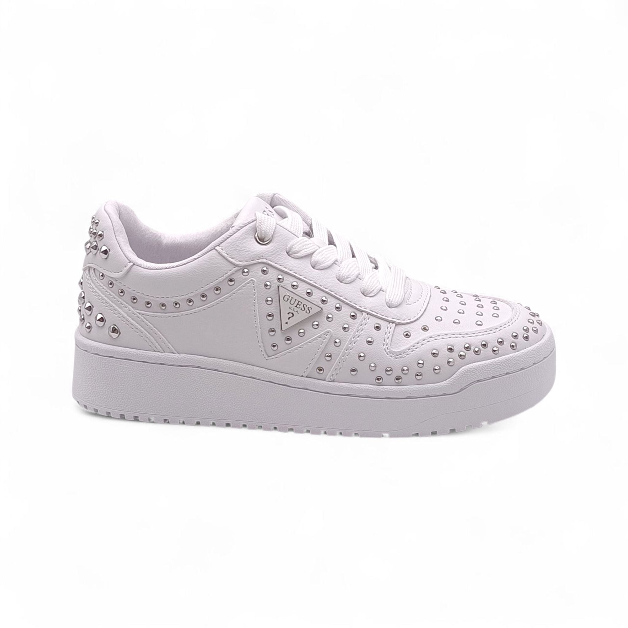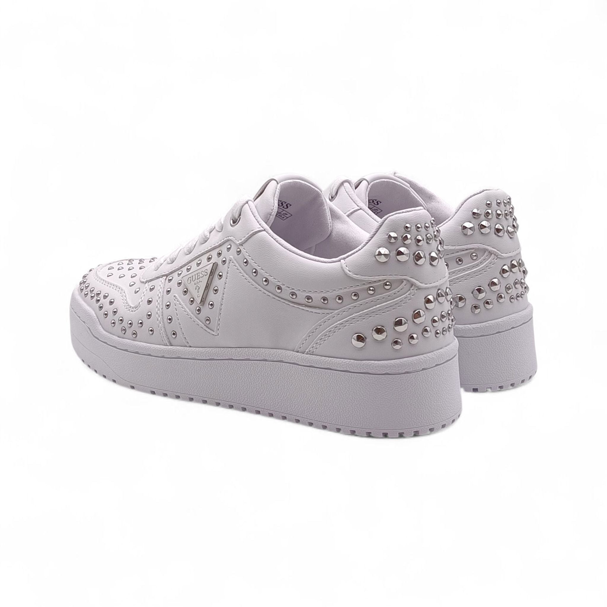 Sneaker donna in ecopelle bianca con borchie Guess FLFMGNELE12