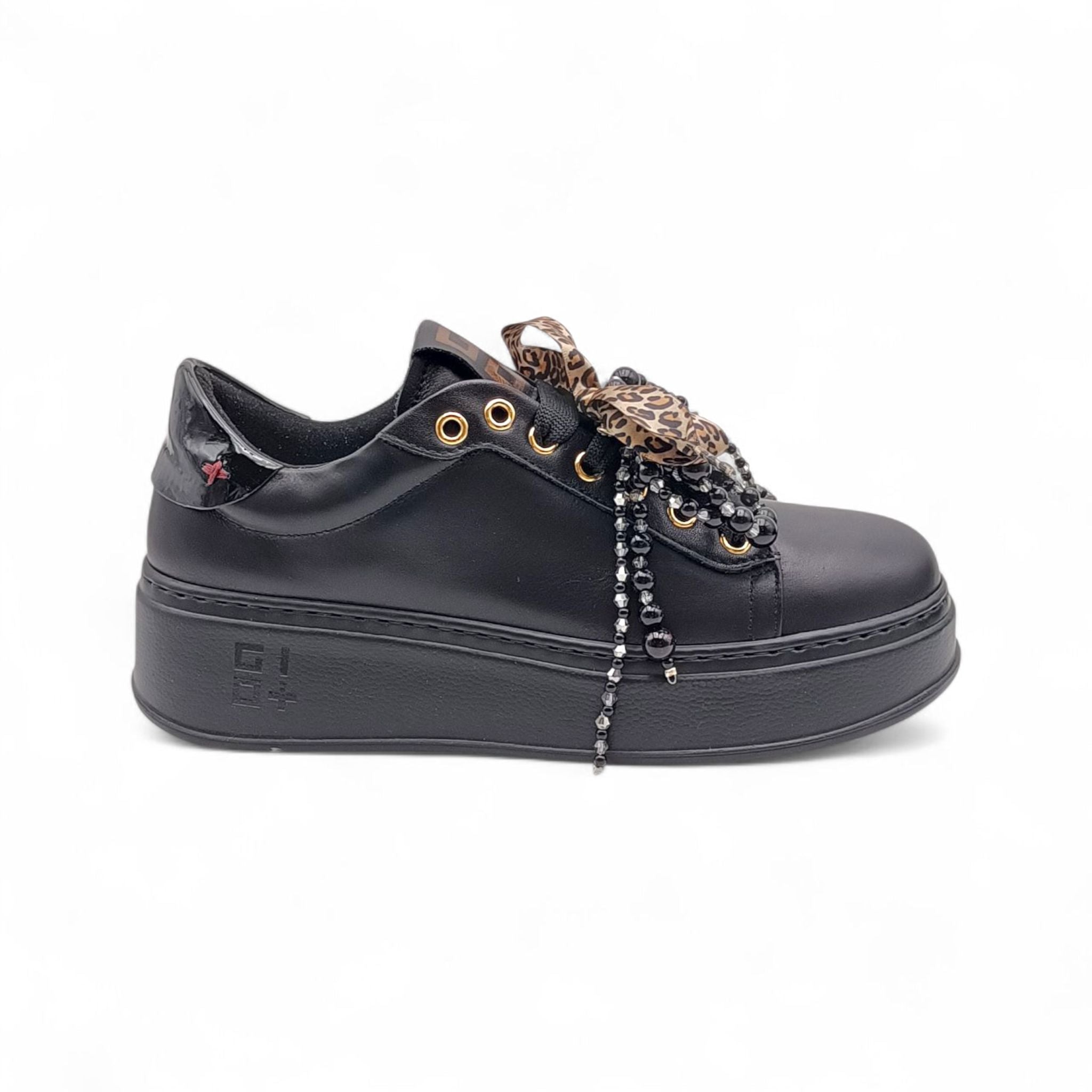 Sneaker donna in pelle nera con accessori Gio+ PIA434A