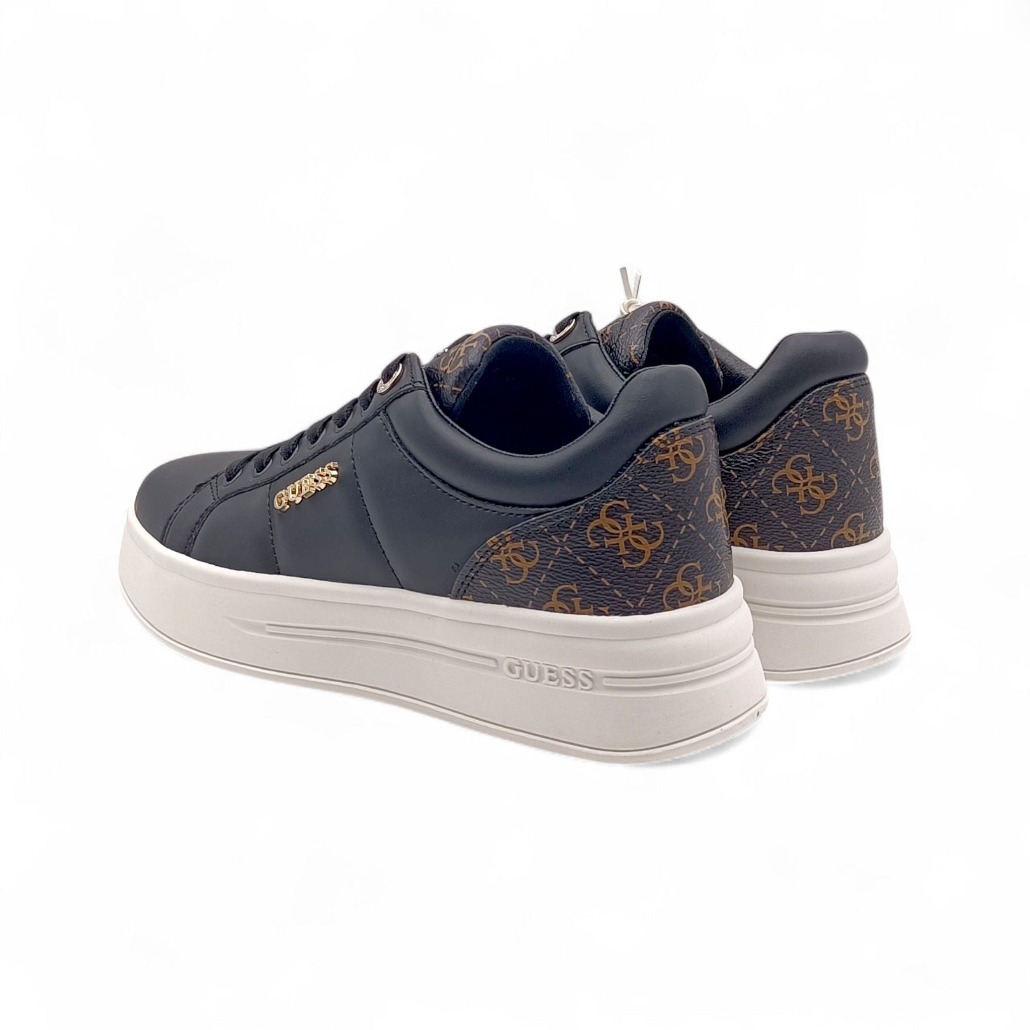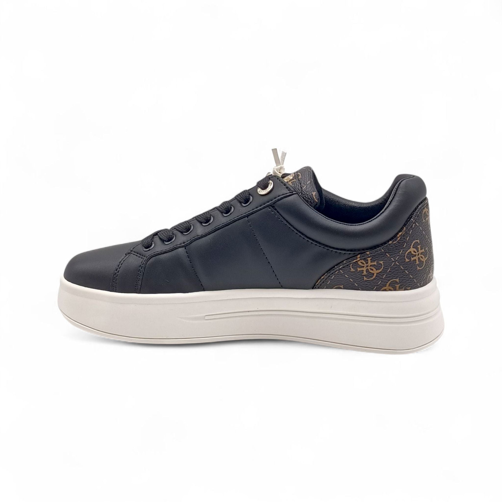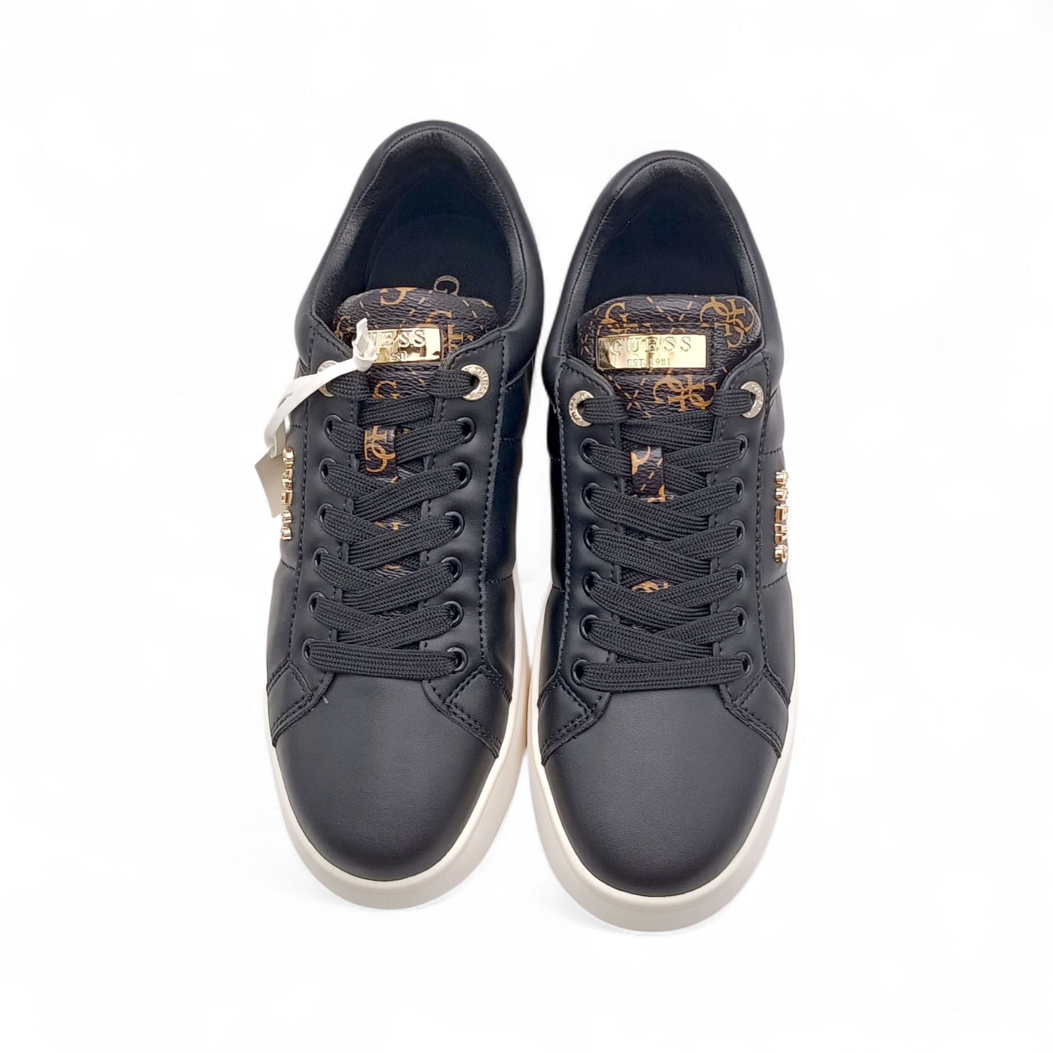 Sneaker donna Guess in pelle nera con suola a contrasto.