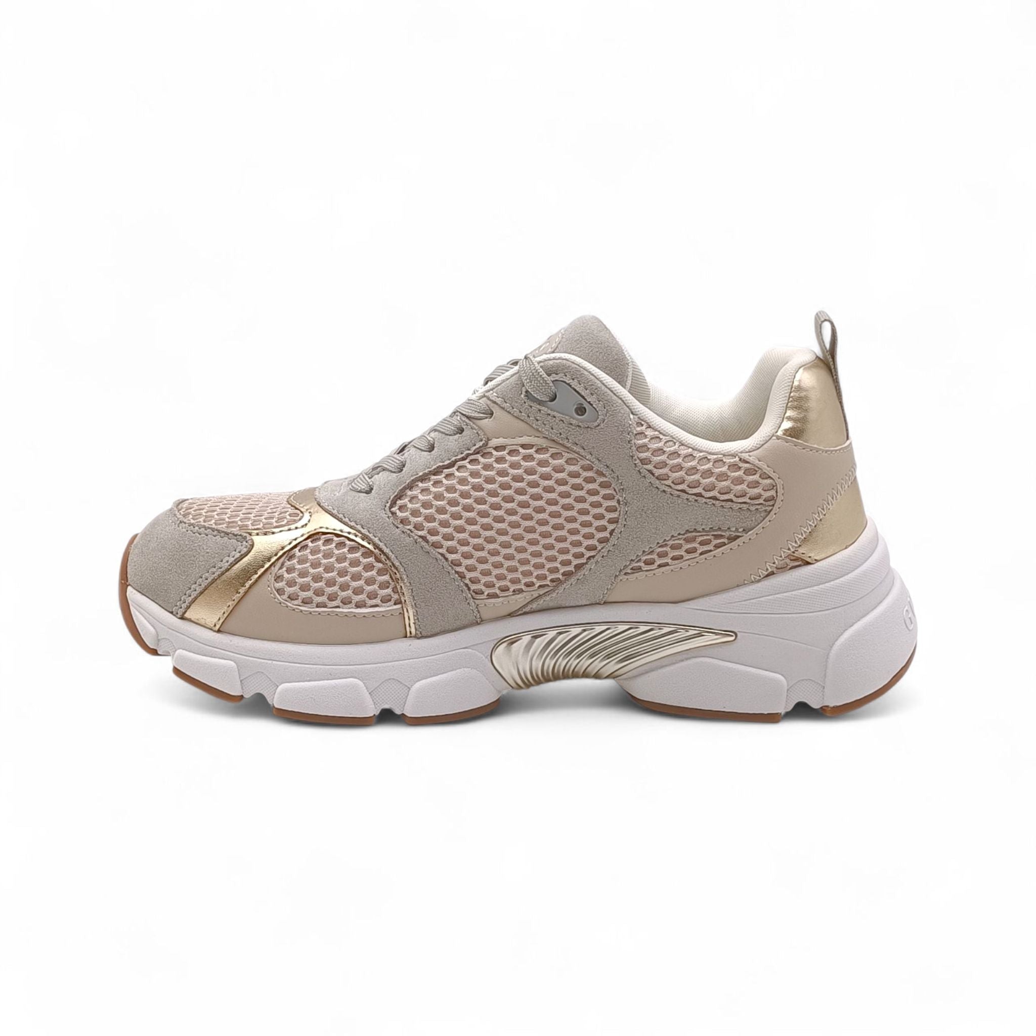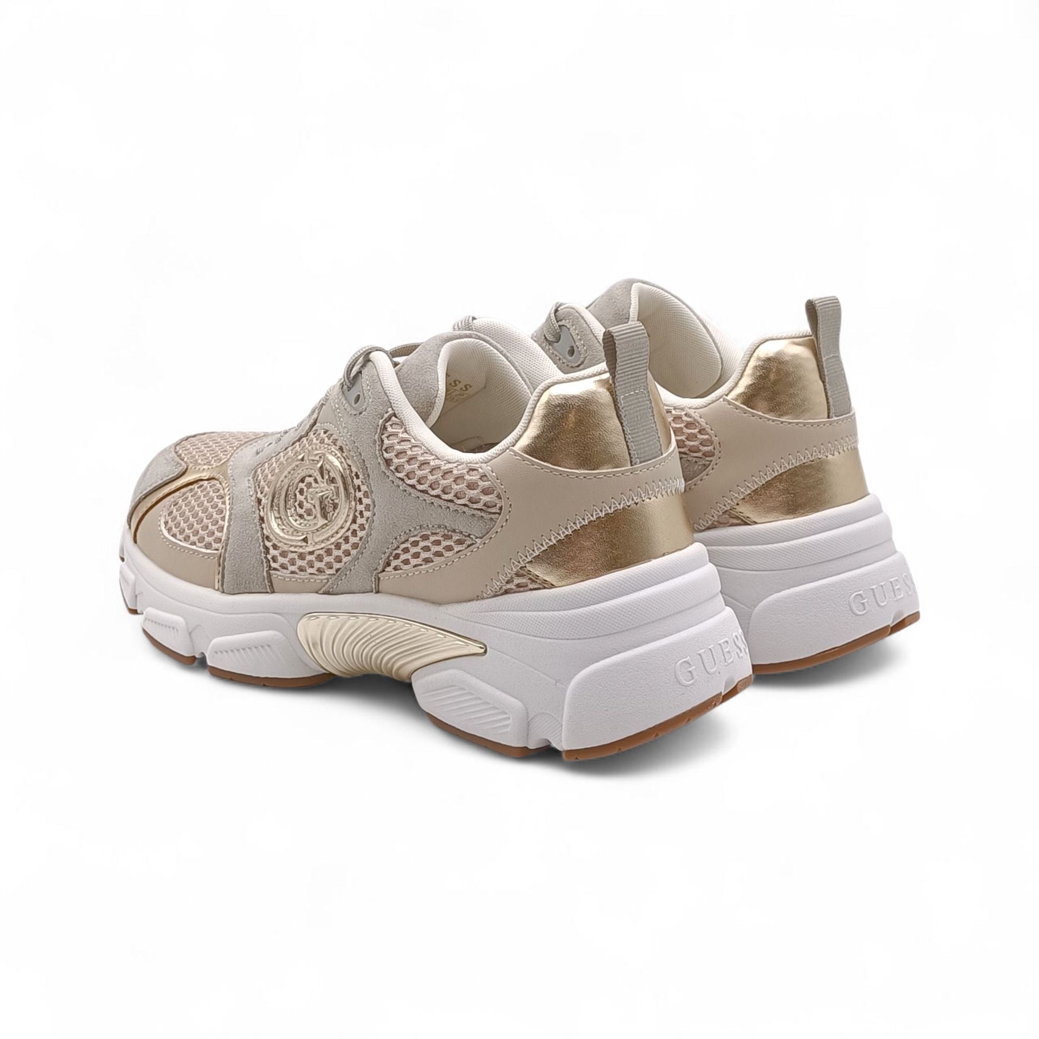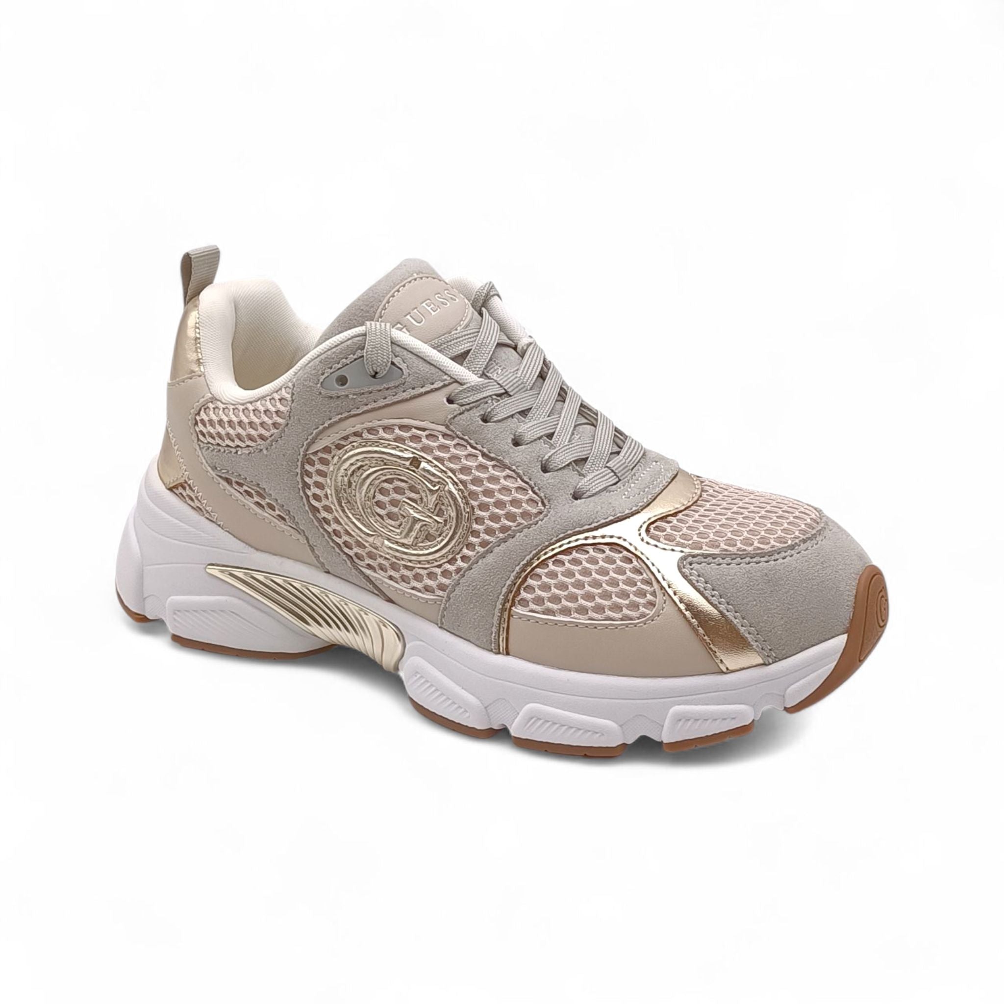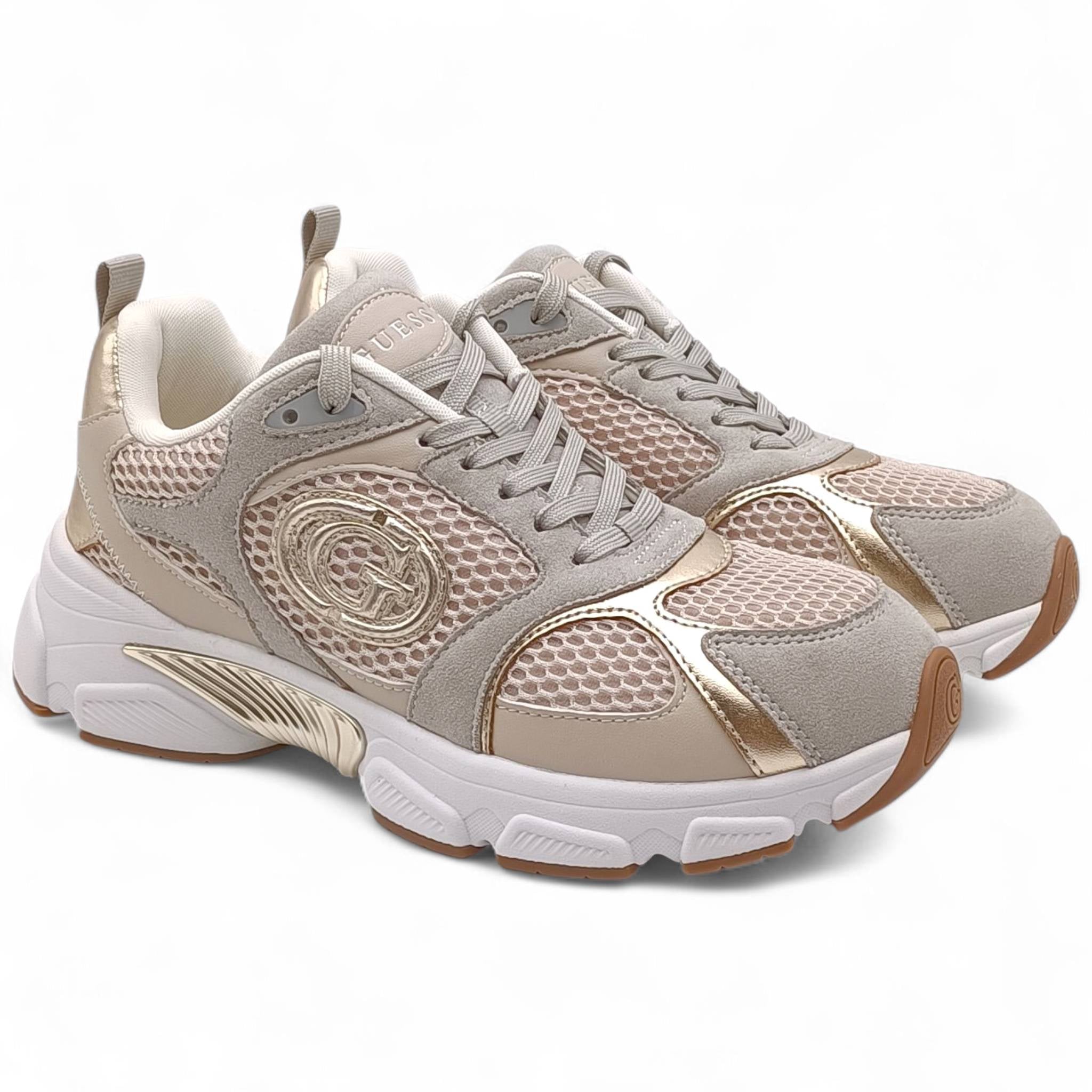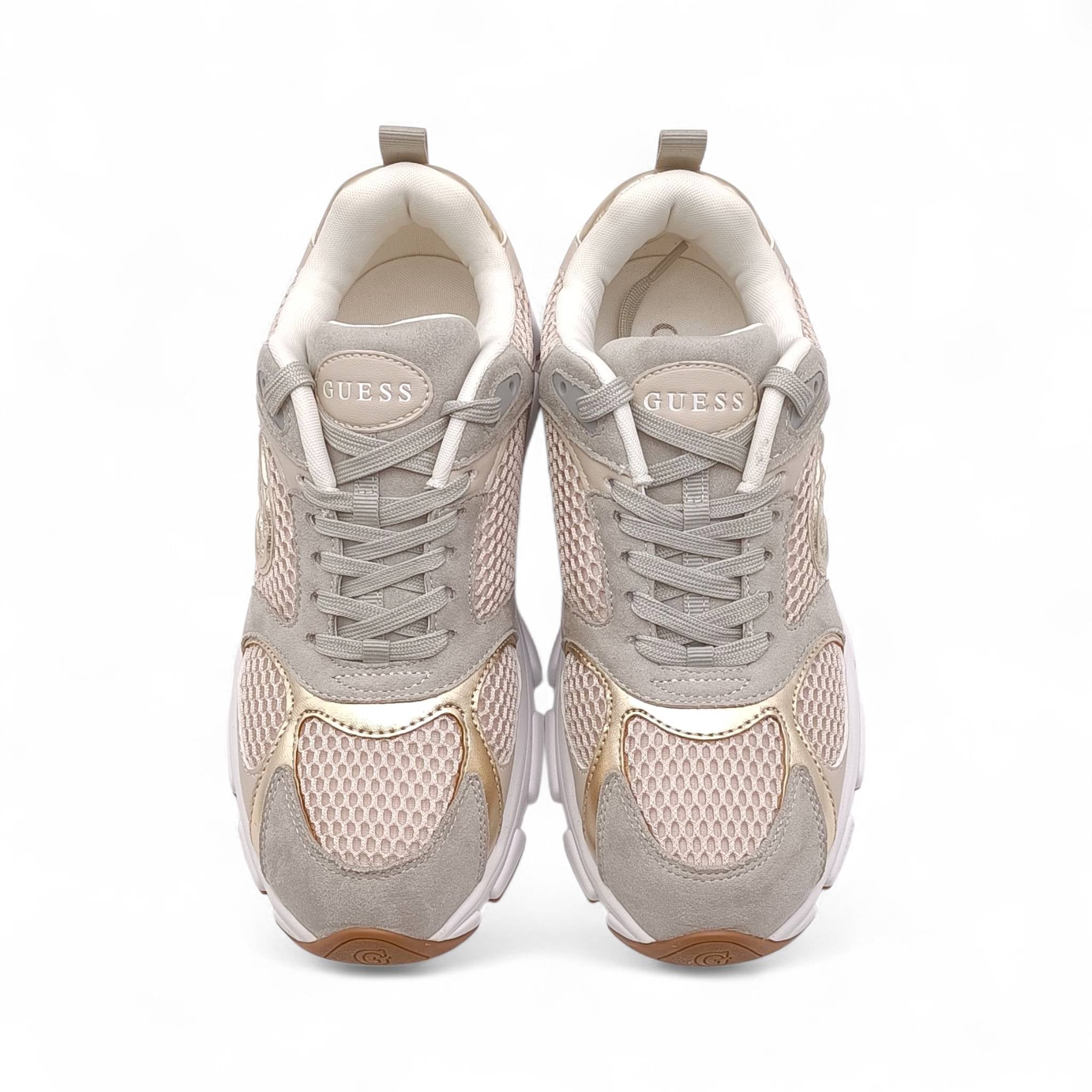 Sneaker donna misto ecopelle e tessuto a rete beige Guess FLFI3BESU12