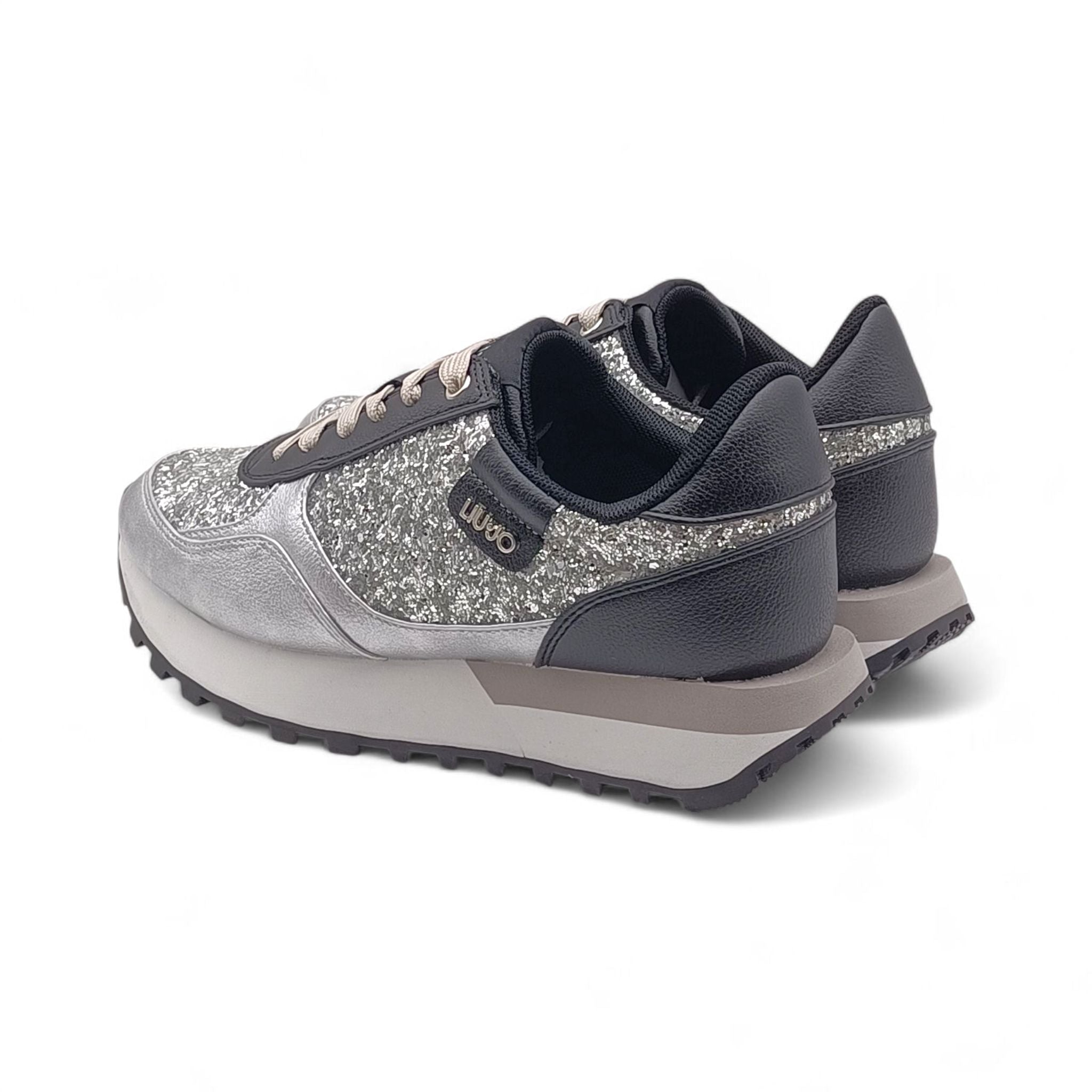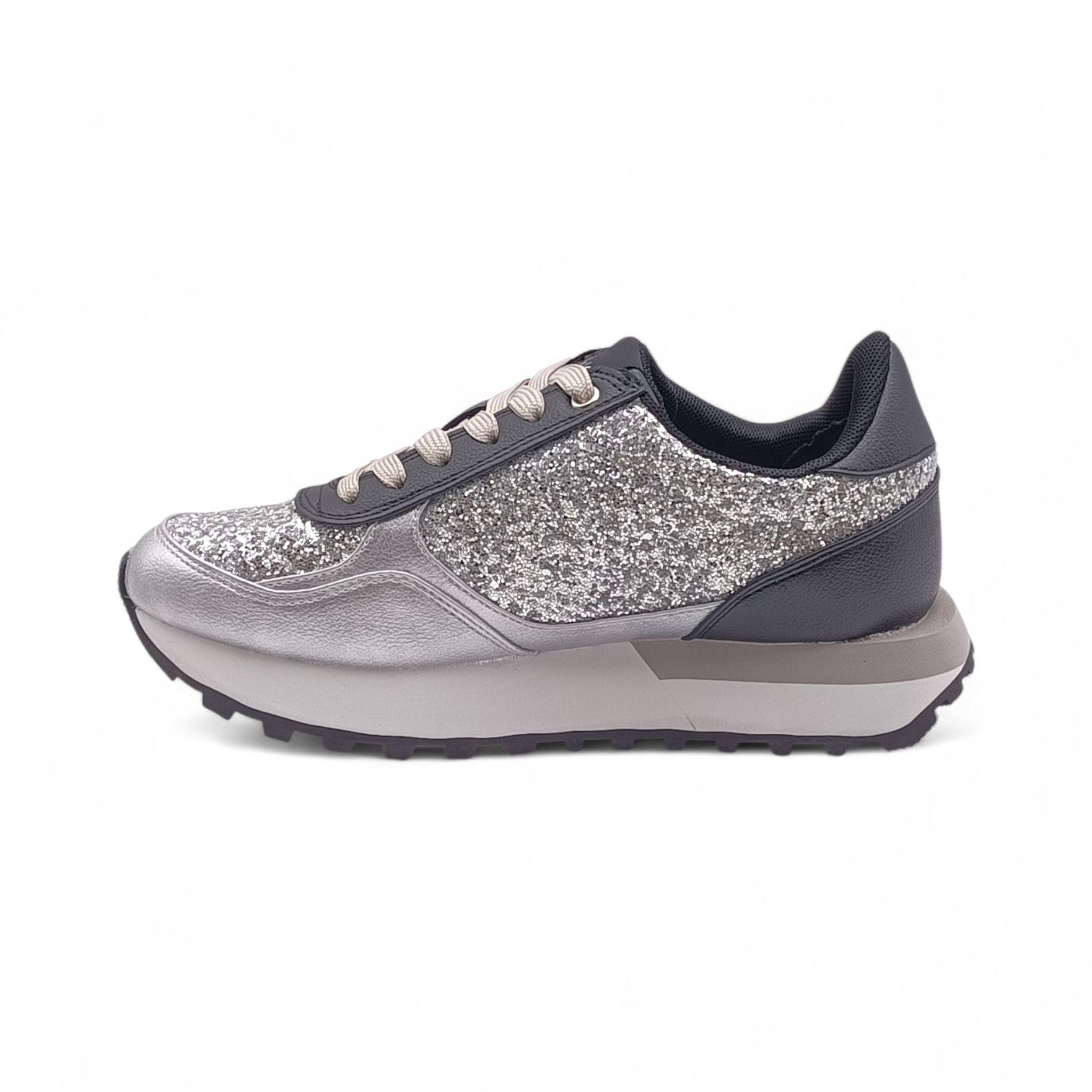 La tomaia è ricoperta di glitter argento, super luminosa!