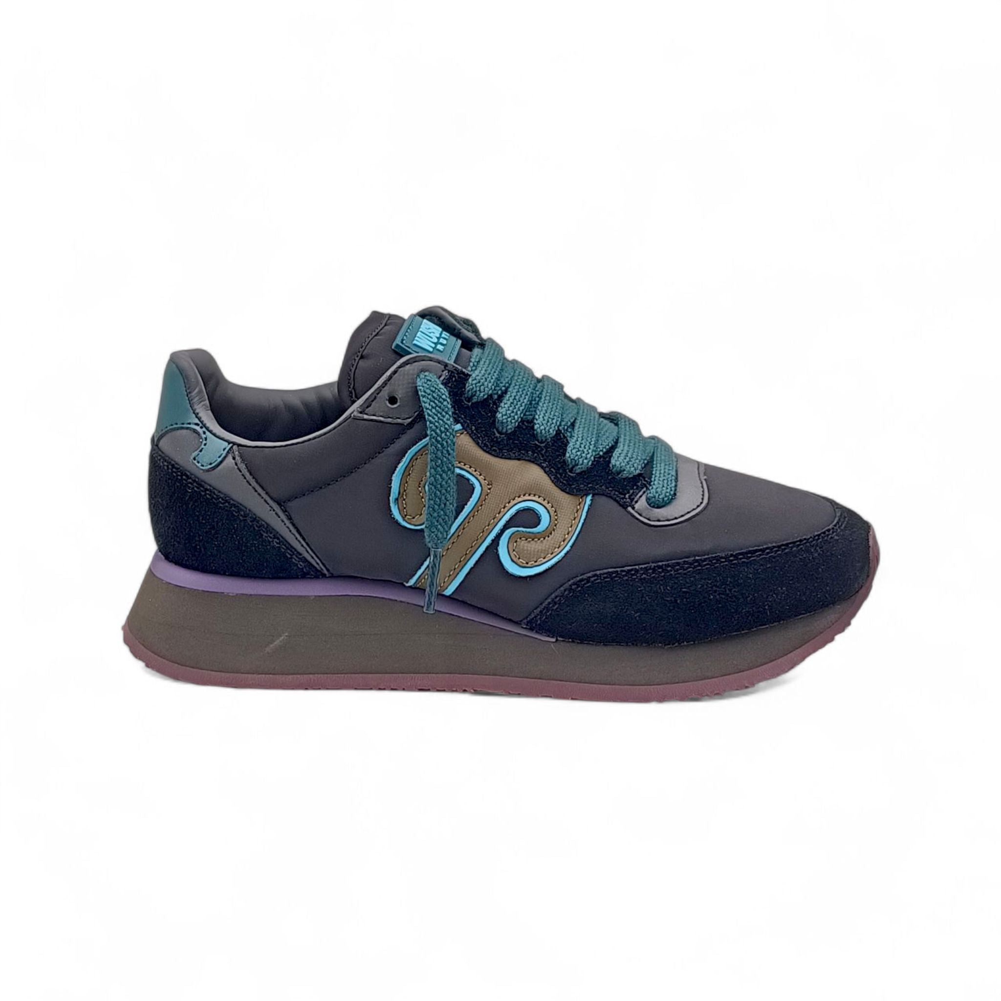 Tomaia in tessuto con inserti in camoscio e suola leggermente alta per una calzata e camminata comoda.