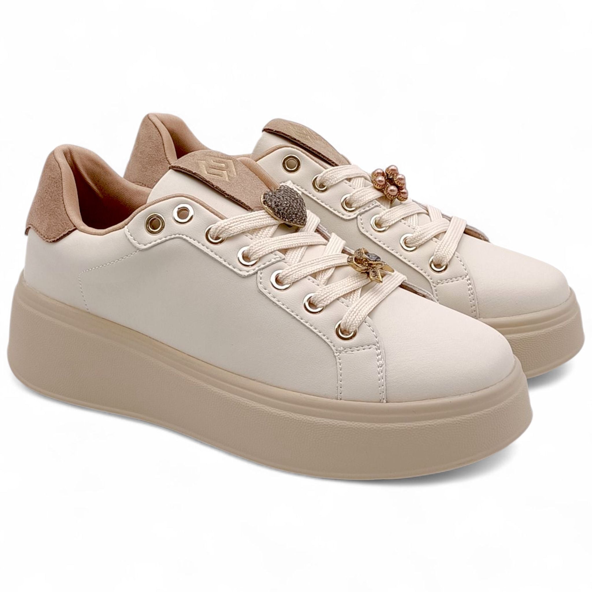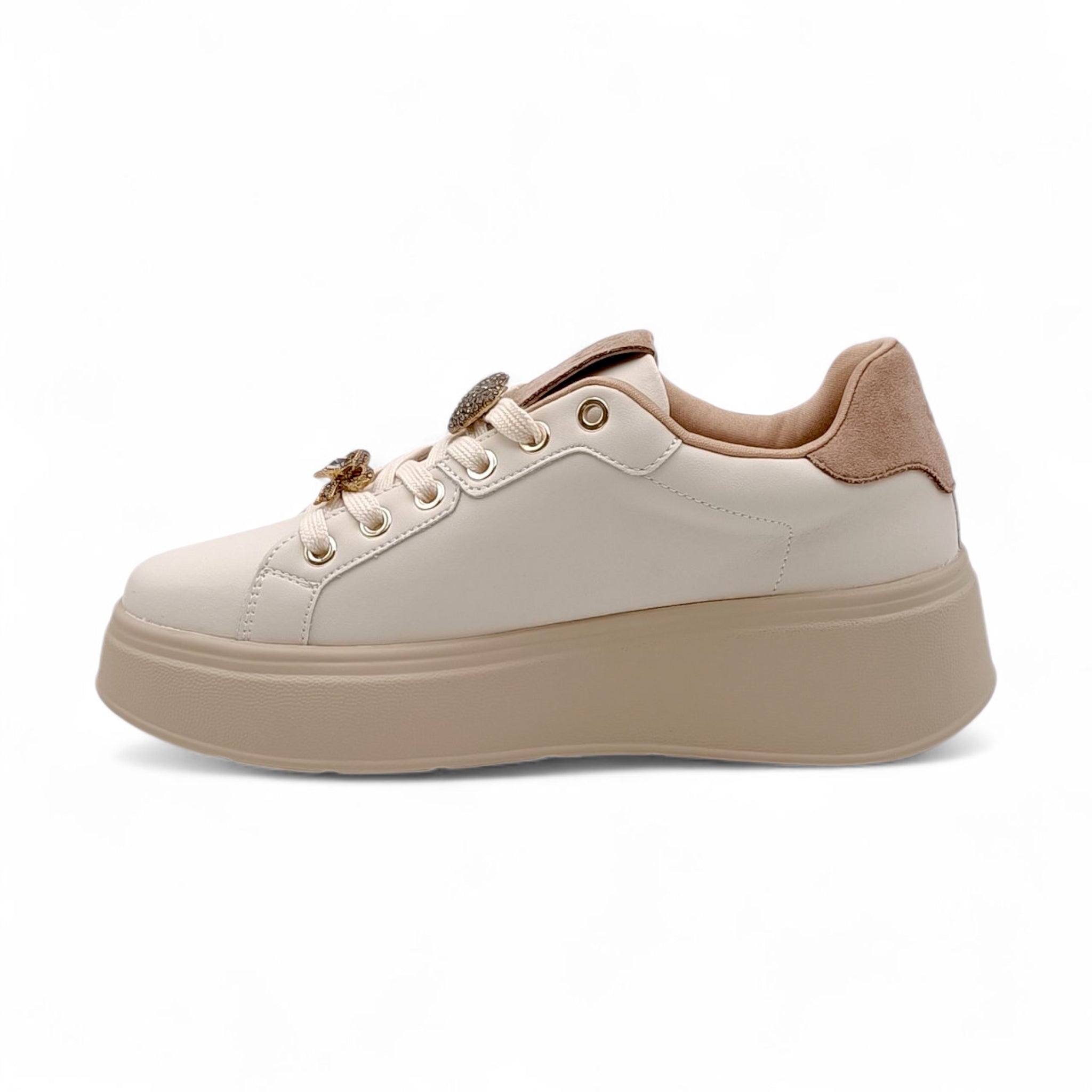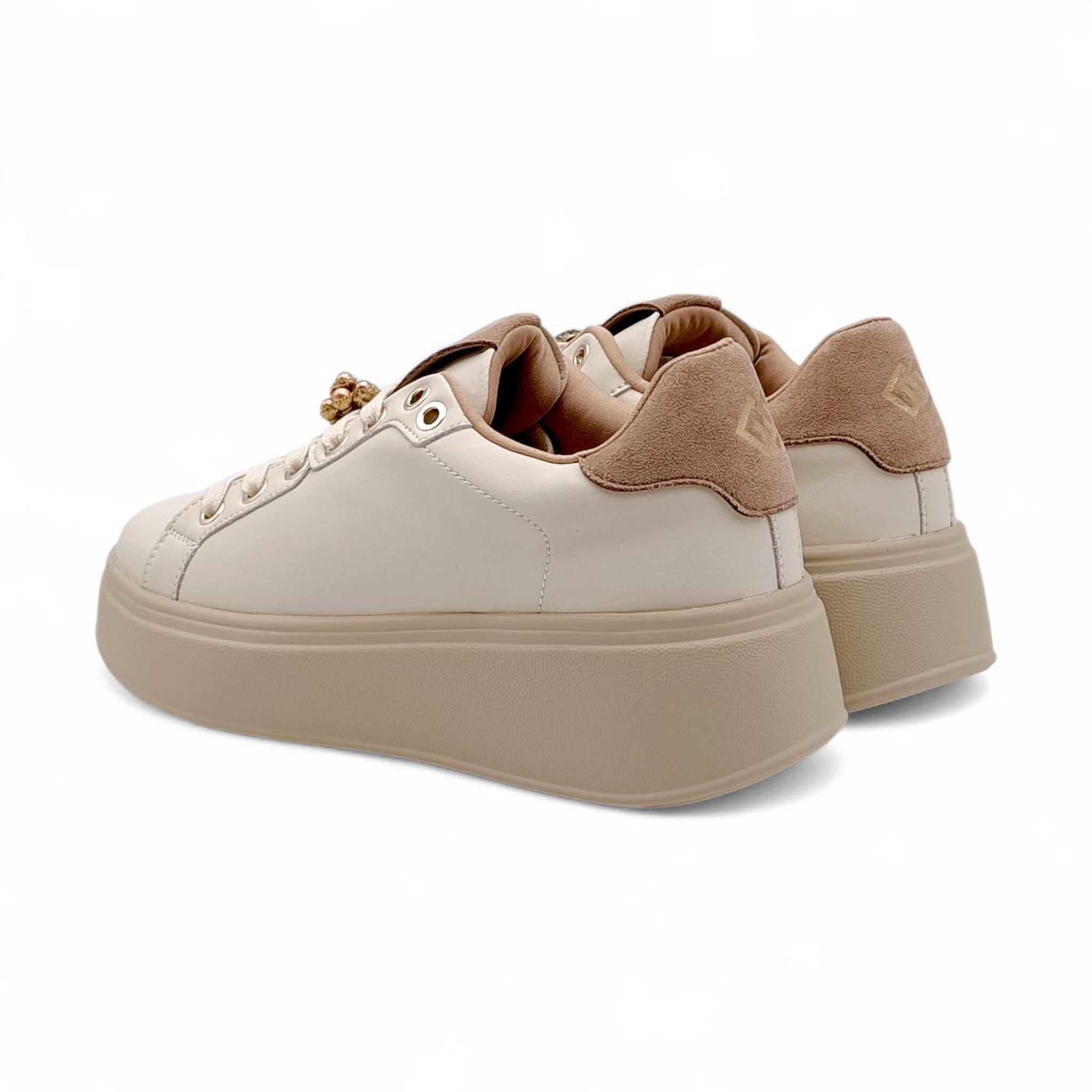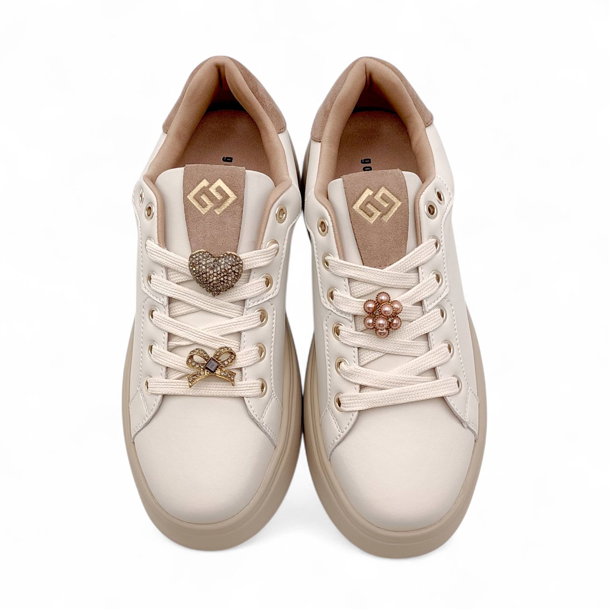 Sneakers Donna in Ecopelle beige con accessori Gold&Gold GB971
