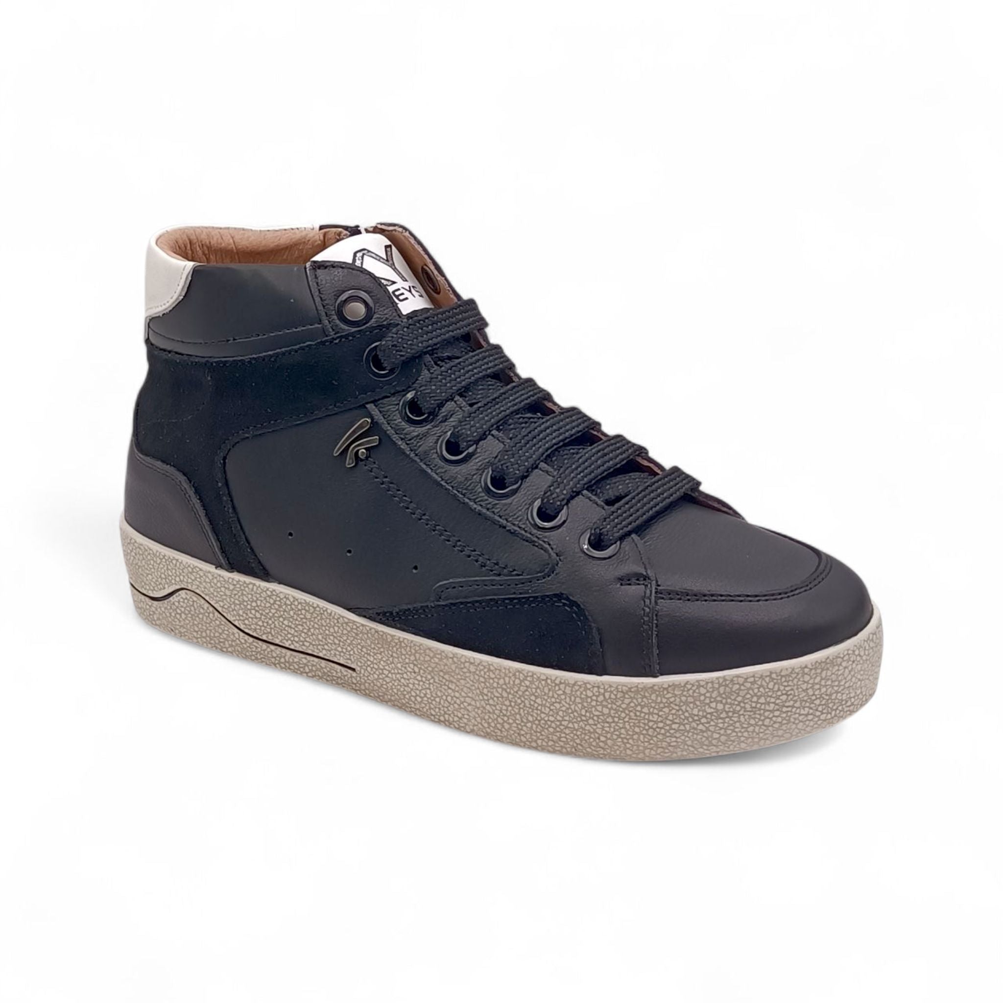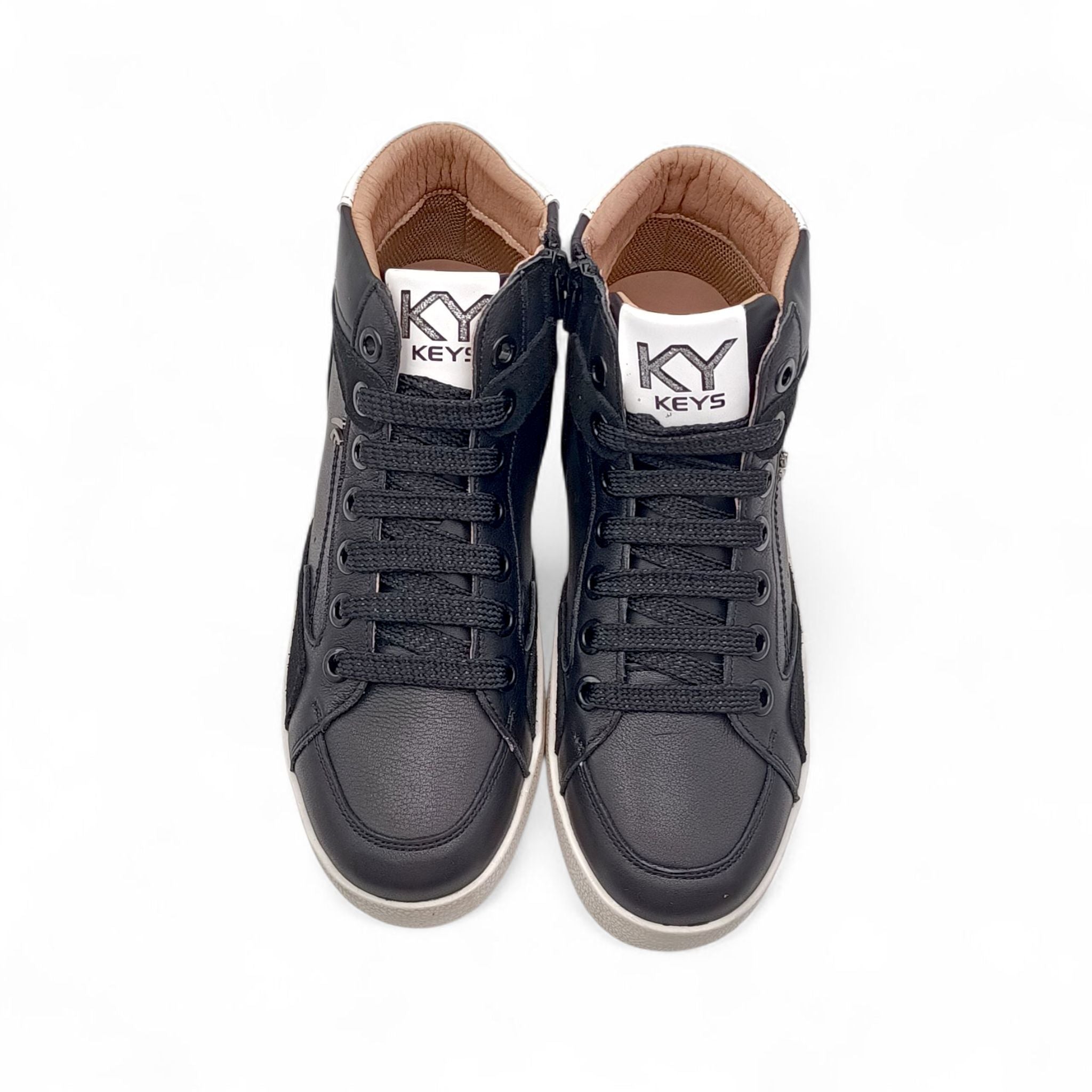 Sneakers alta Donna in pelle nera con cerniera latarle Keys K-11302