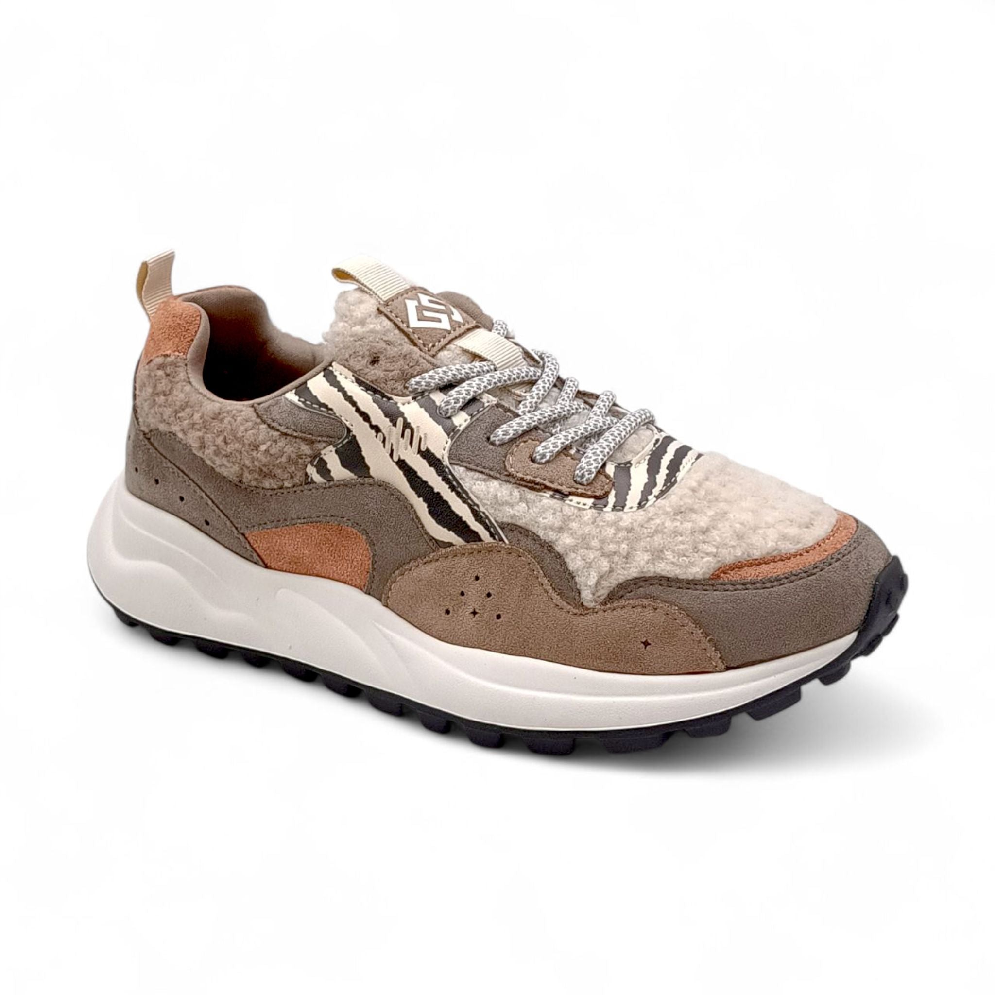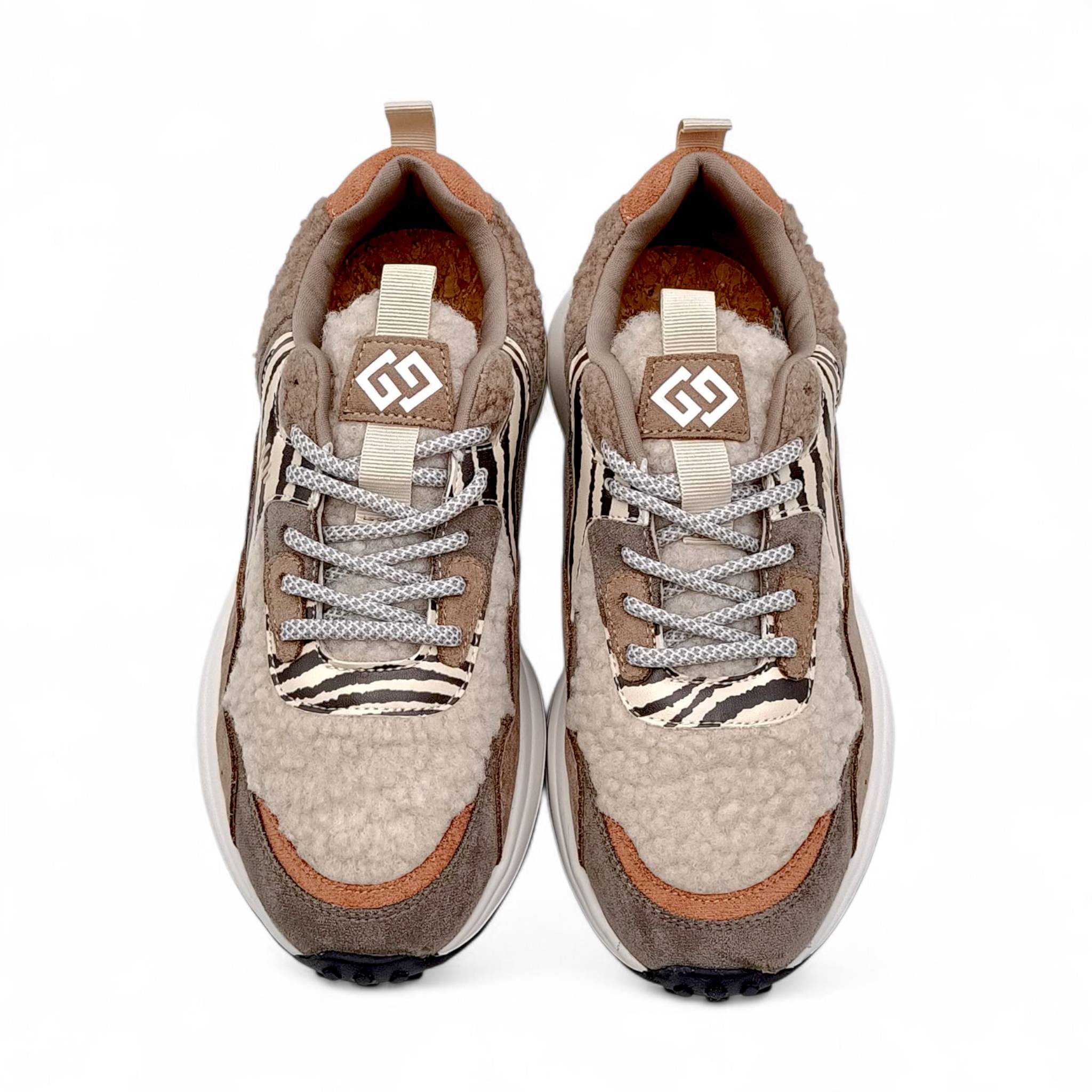 Sneakers Donna in tessuto khaki effetto teddy Gold&Gold Gb1000