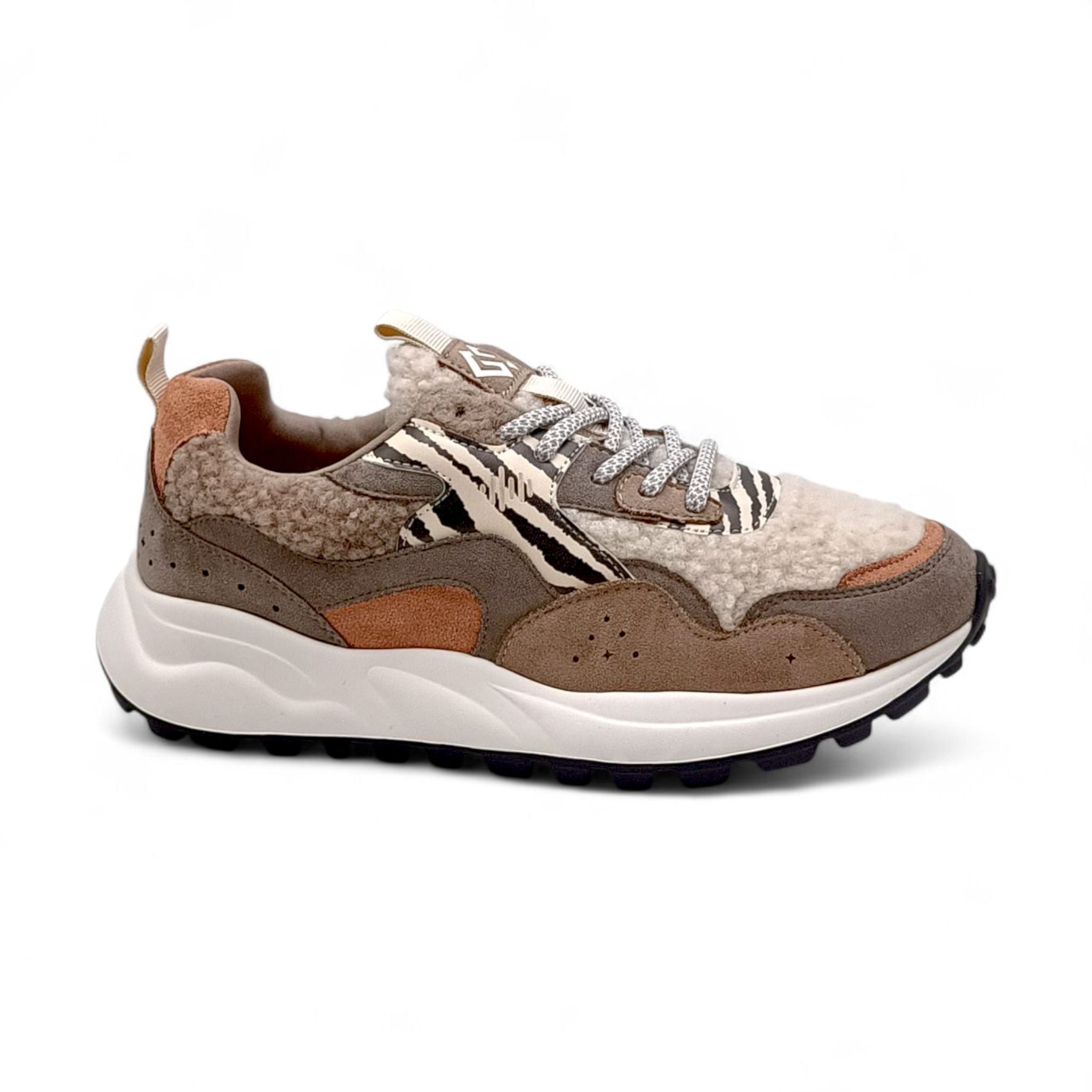 Leggerezza, design ricco con inserti e tessuto teddy beige.