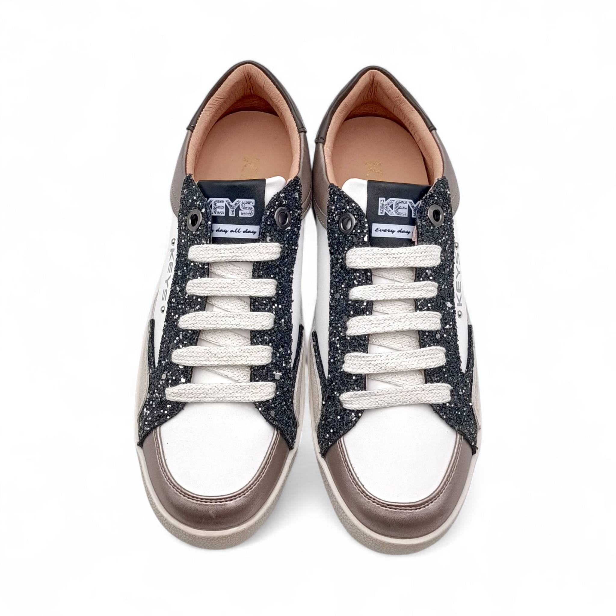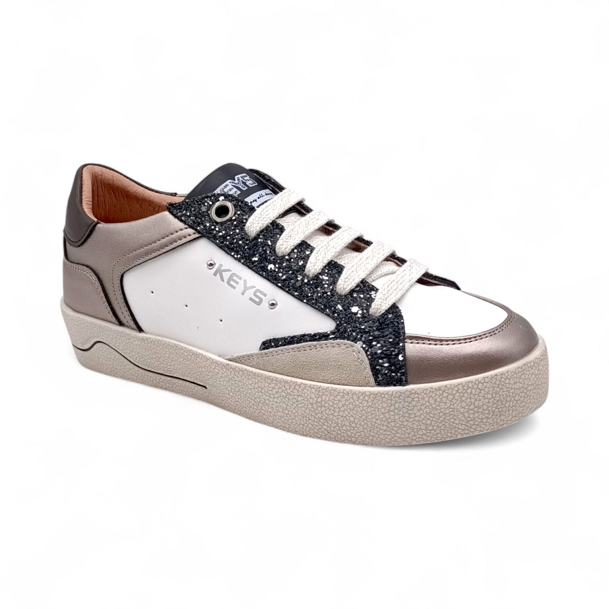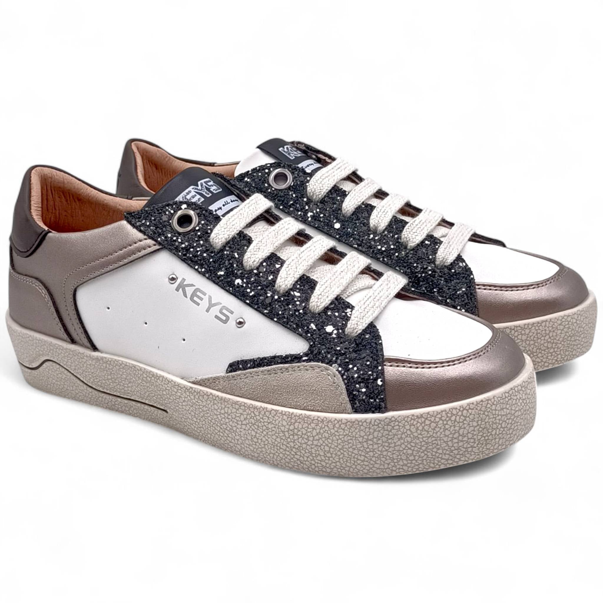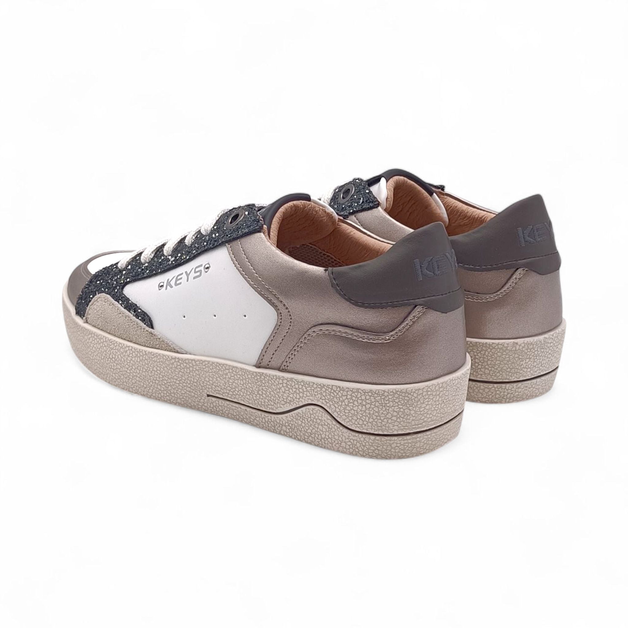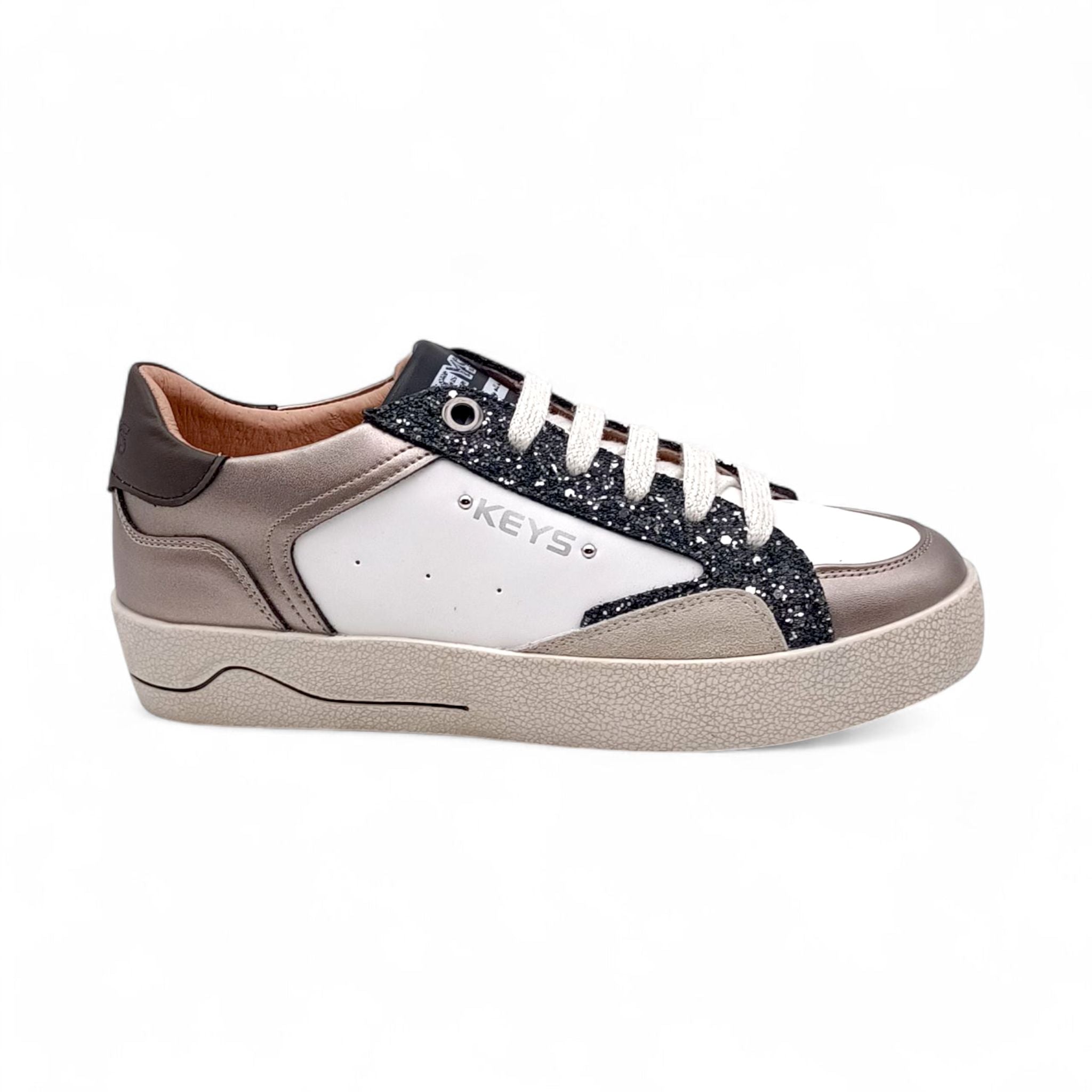 Sneakers Donna in pelle bianca e dettagli glitter Keys K11306