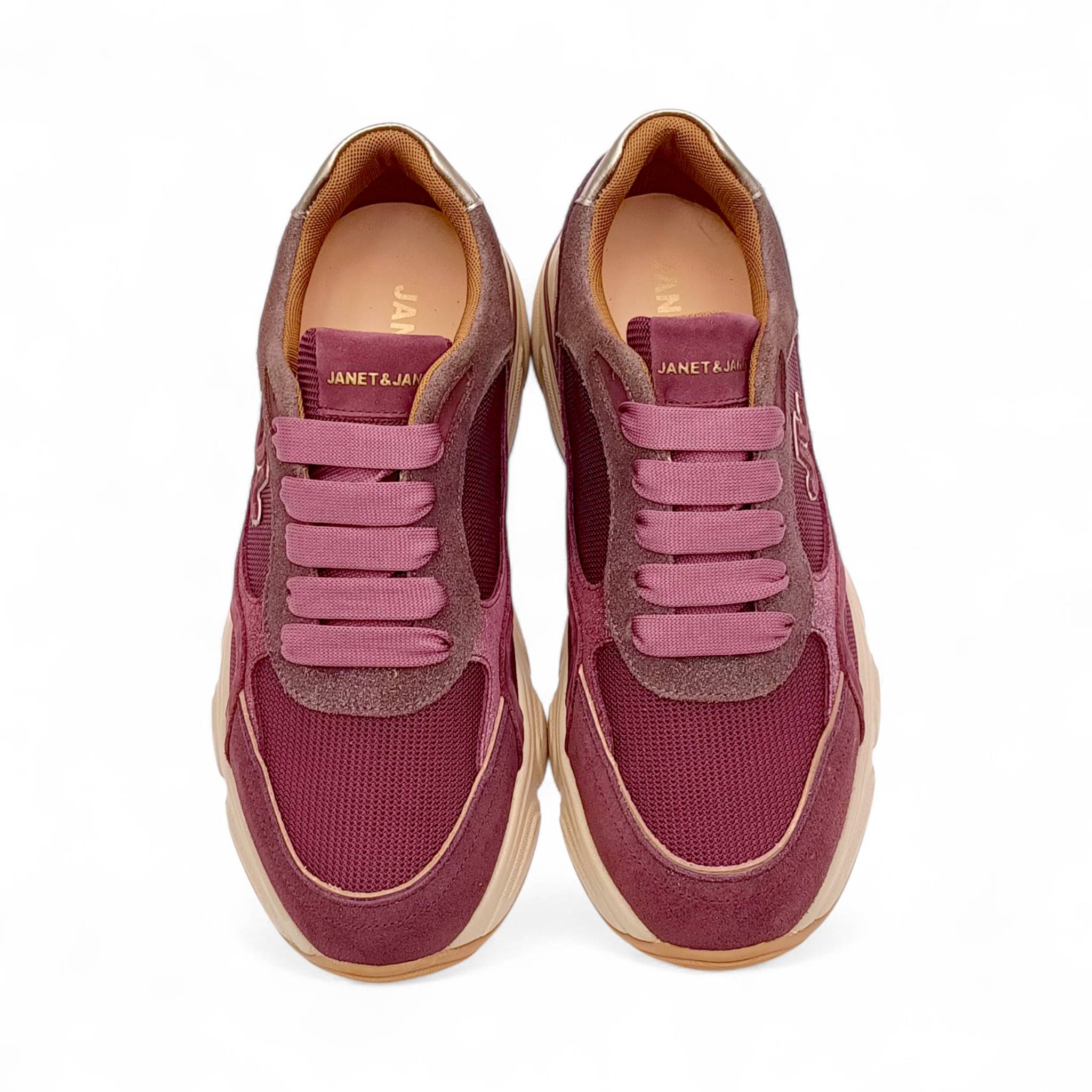 Sneakers donna misto pelle/tessuto bordeaux Janet&Janet YPER J441-485