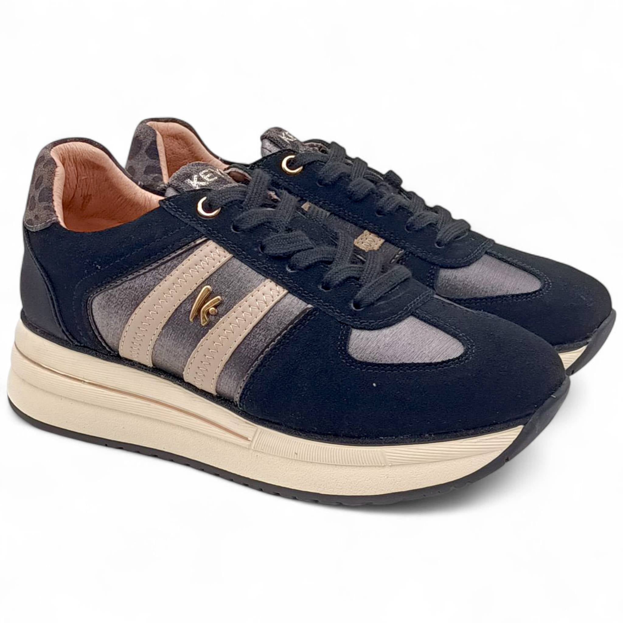 Sneakers Donna in camoscio nero con Platform Keys K-11291