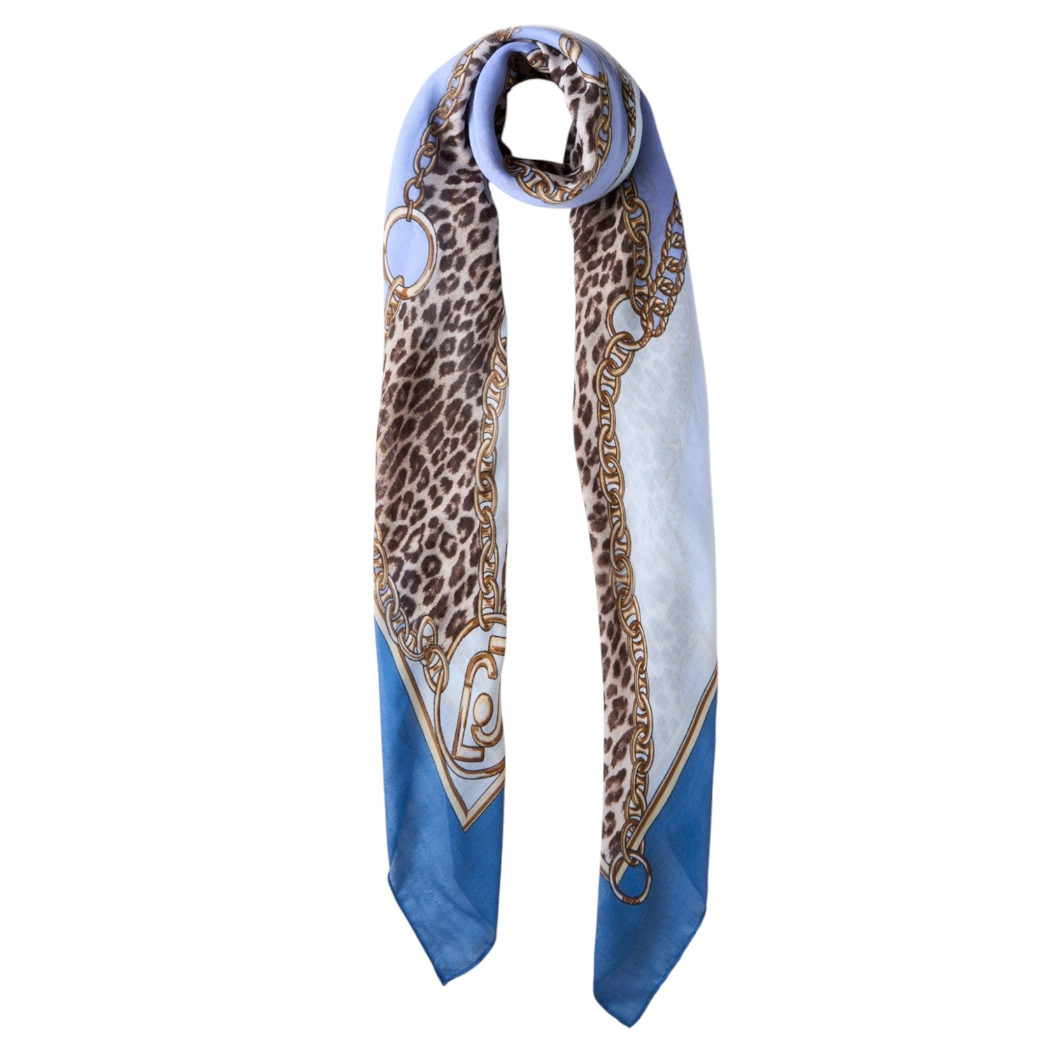 Foulard donna liu jo azzurro chiaro con stampa animalier e catena 2F5074T0300