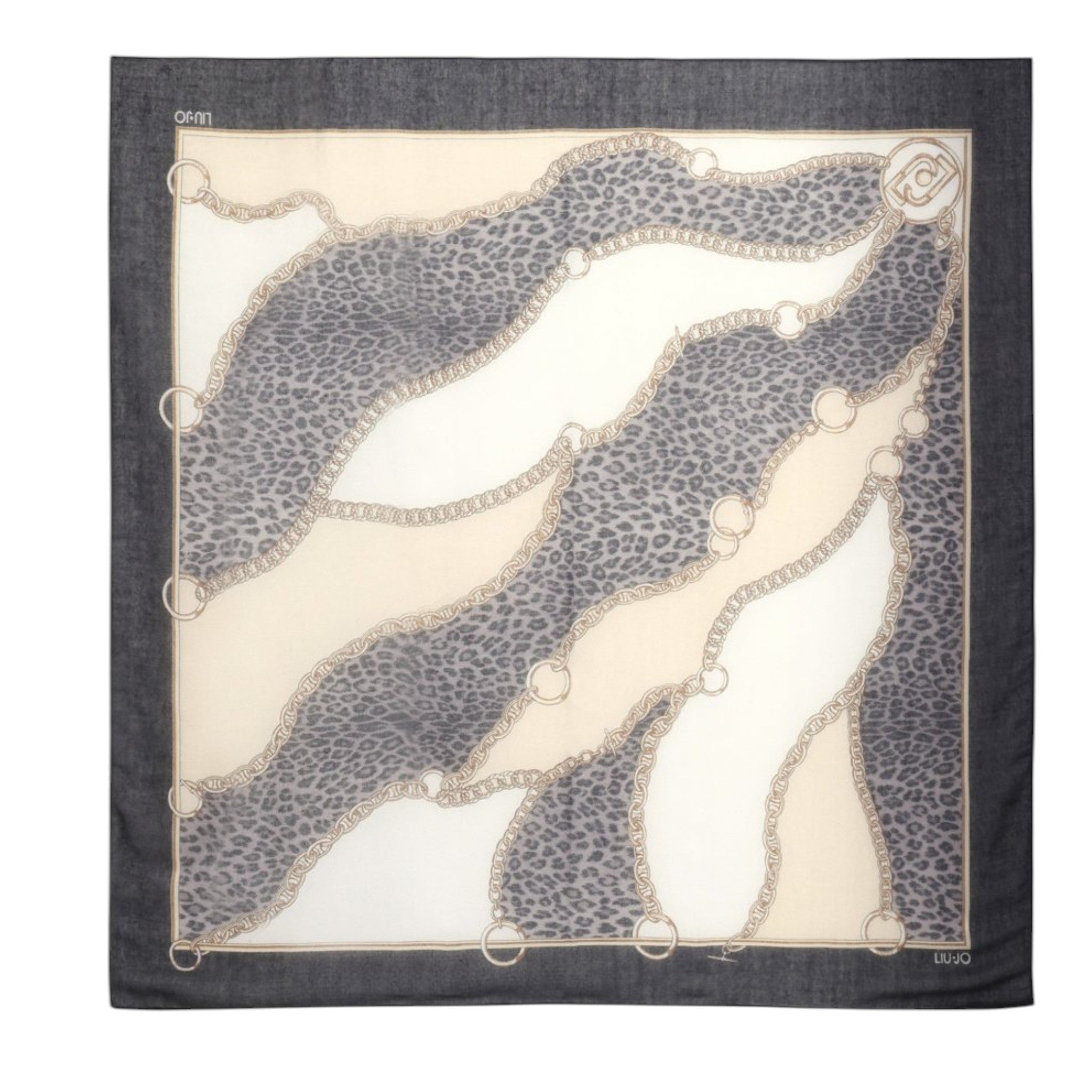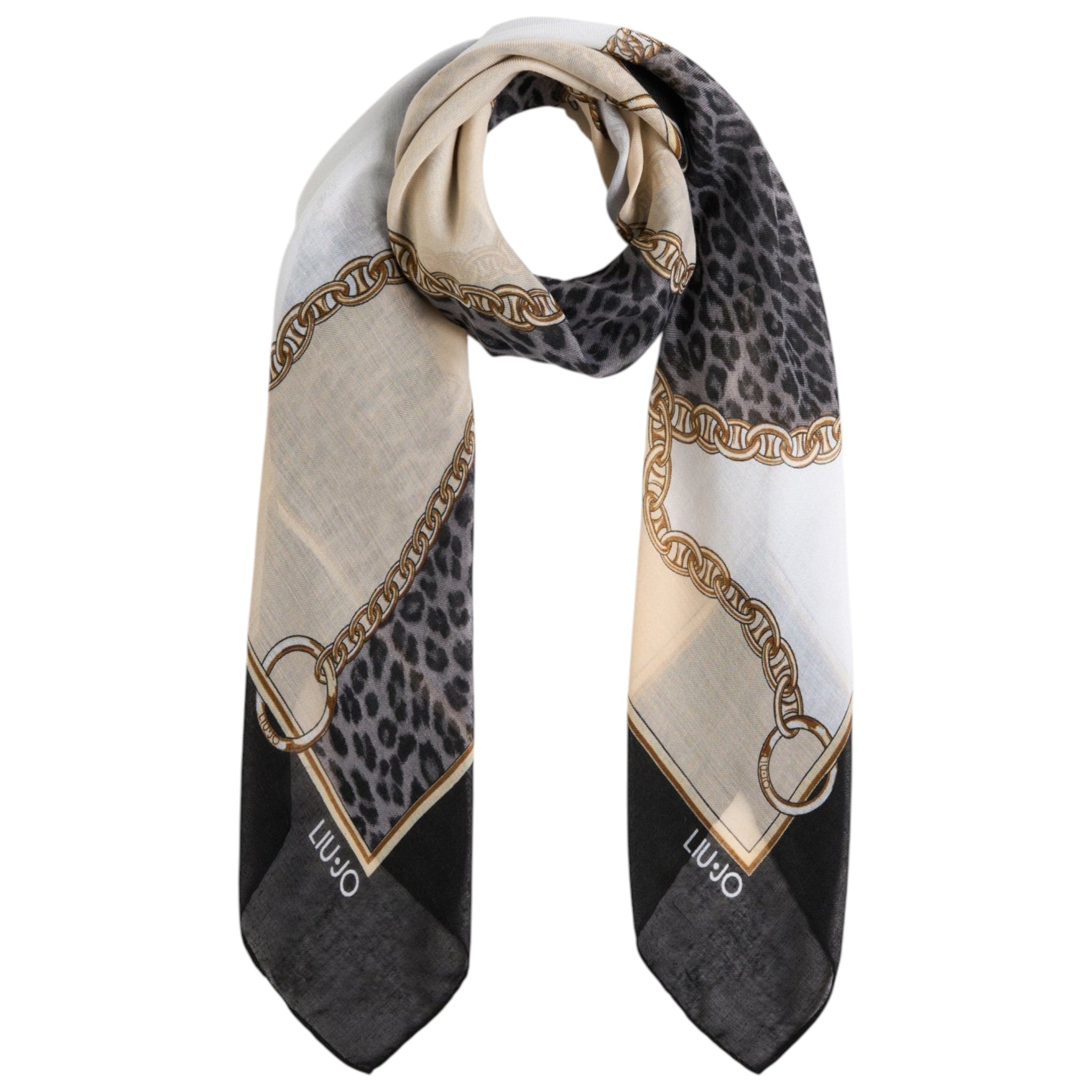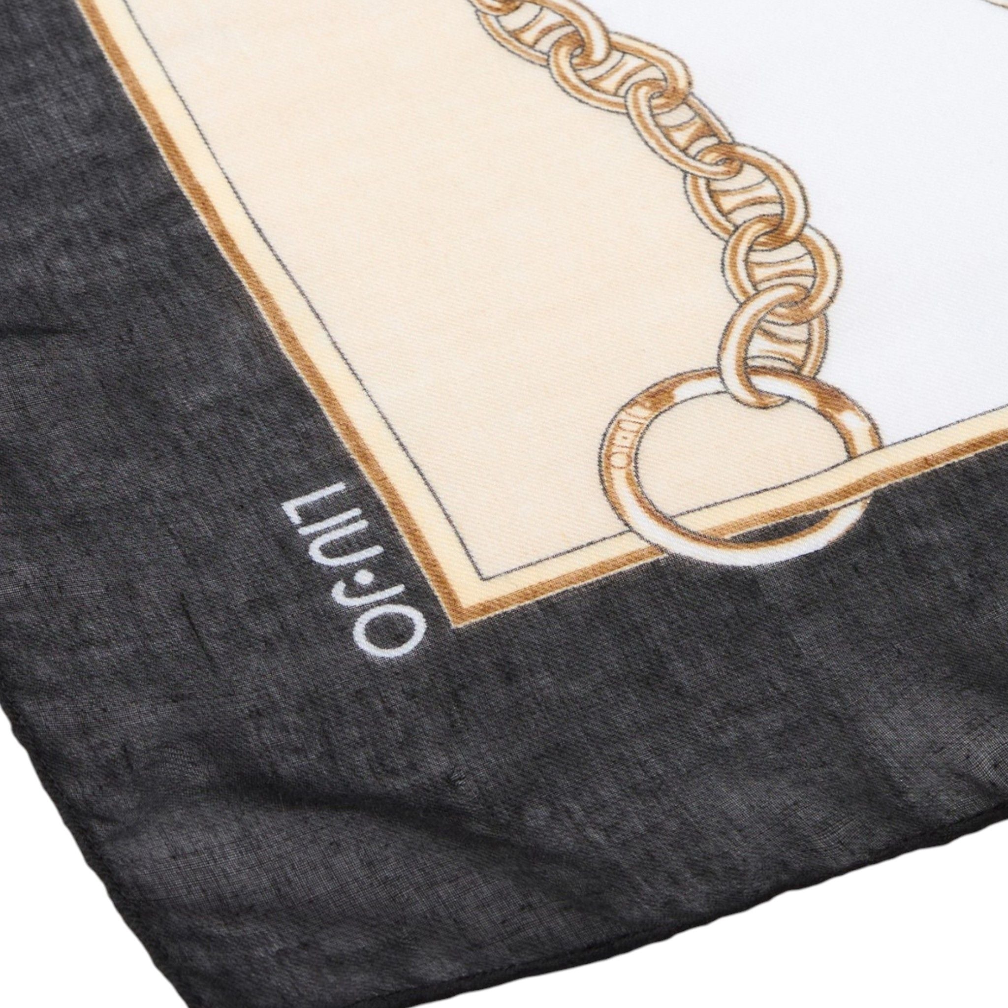 Foulard donna liu jo nero/beige con dettagli animalier e catena 2F5074T0300