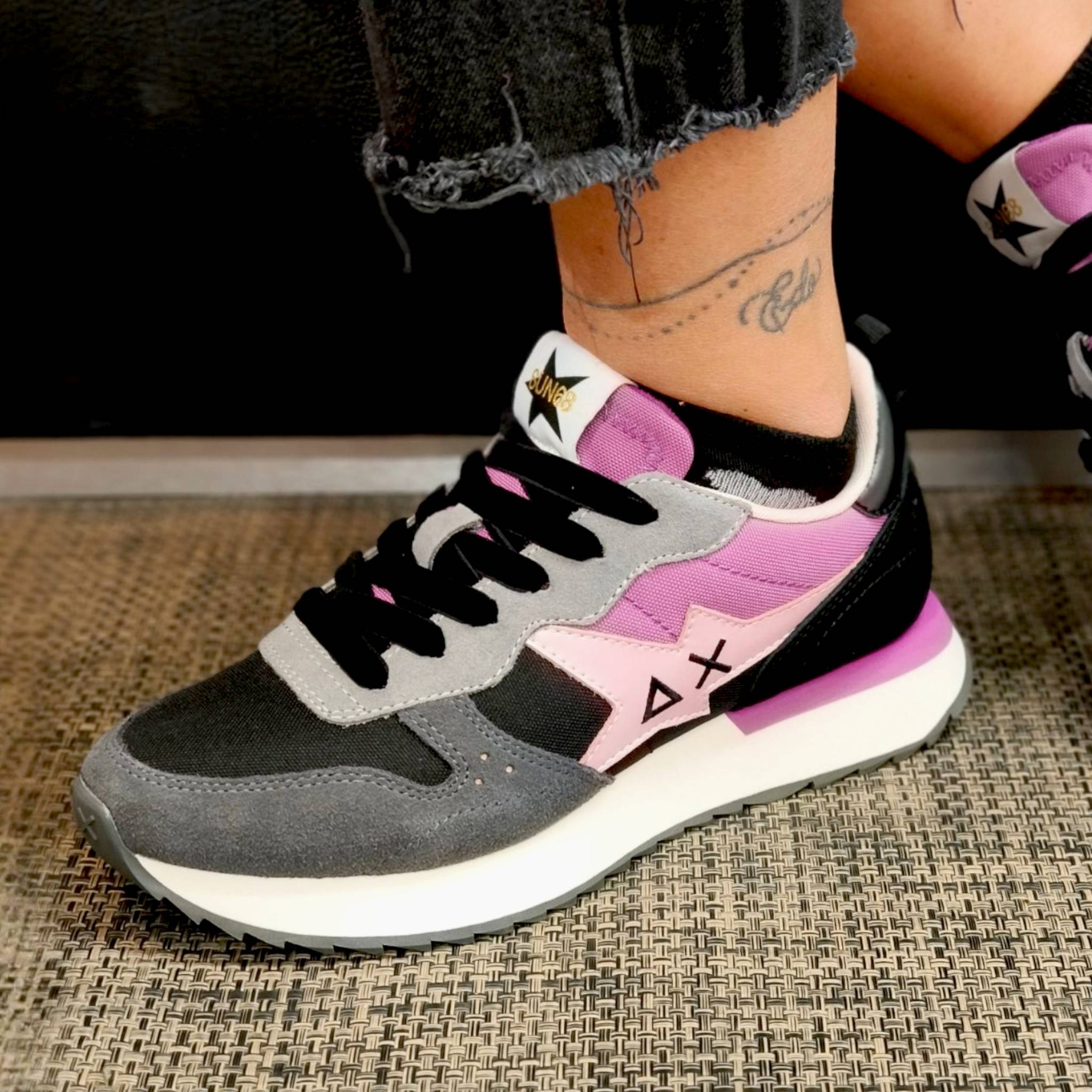 Sneaker donna in tessuto nero e rosa sun68 Z45216 stargirl multicolor
