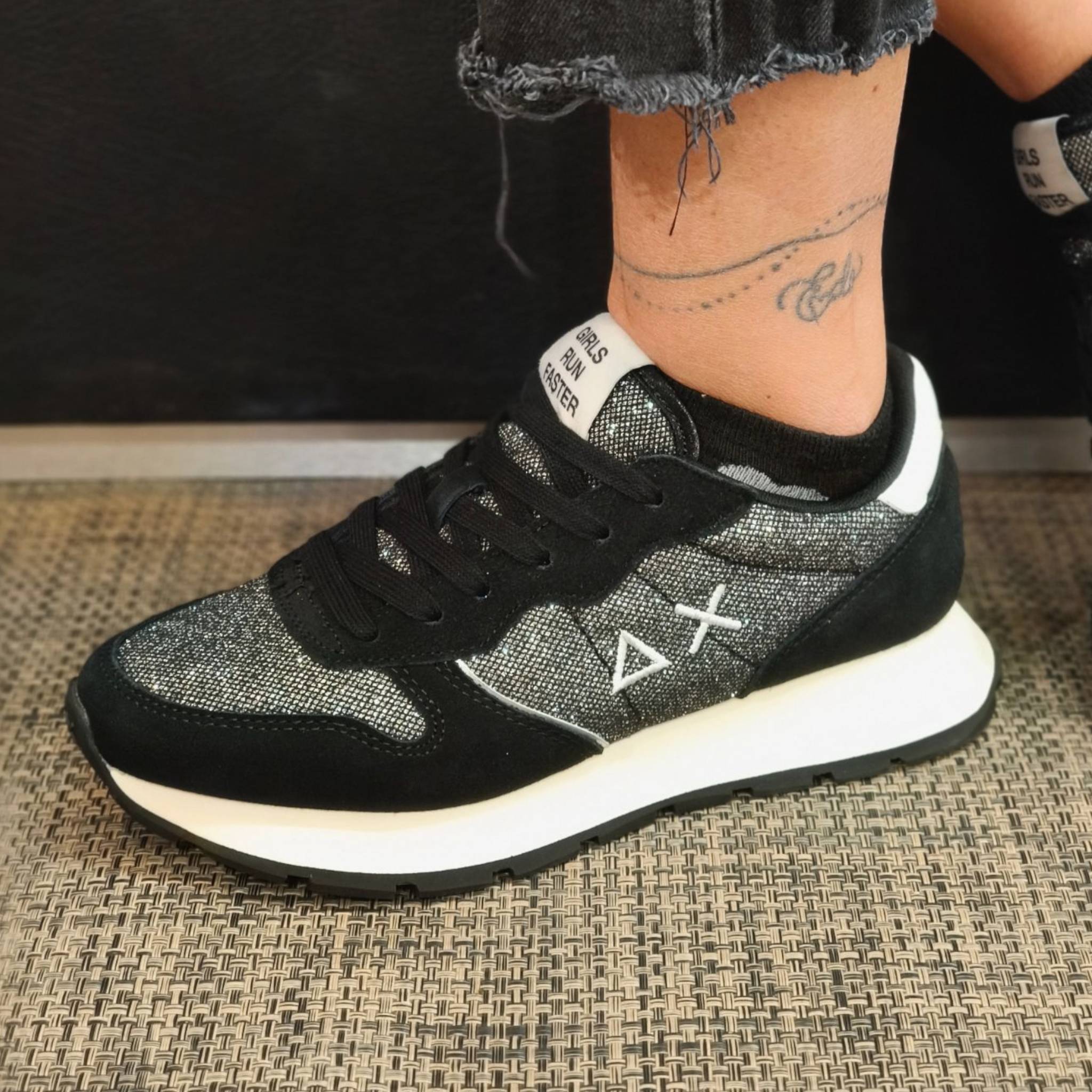 Sneaker donna in tessuto nero glitterato sun68 Z45204 ally glitter textile