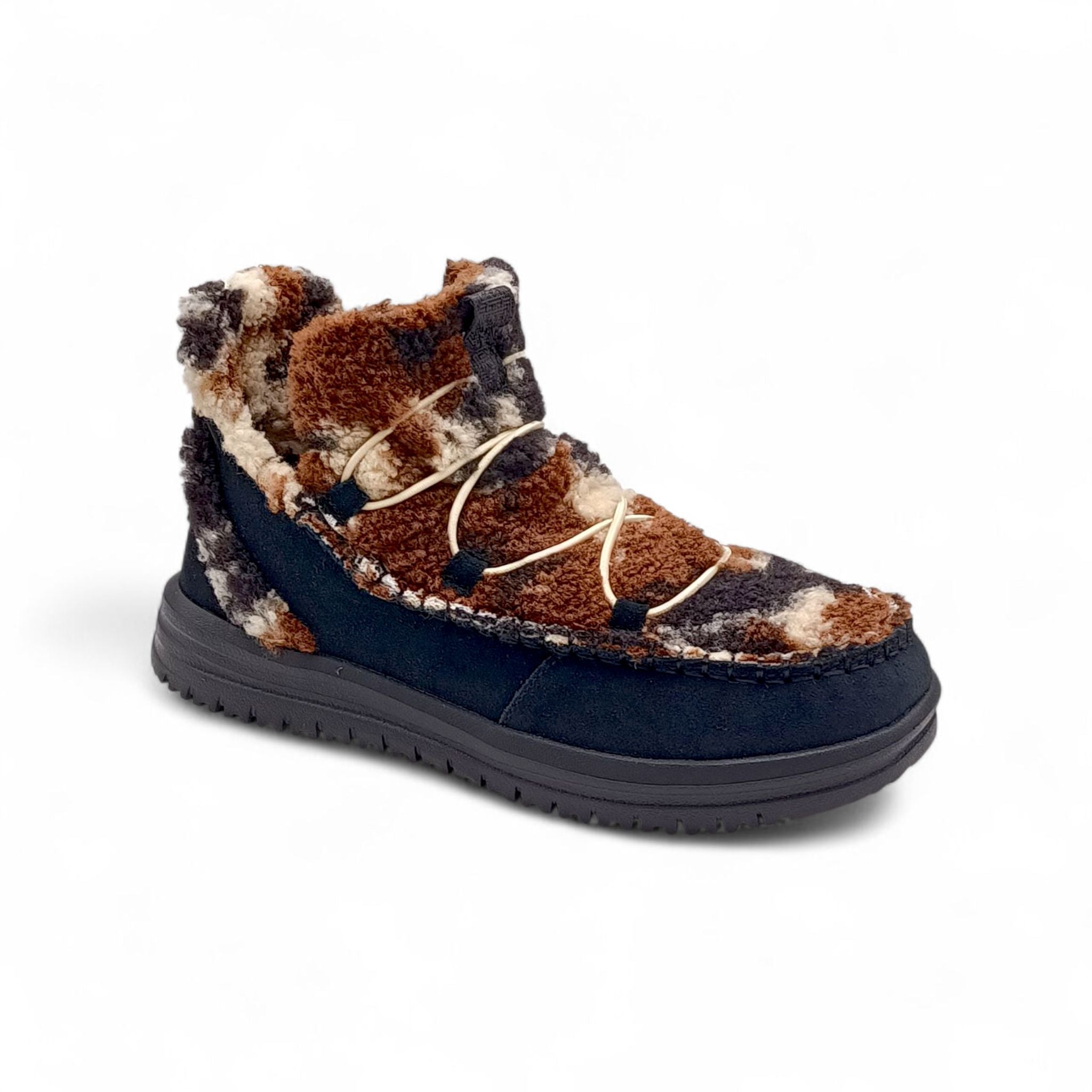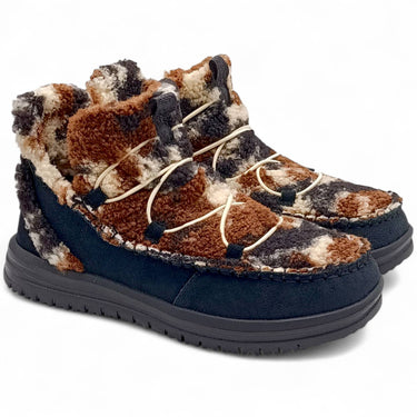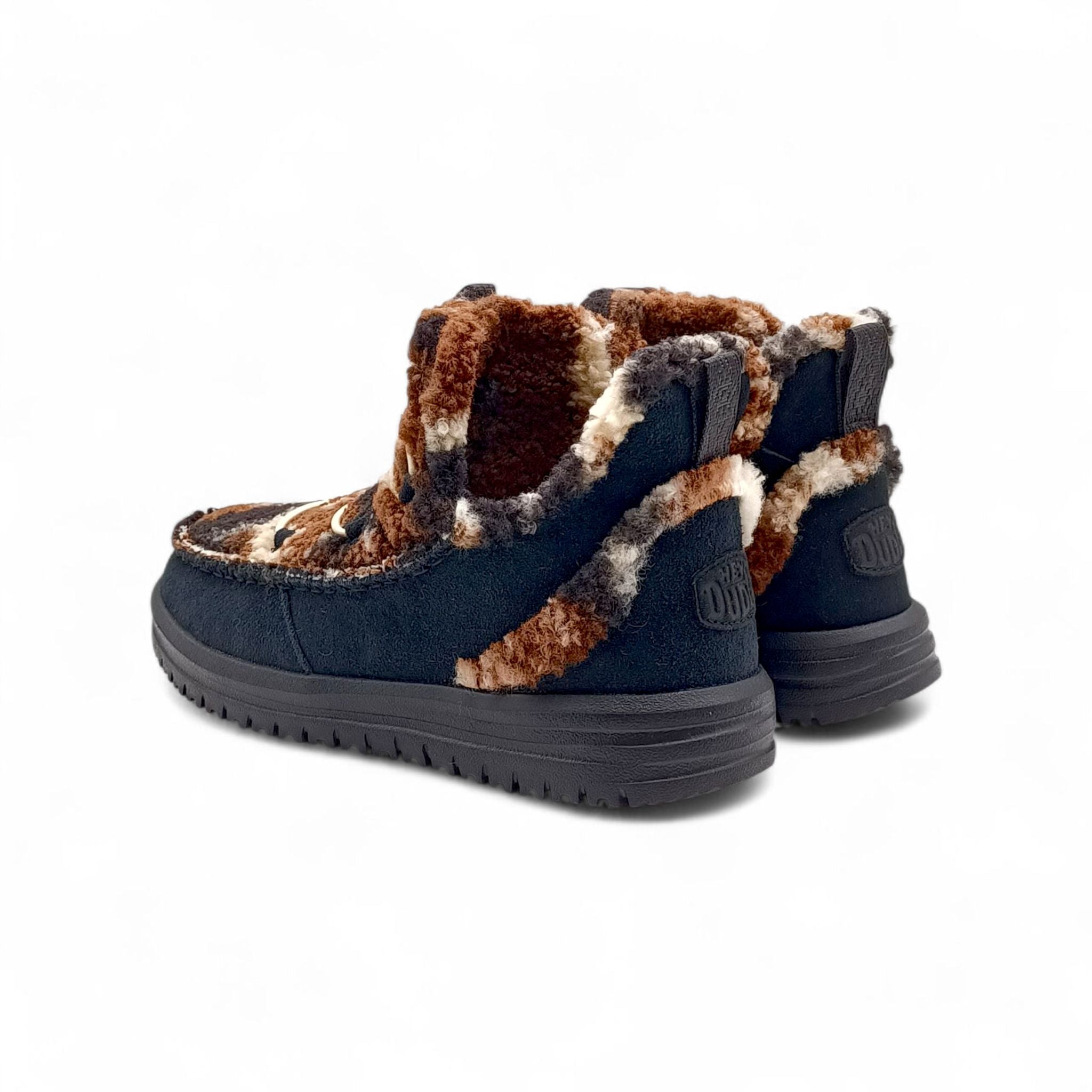 Polacchino donna HeyDude in morbido tessuto teddy nero/marrone 42031/0PE