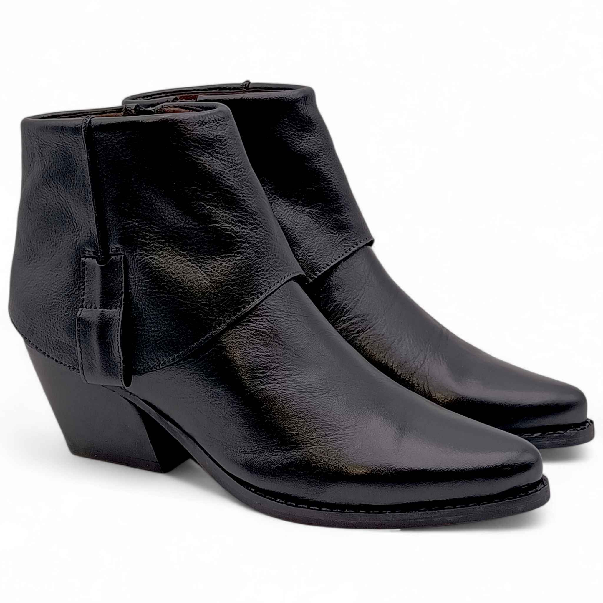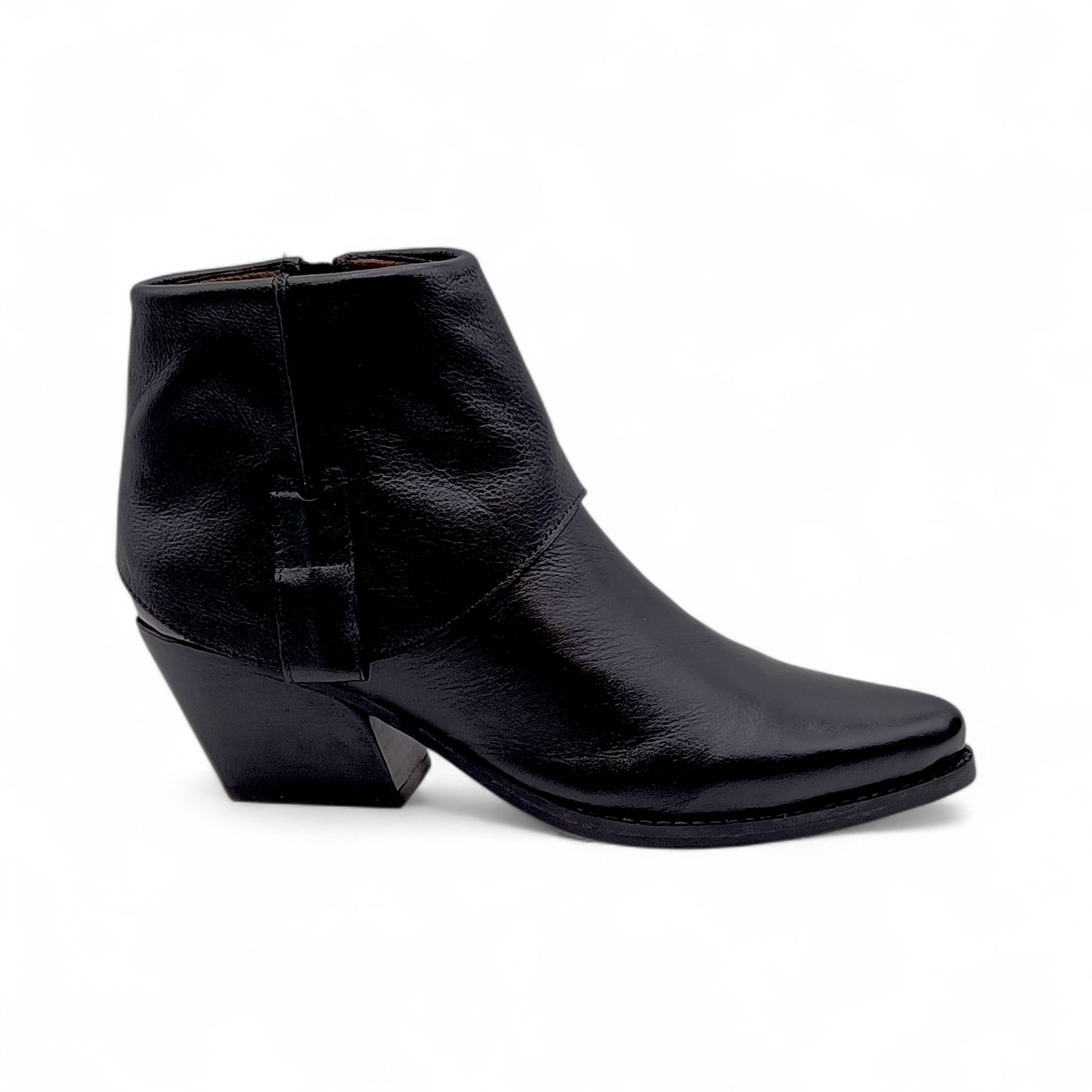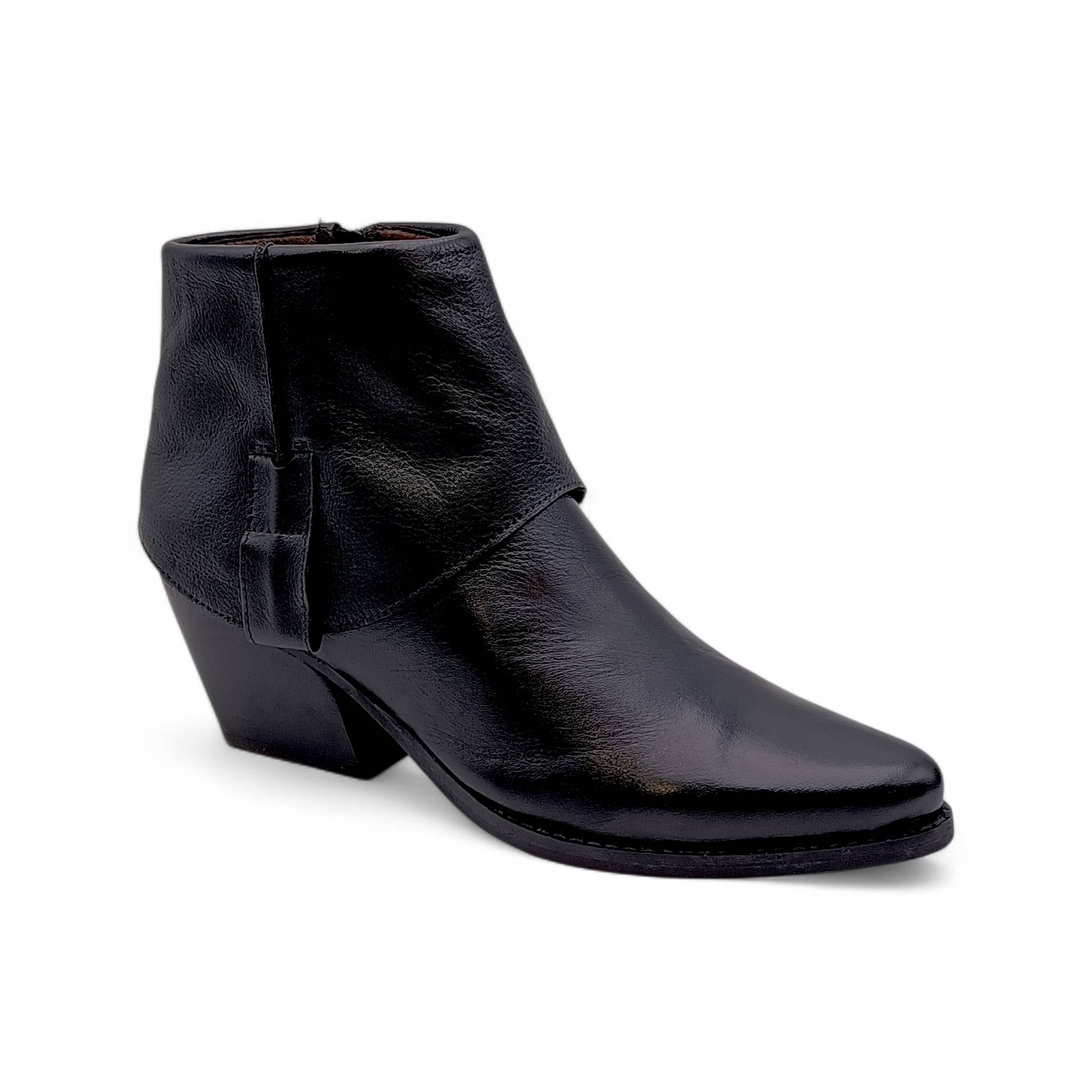 Stivaletto texano in pelle nera con ghetta.