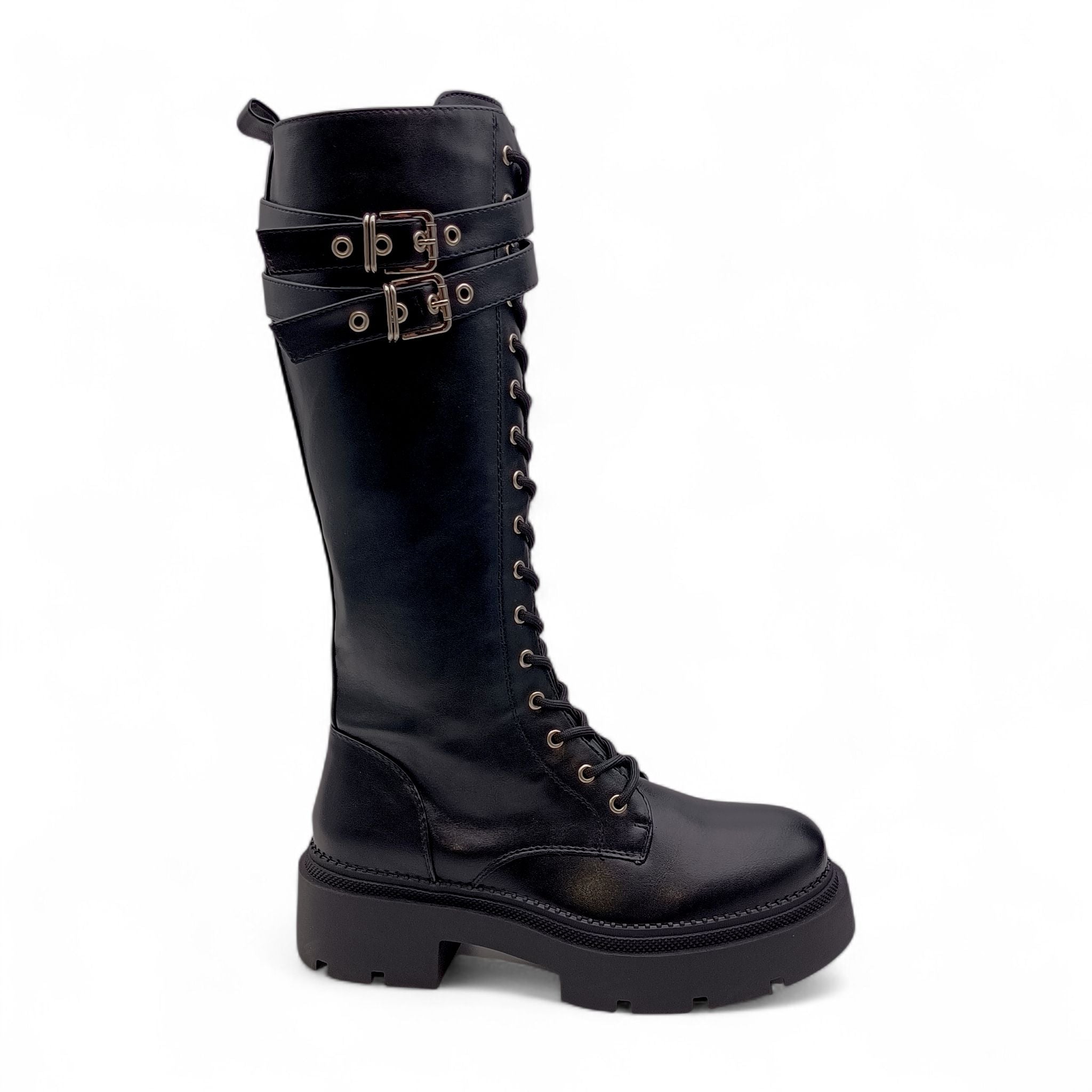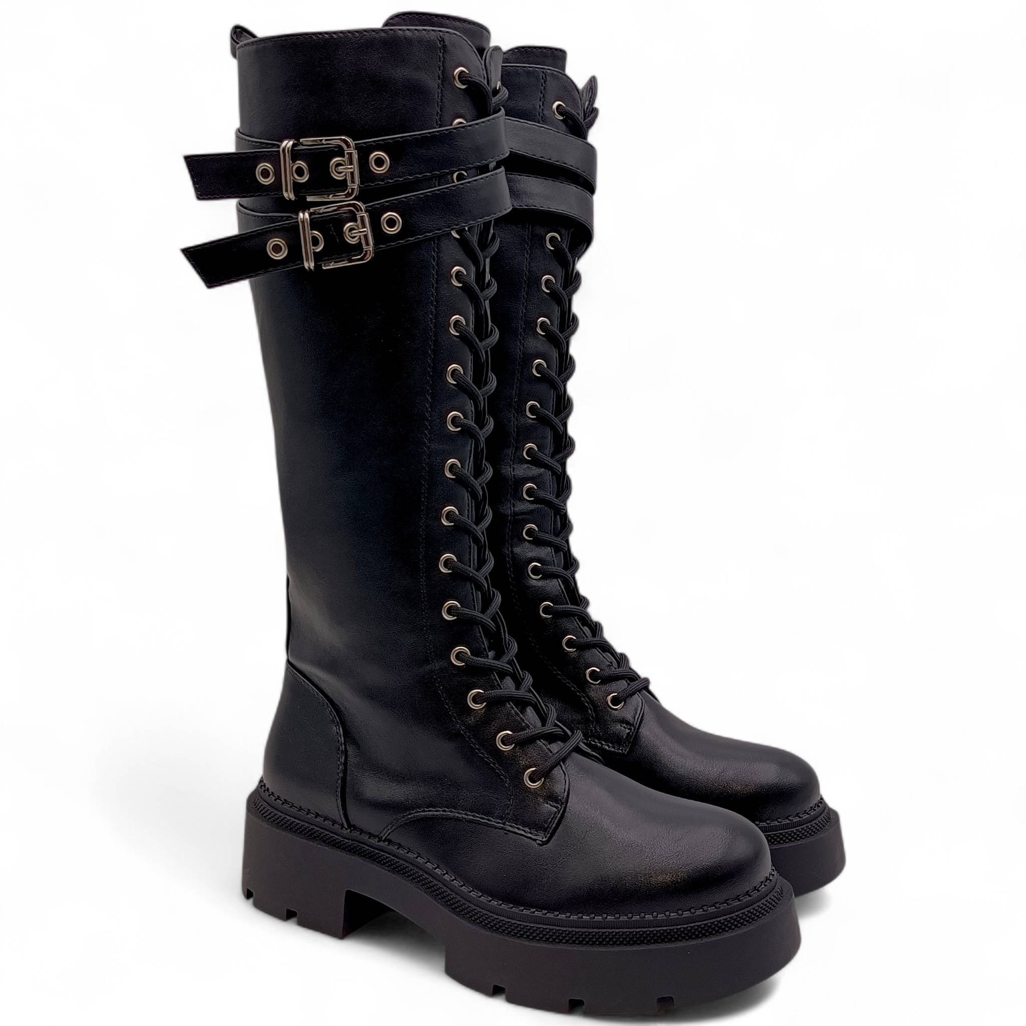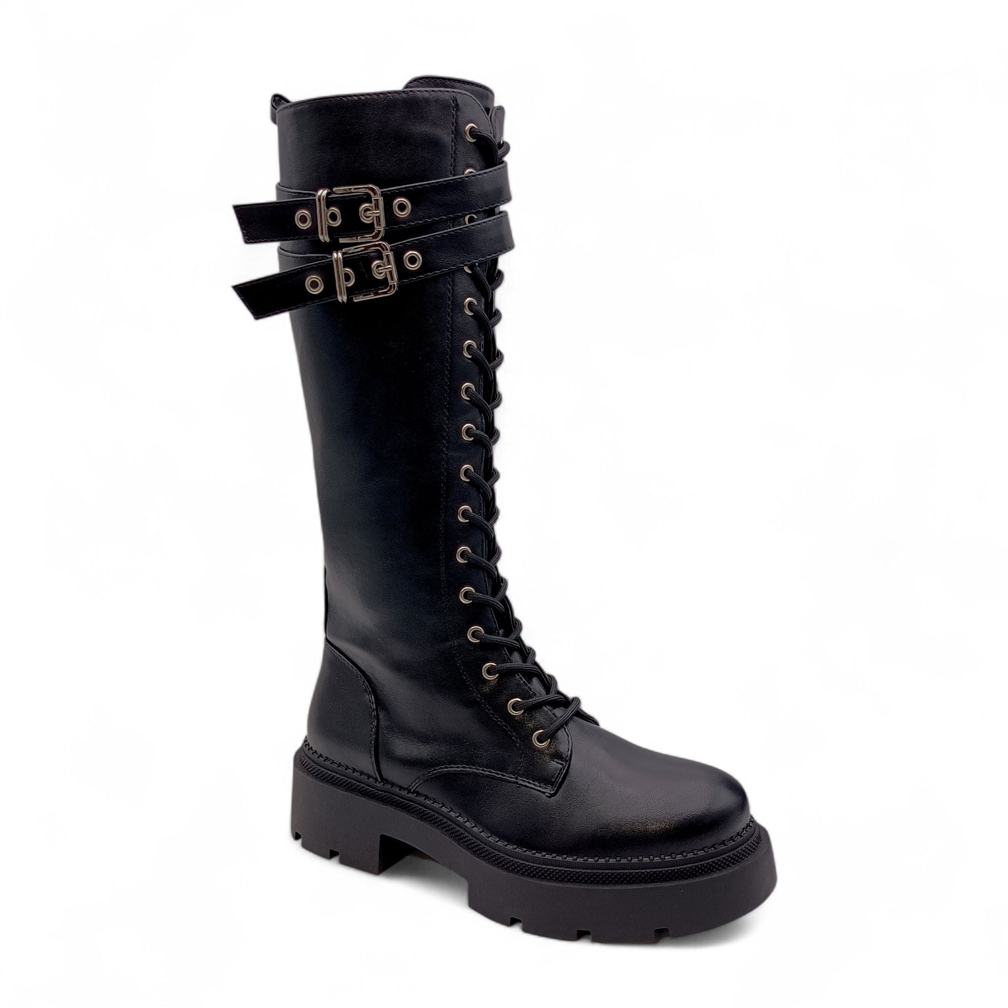 Anfibio allacciato alto donna ecopelle nera King Of Hearts MS1590