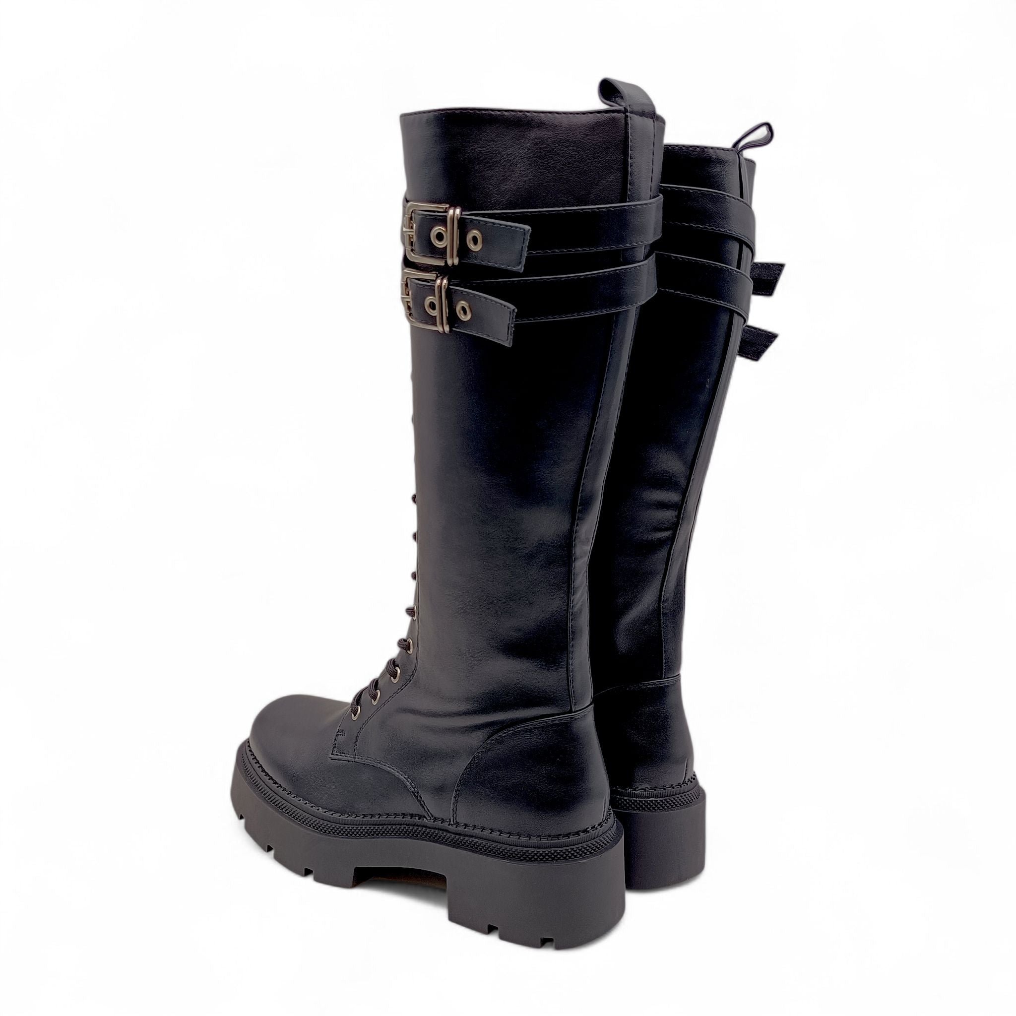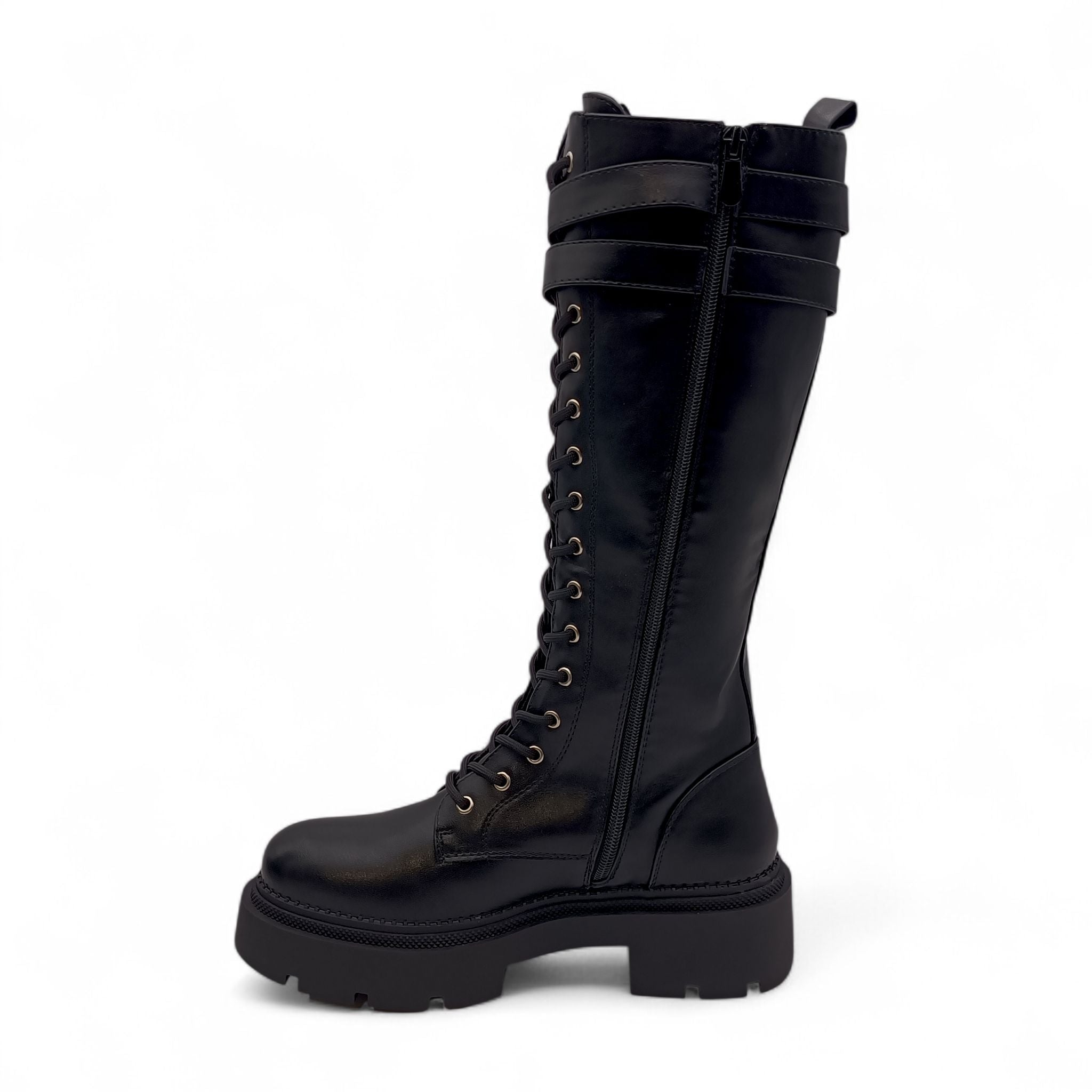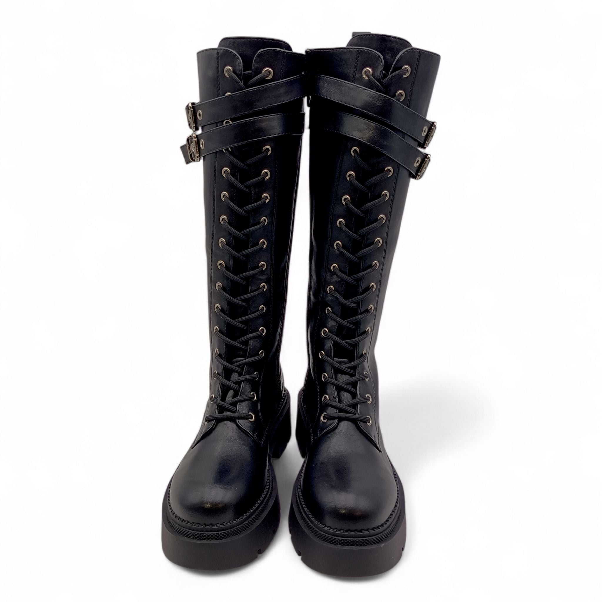 Anfibio allacciato alto donna ecopelle nera King Of Hearts MS1590