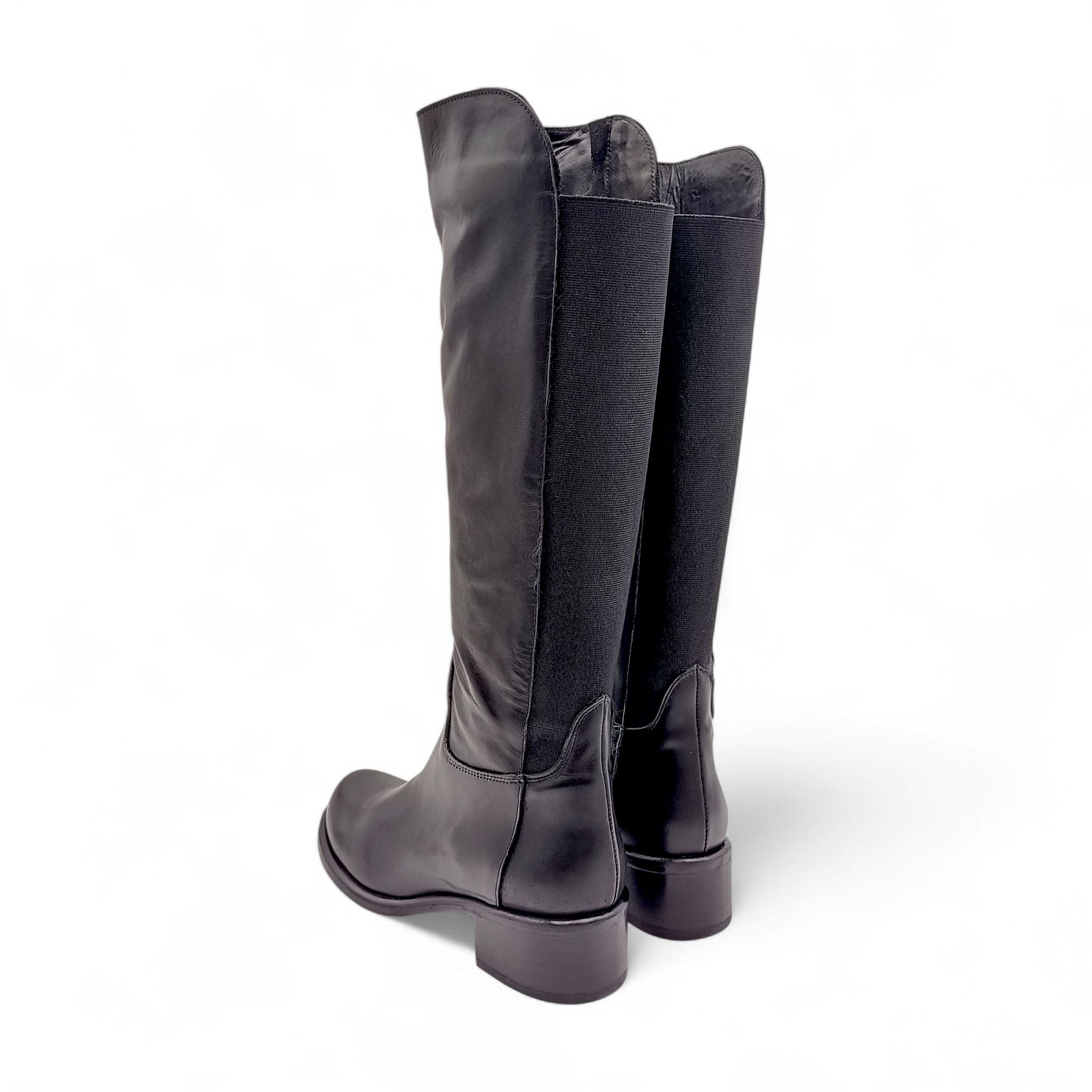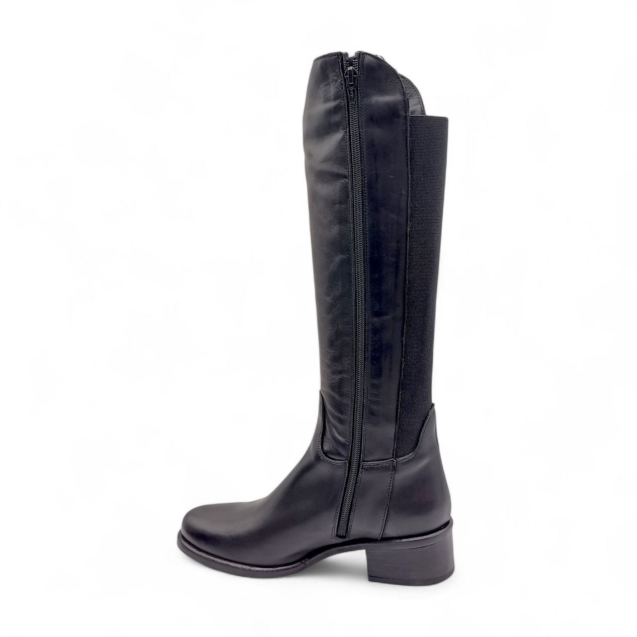 Stivale donna in pelle nera con elastico e cerniera laterale Esther Collezioni 3035