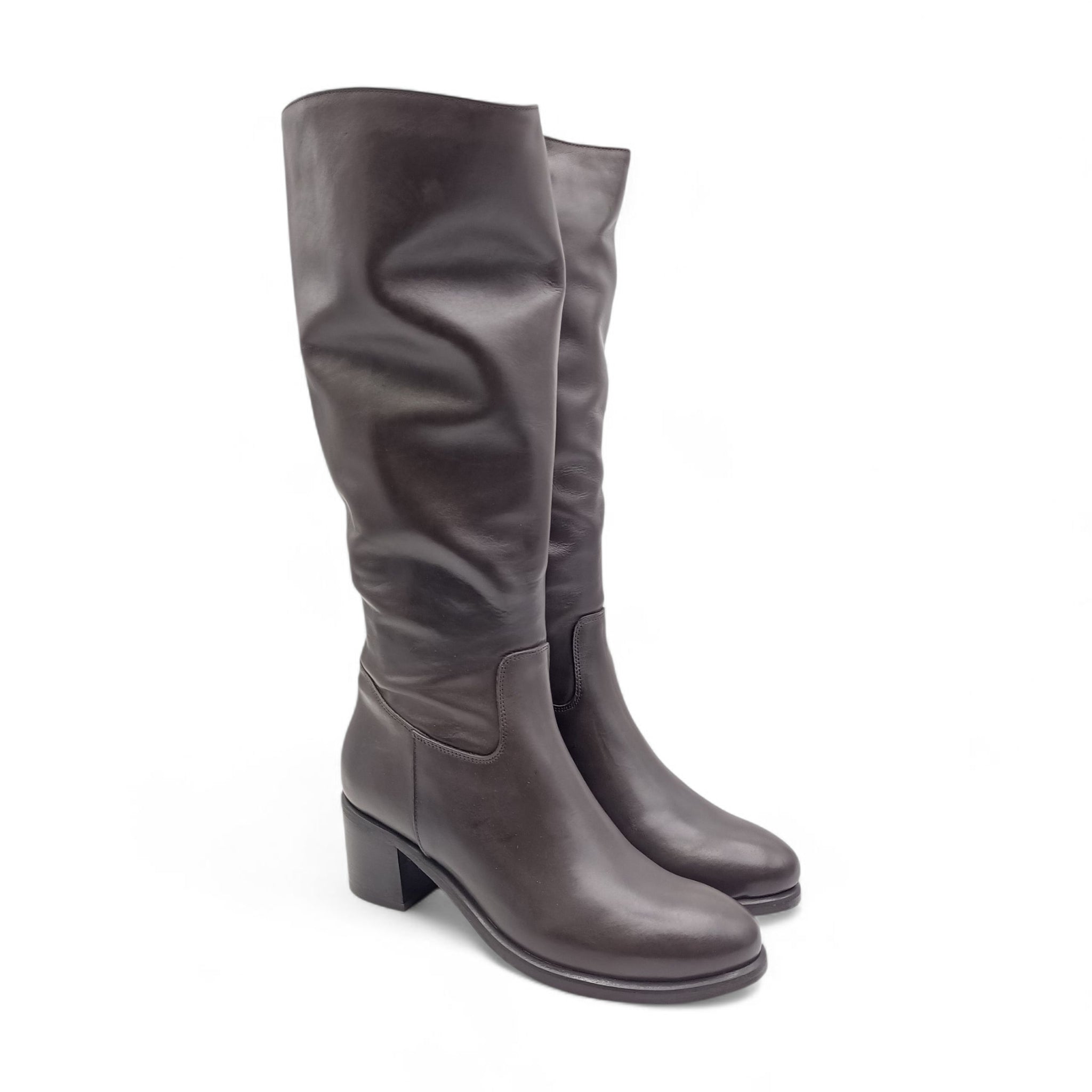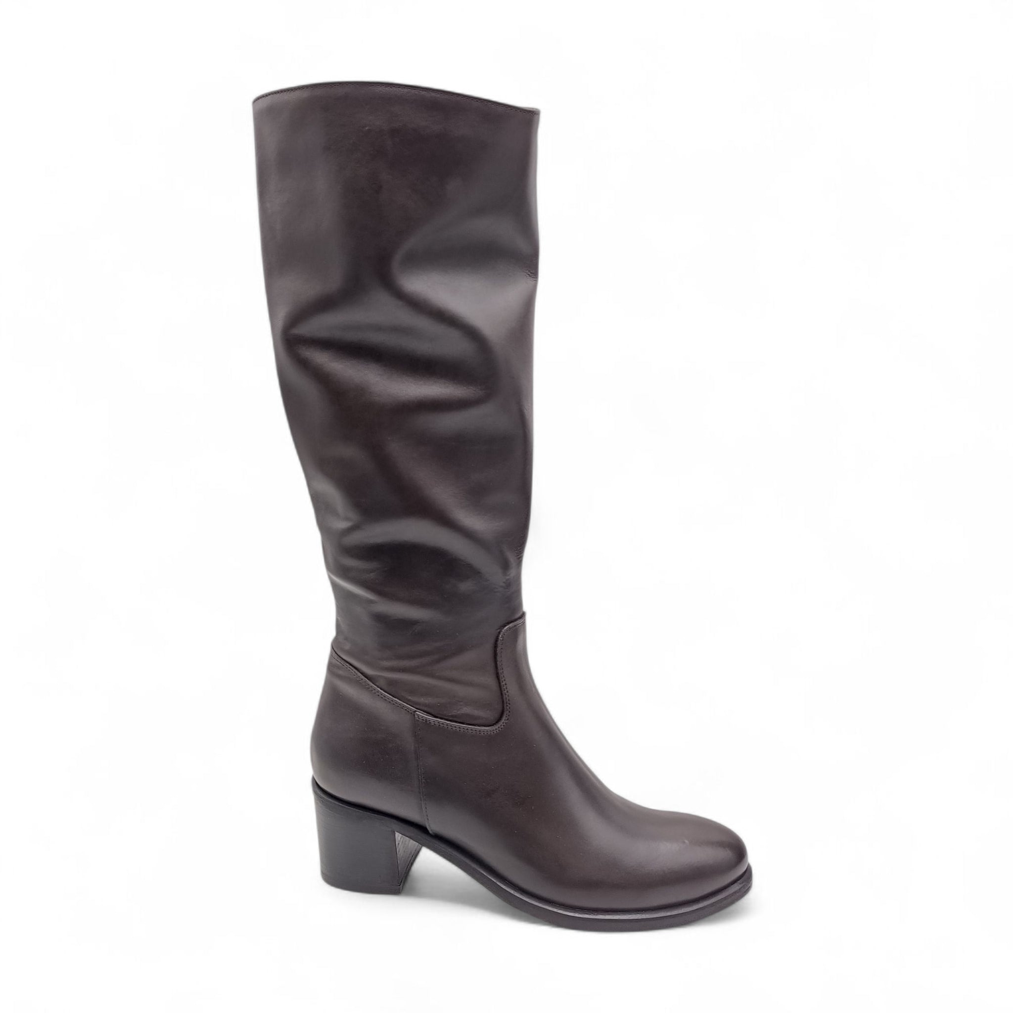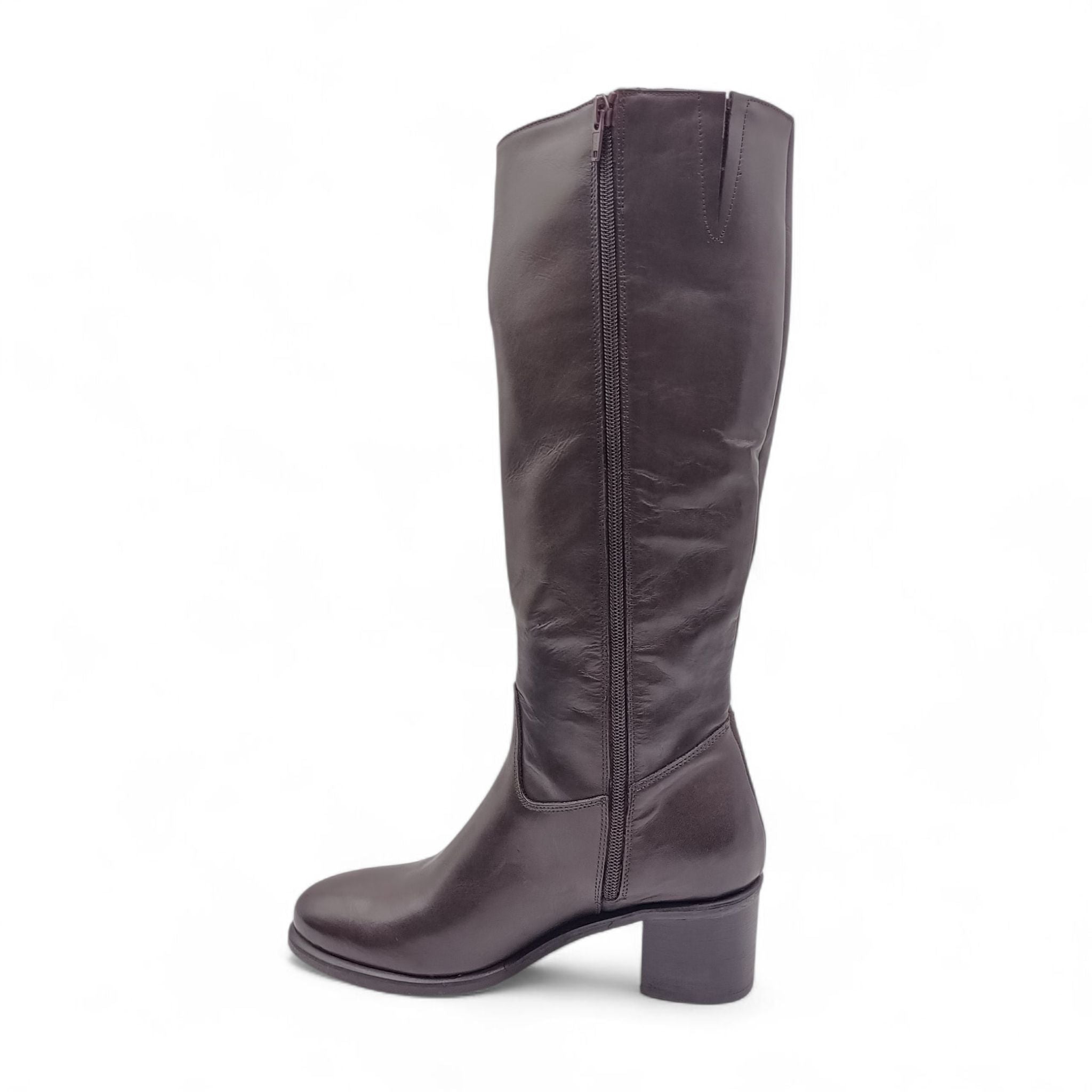 Stivale donna in pelle t.moro con tacco quadrato e cerniera laterale Esther Collezioni 5051